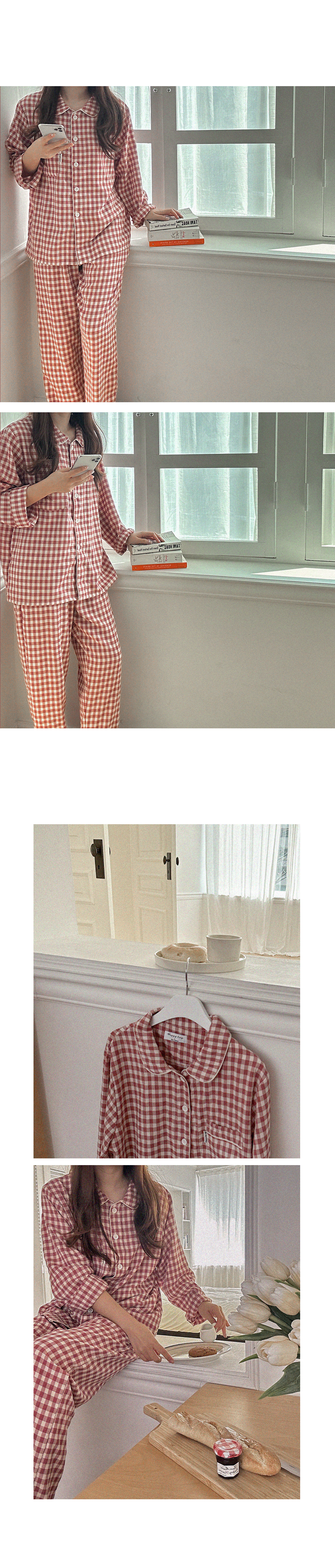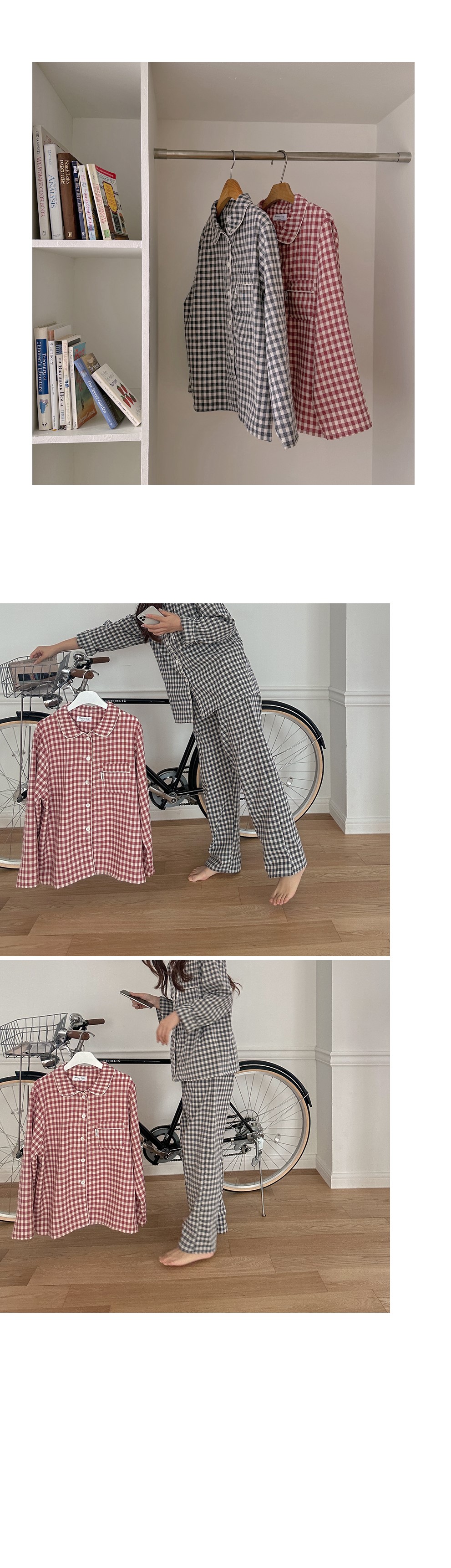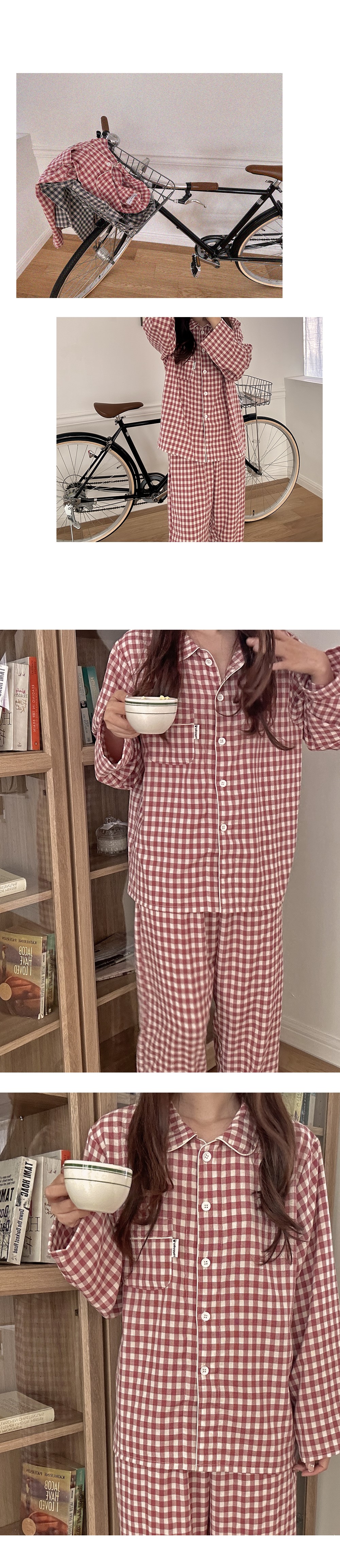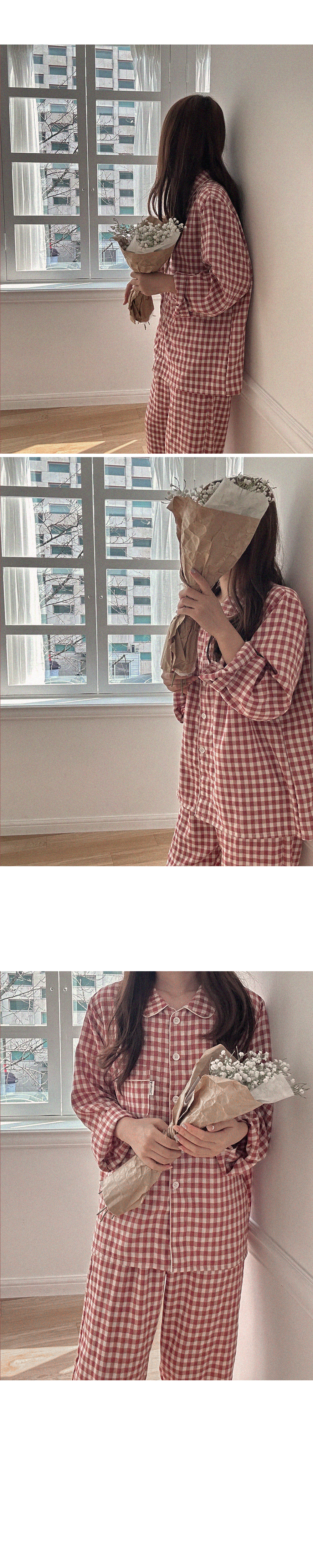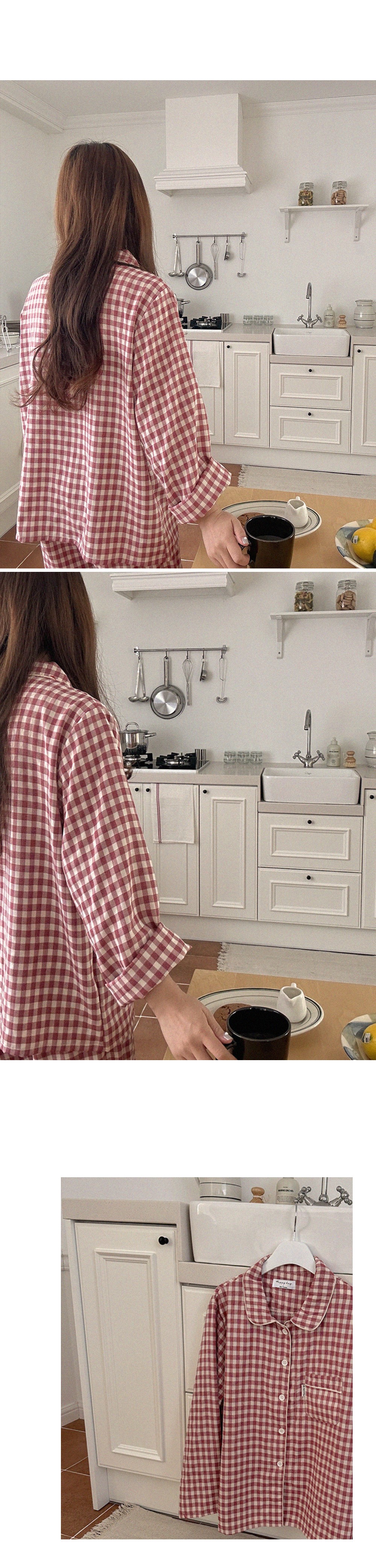 [2color]チェック長袖パジャマセット