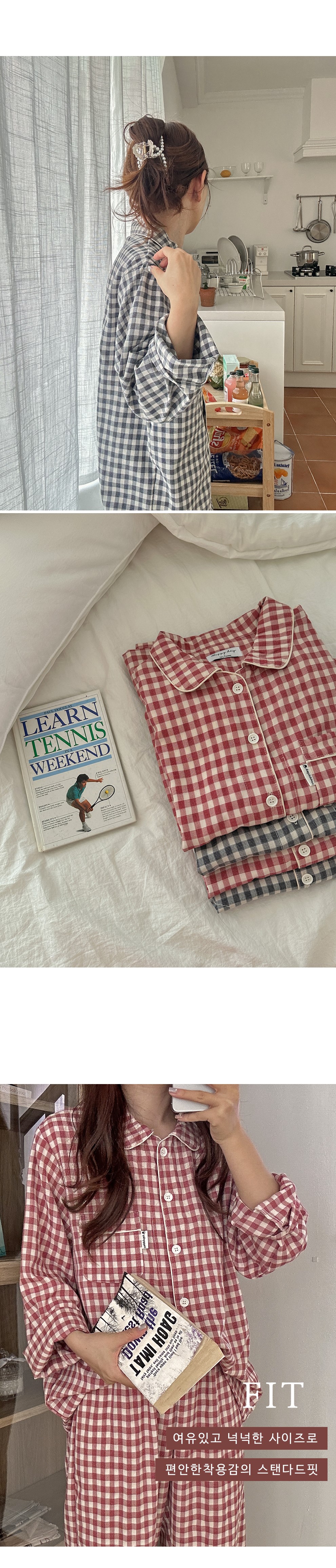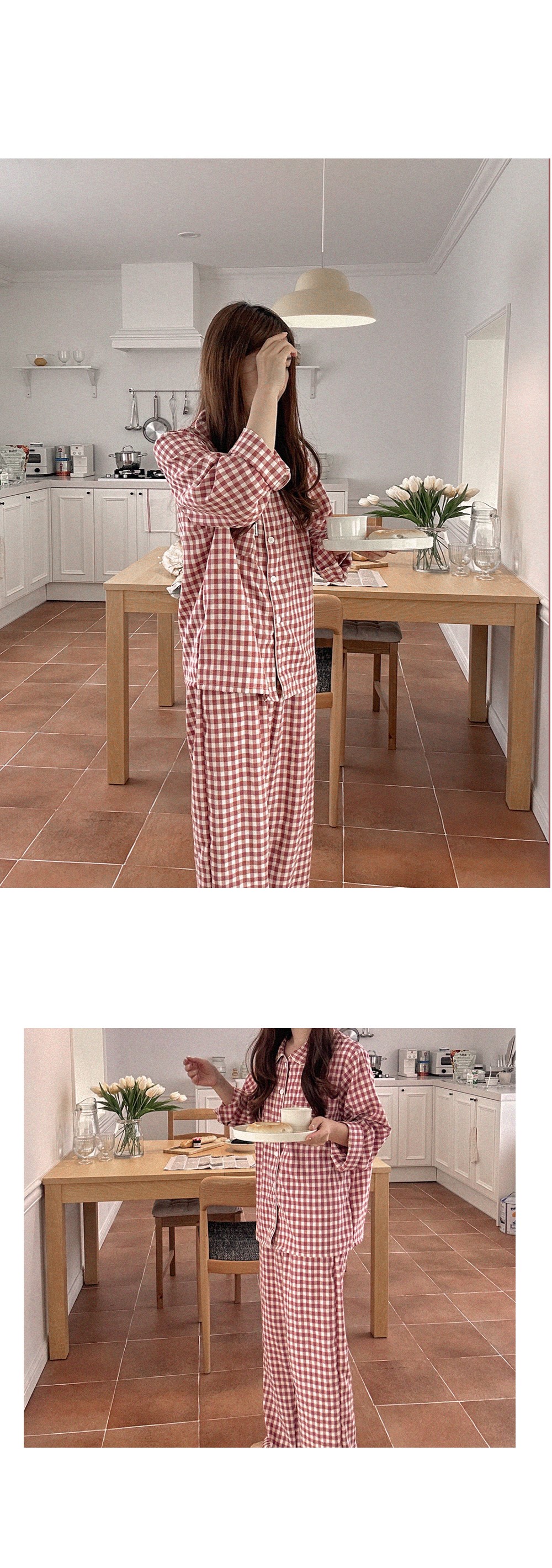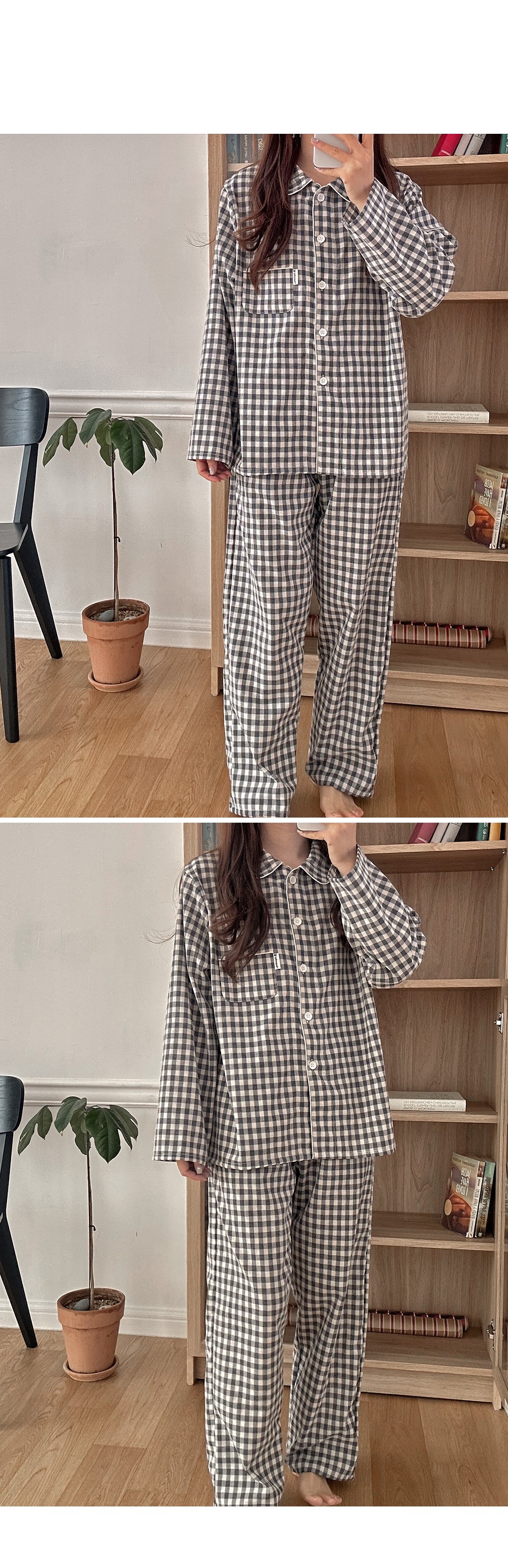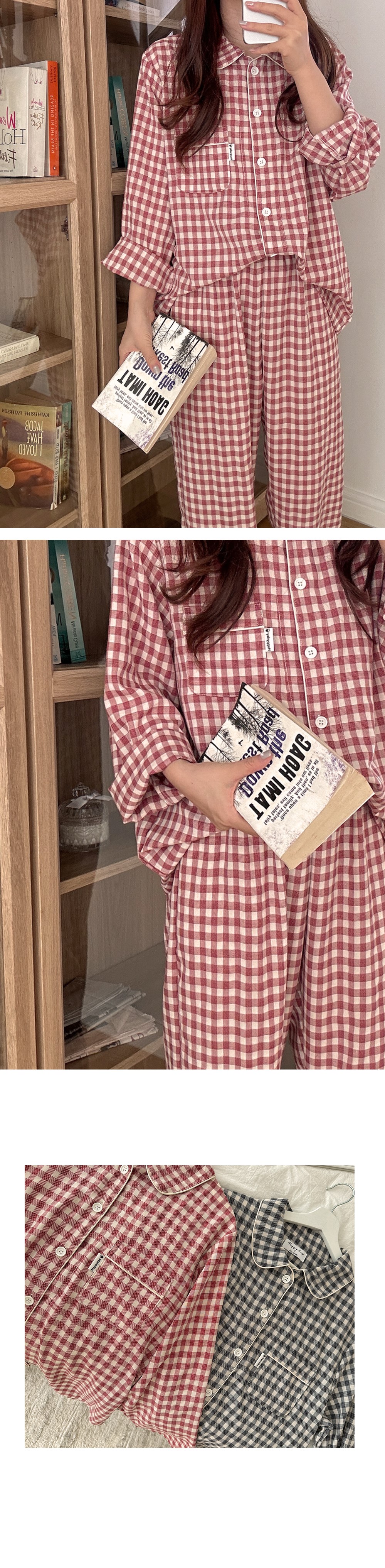 [2color]チェック長袖パジャマセット