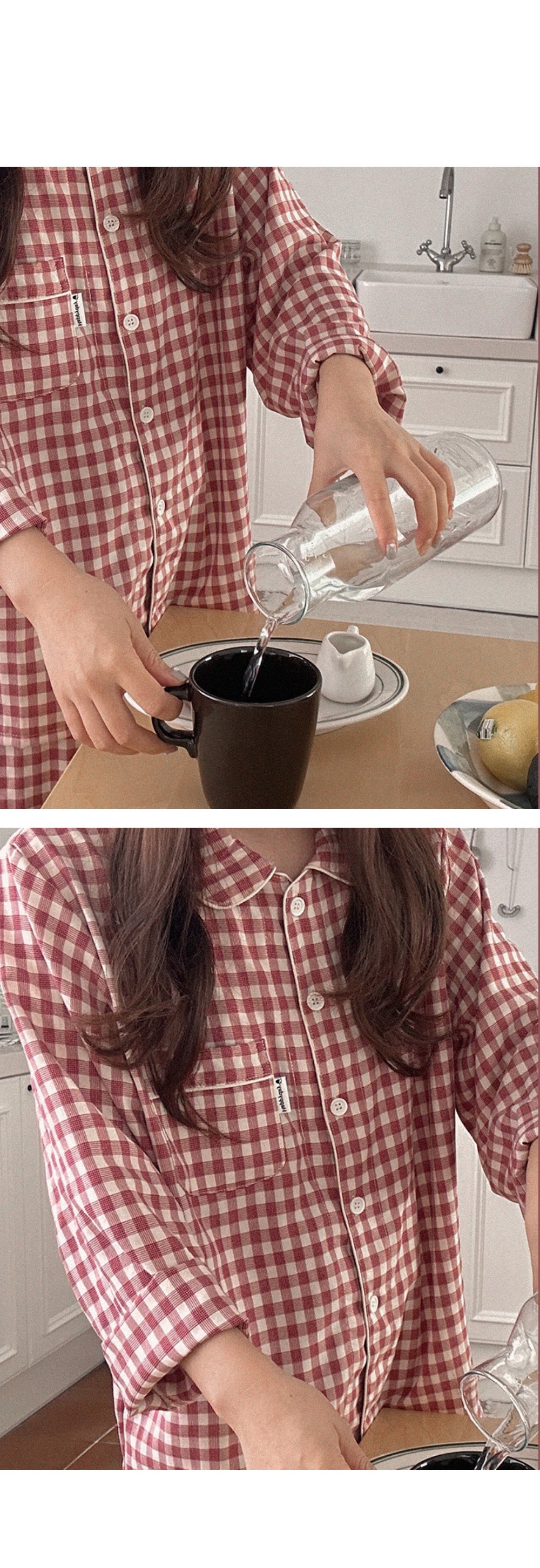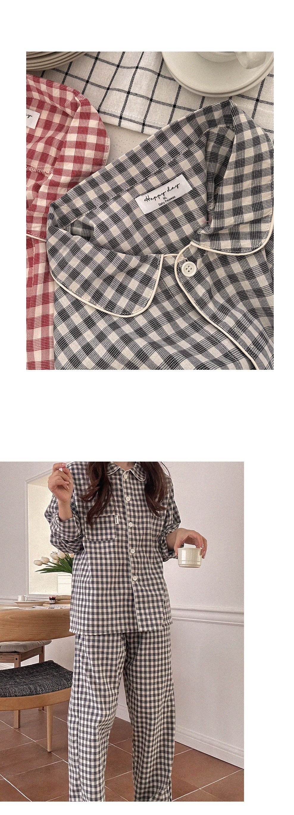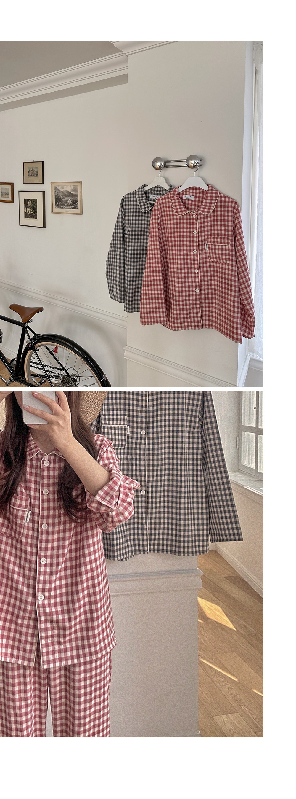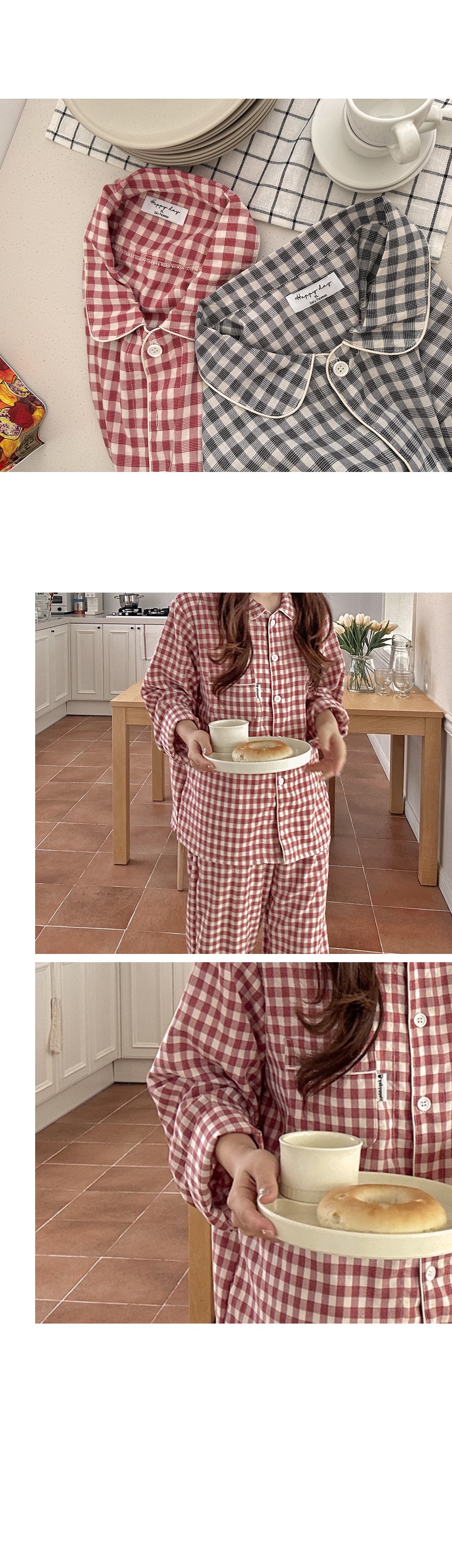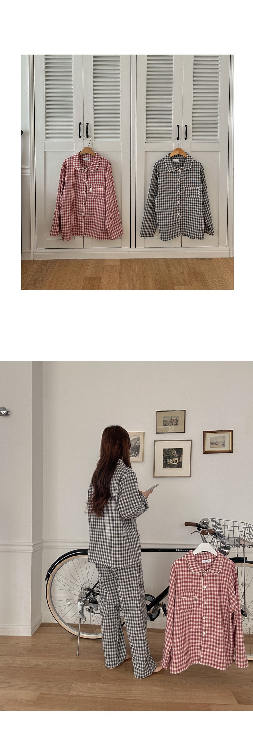 [2color]チェック長袖パジャマセット