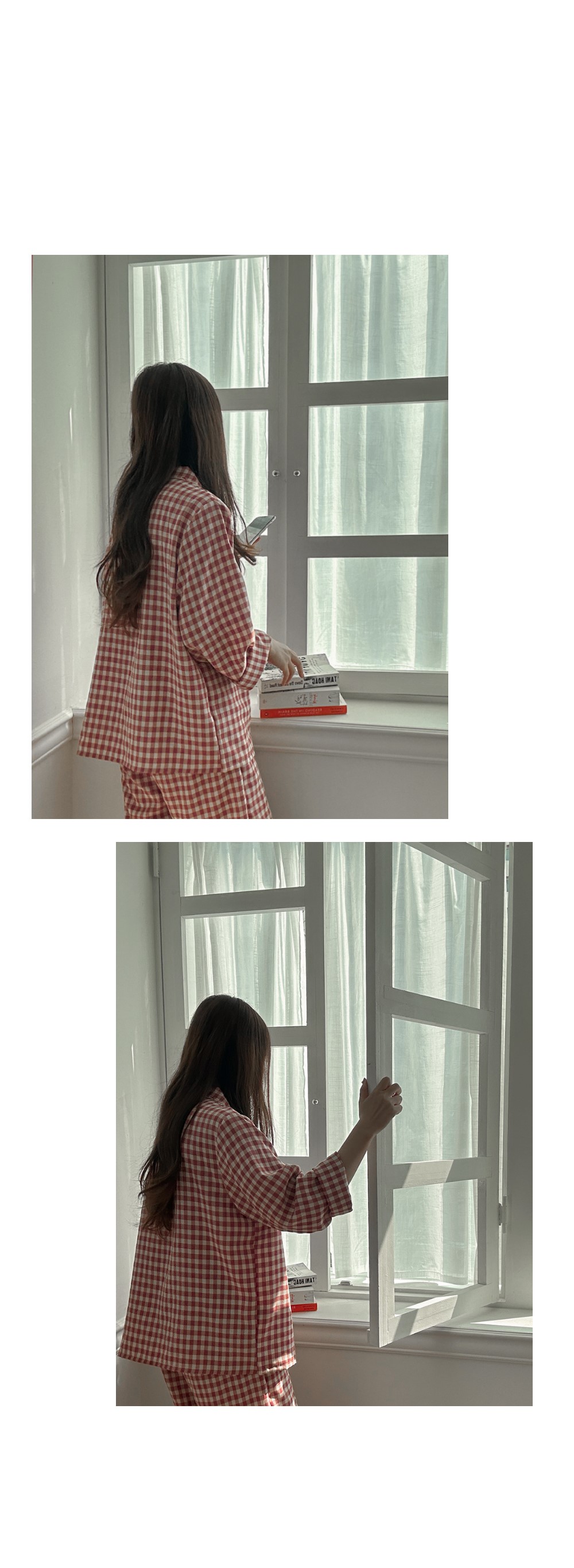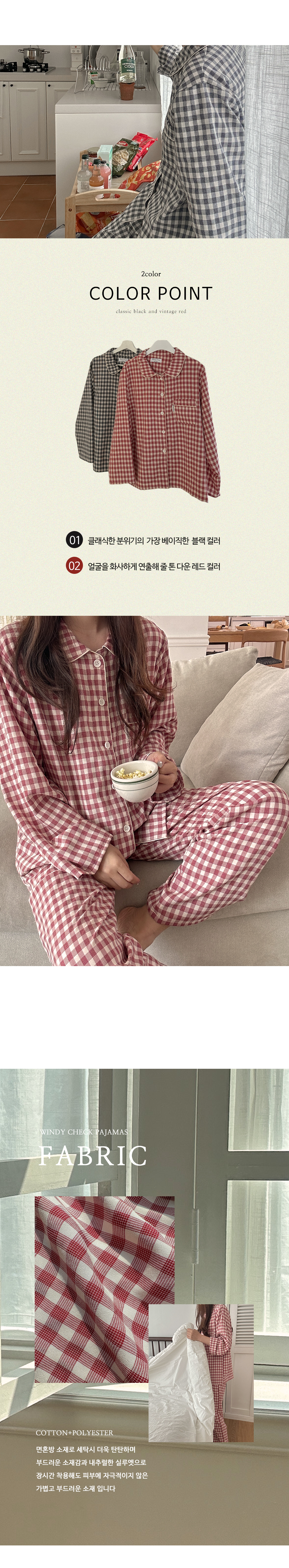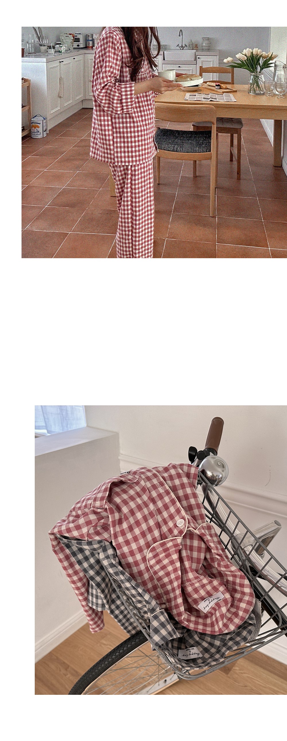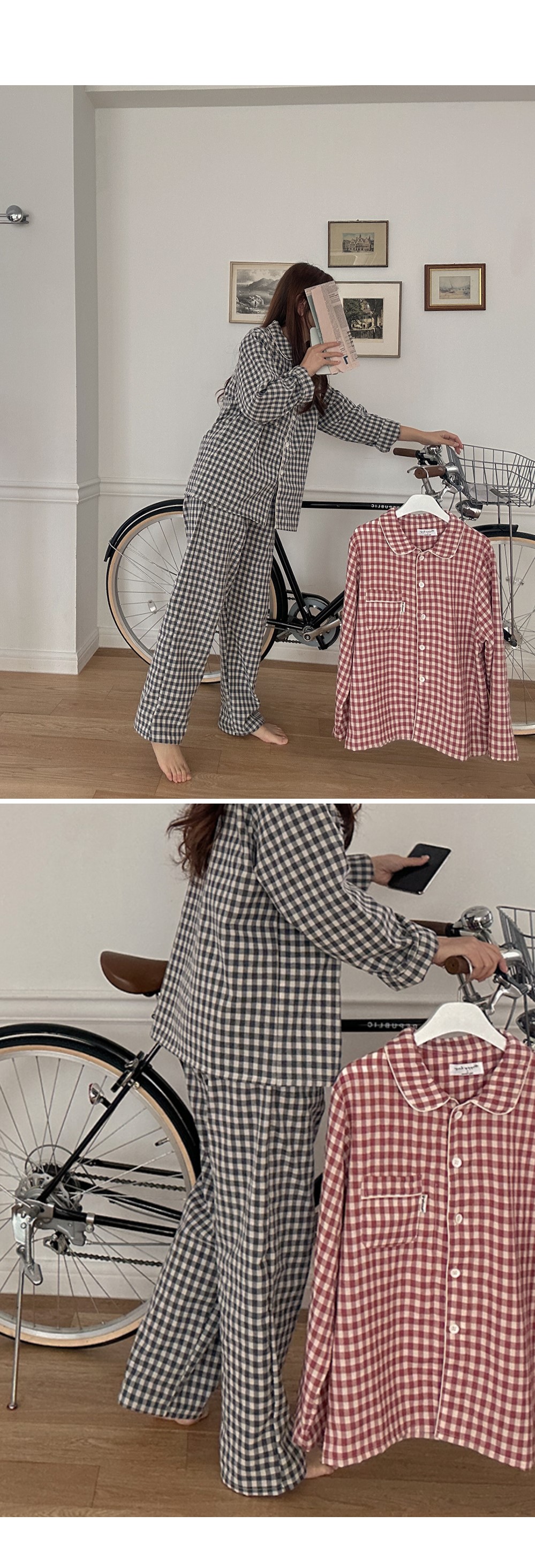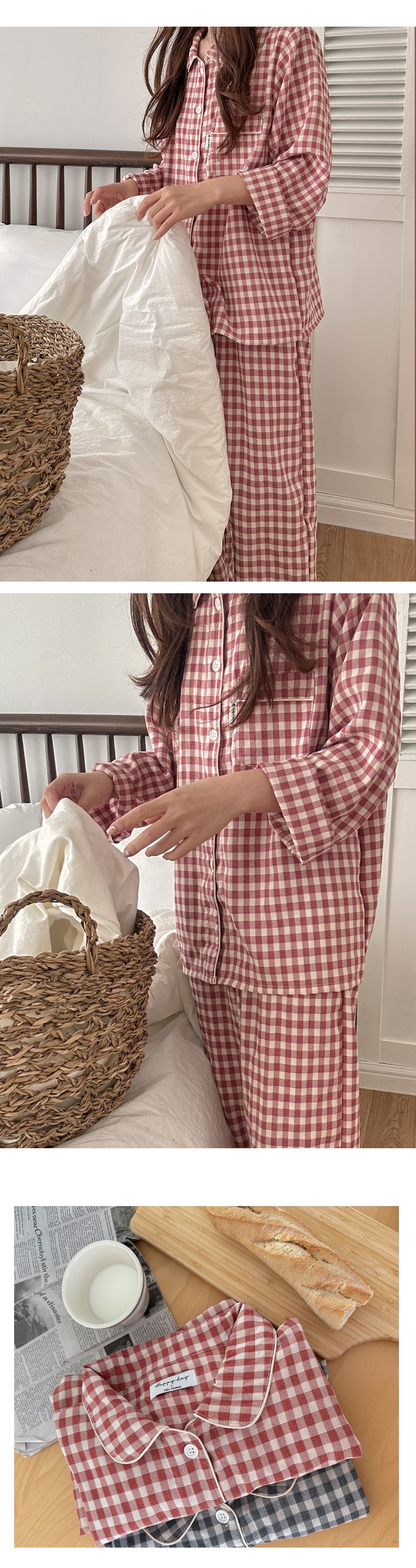 [2color]チェック長袖パジャマセット