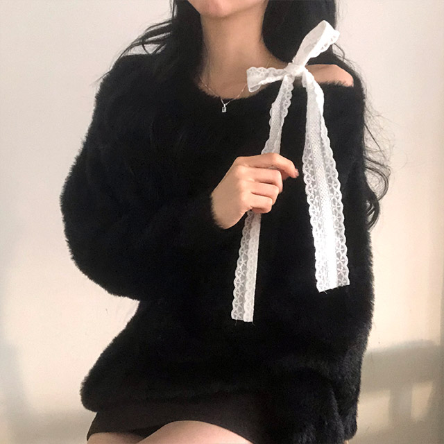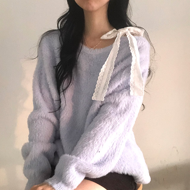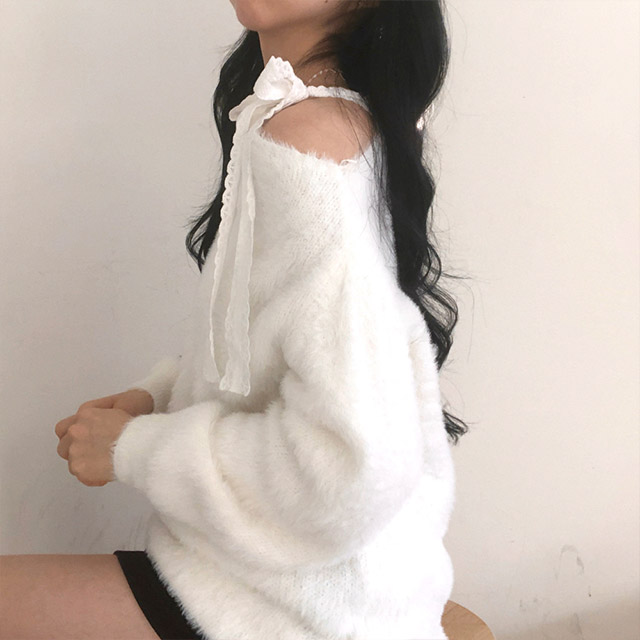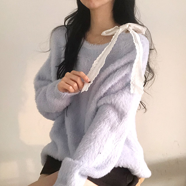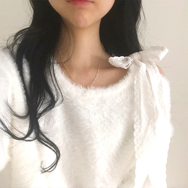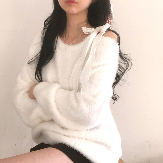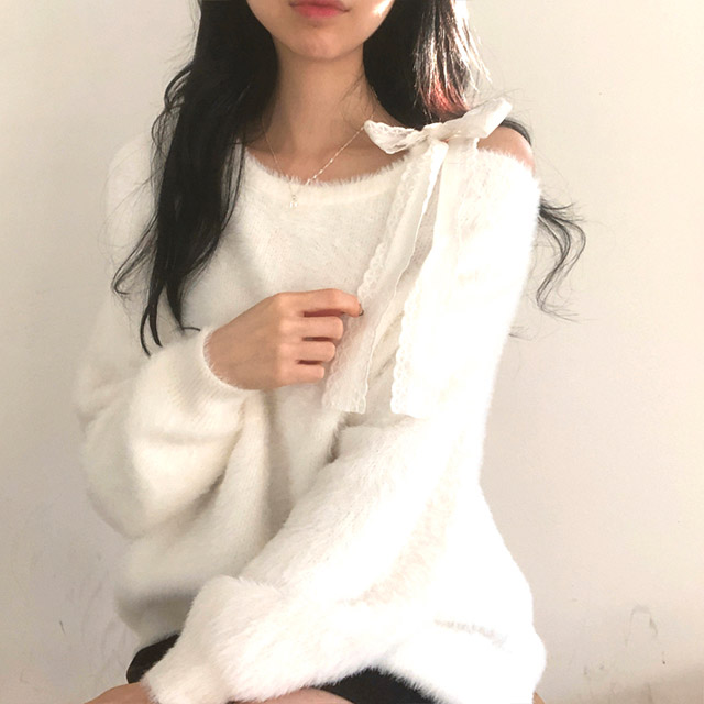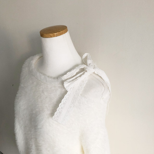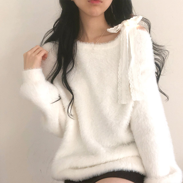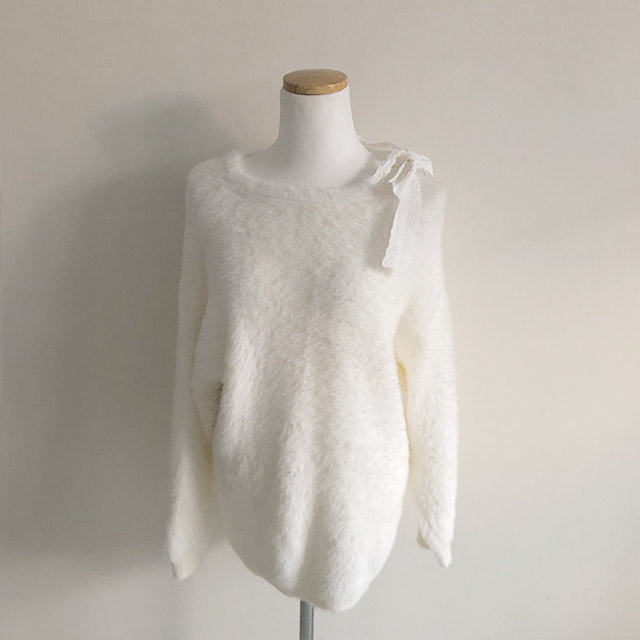 ソフトレースリボンアンゴラワンショルダーニット
