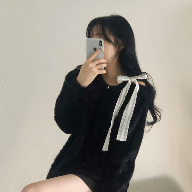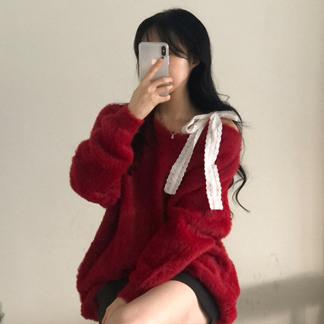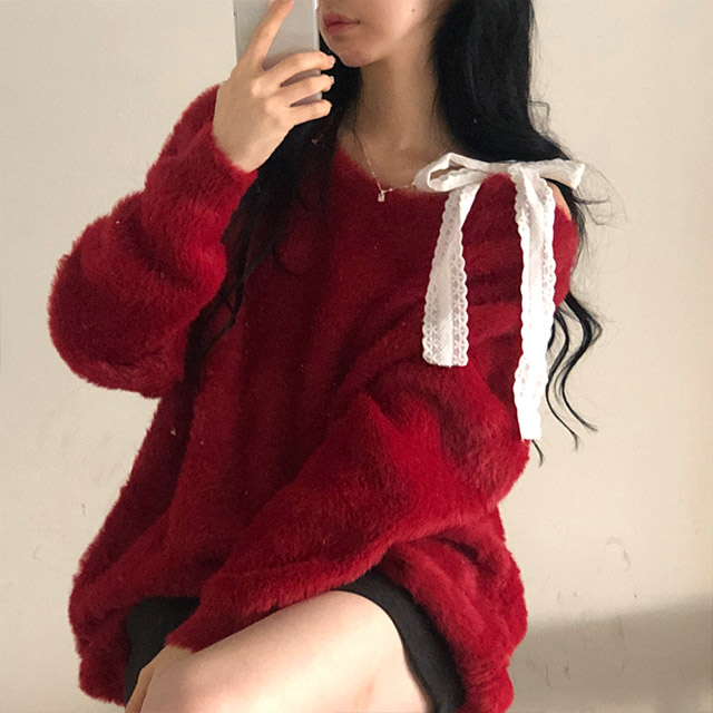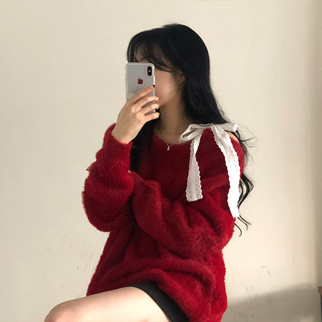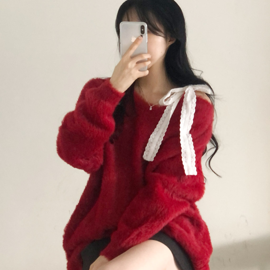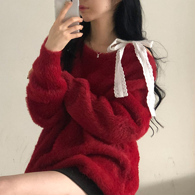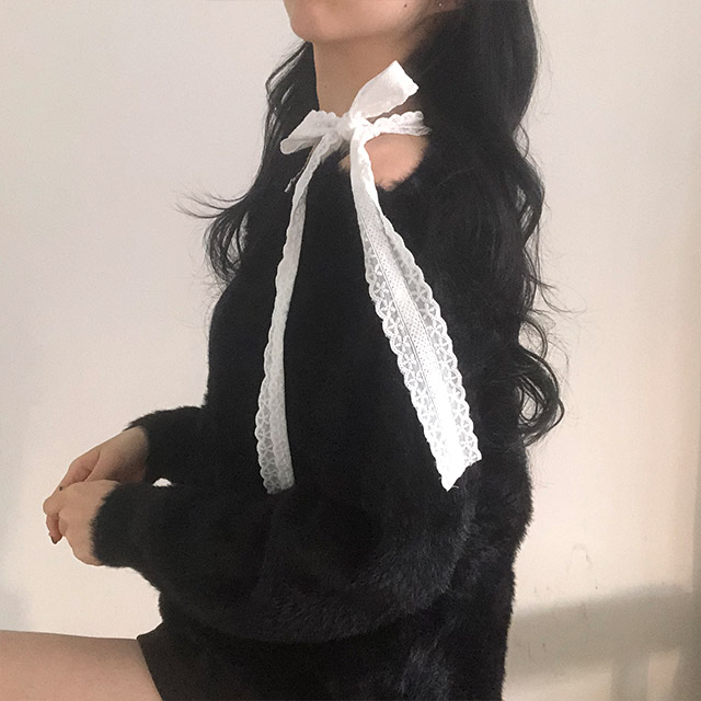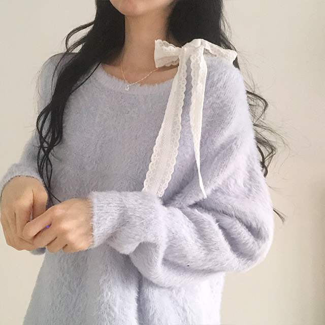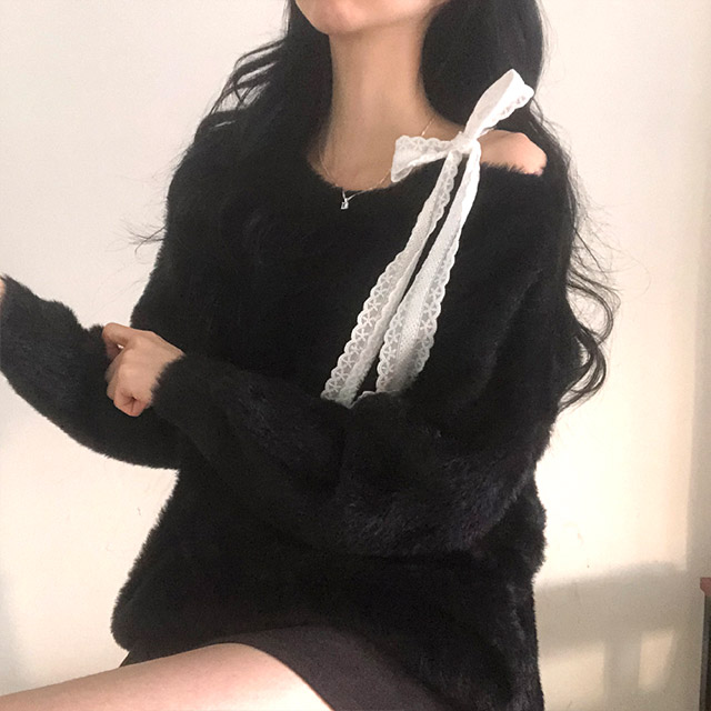 ソフトレースリボンアンゴラワンショルダーニット