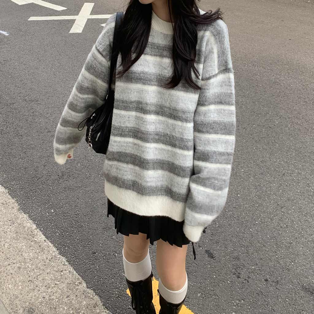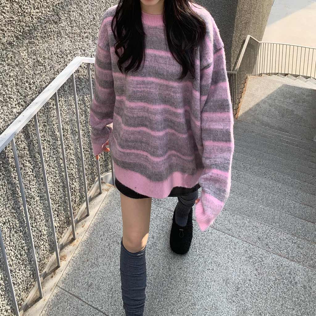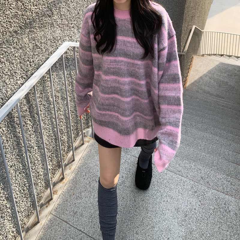 アルパカパステルグラデーションボーダーニット