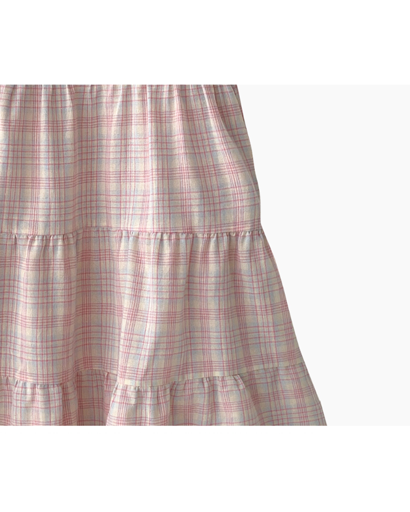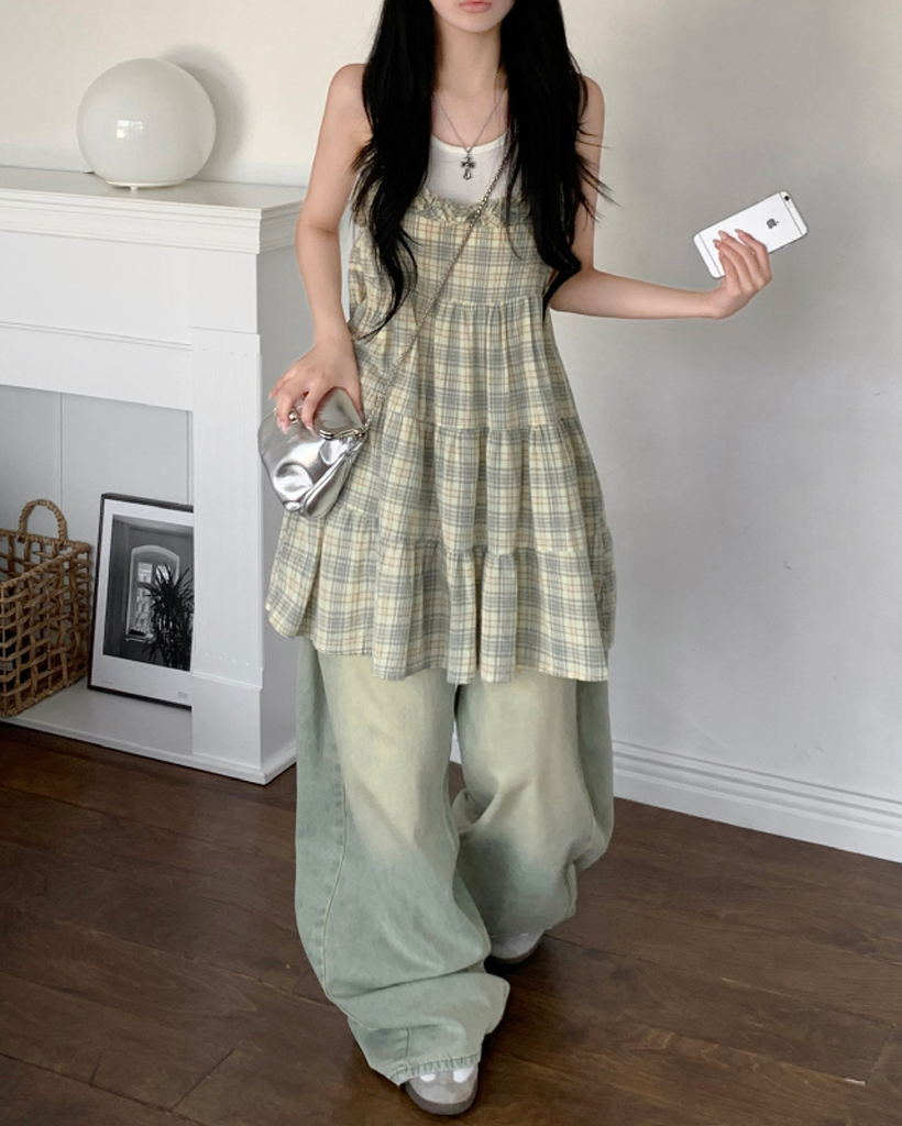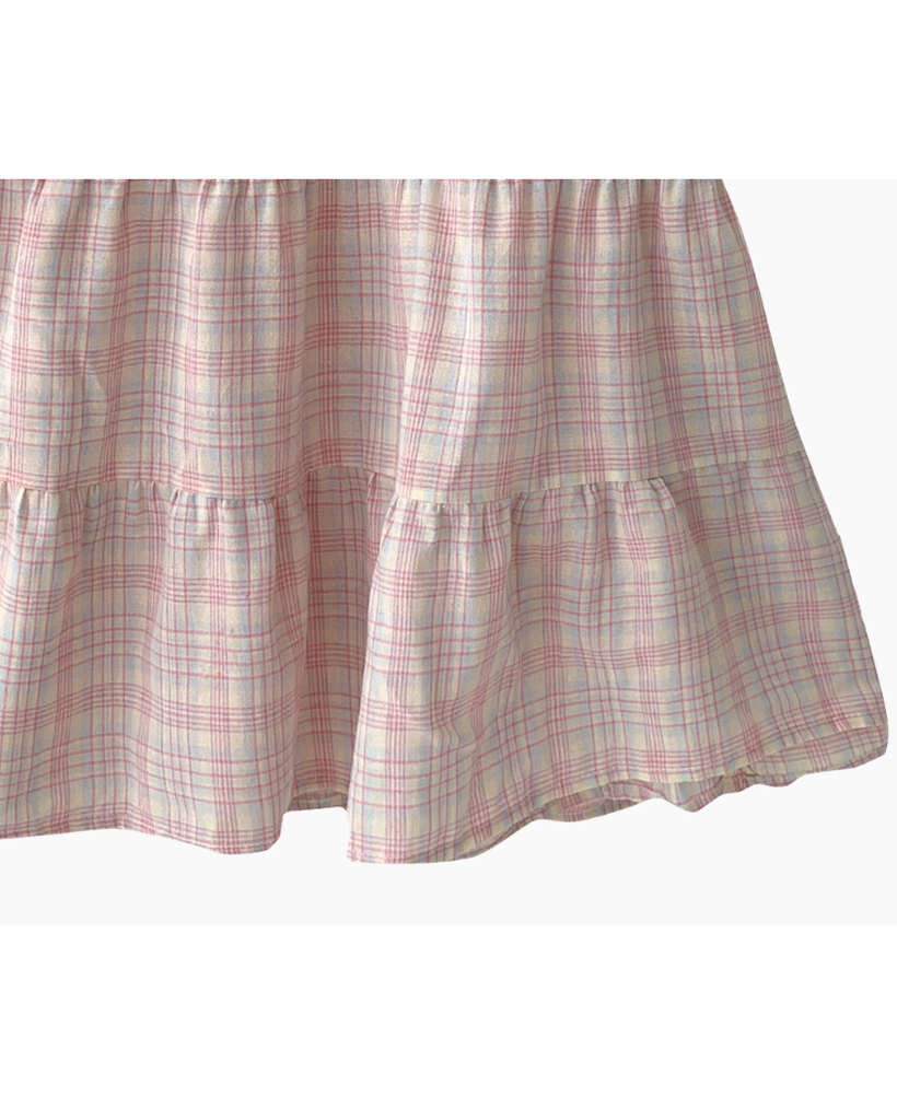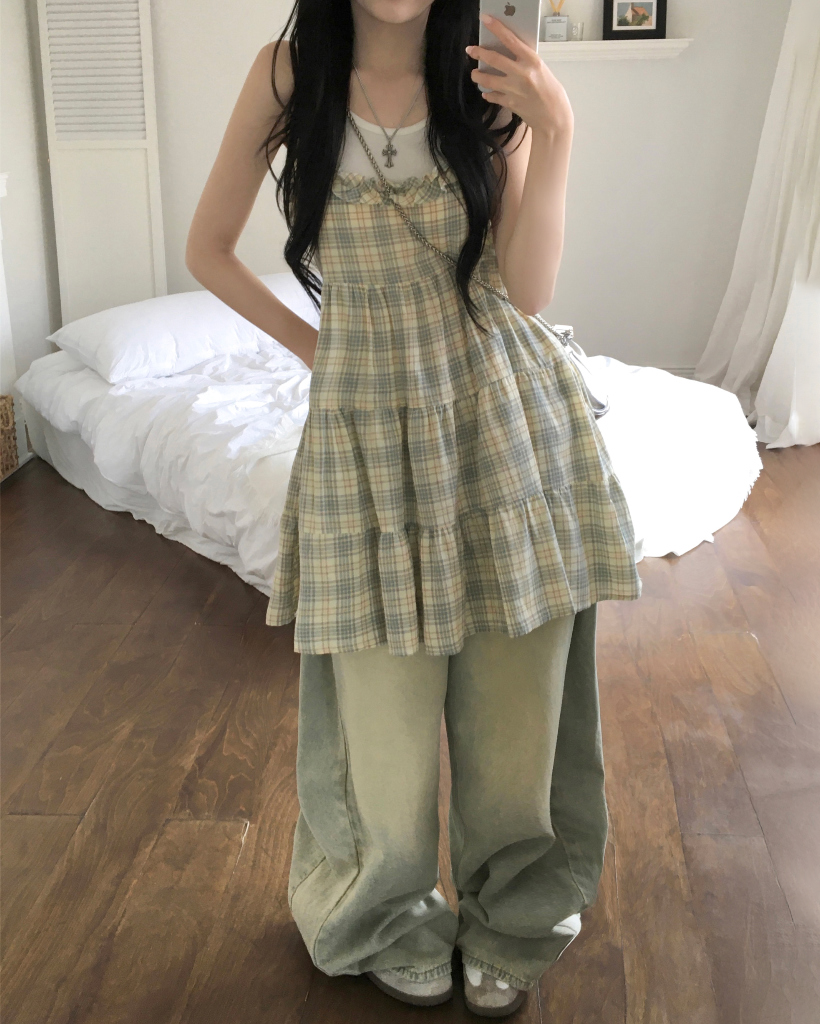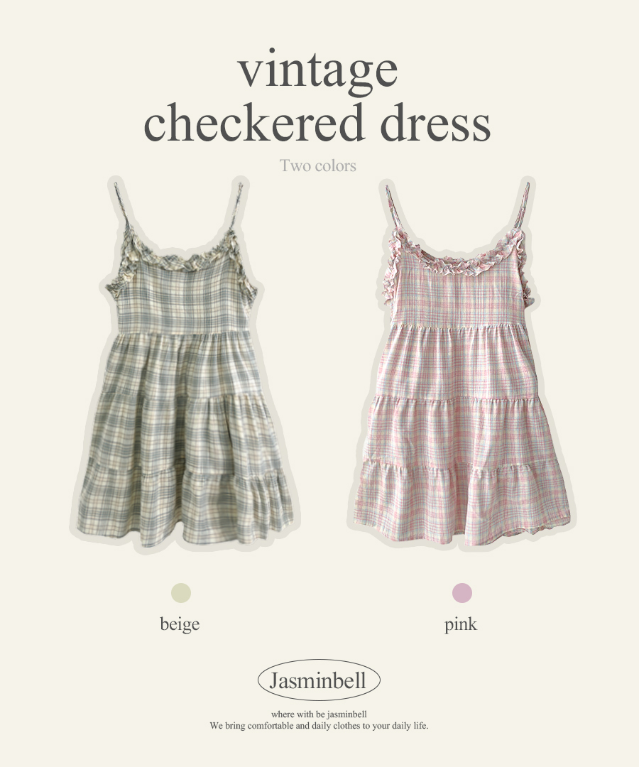 ヴィンテージ チェック フリル ティアード ミニ キャミワンピース