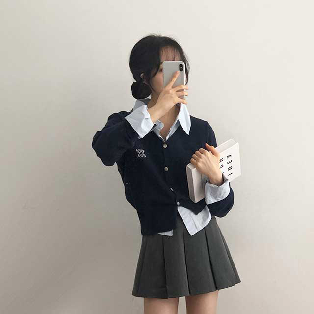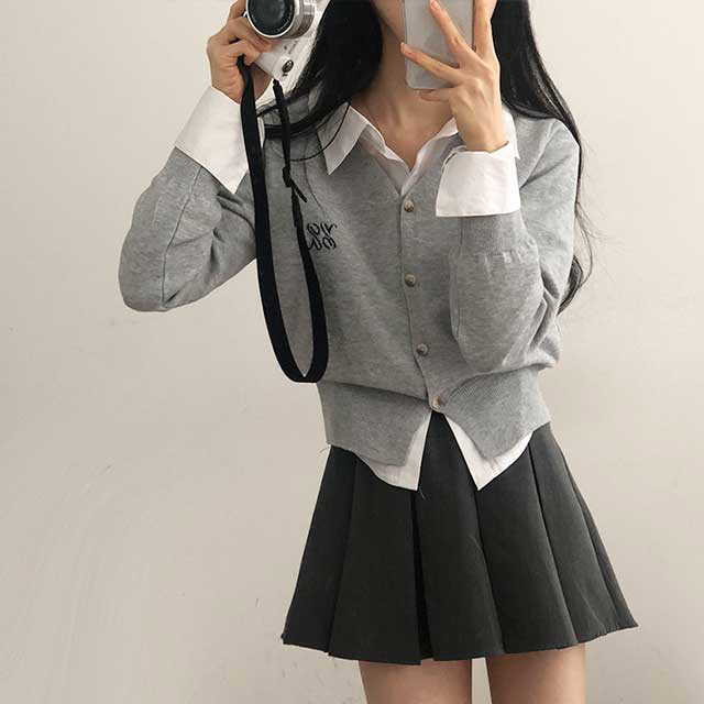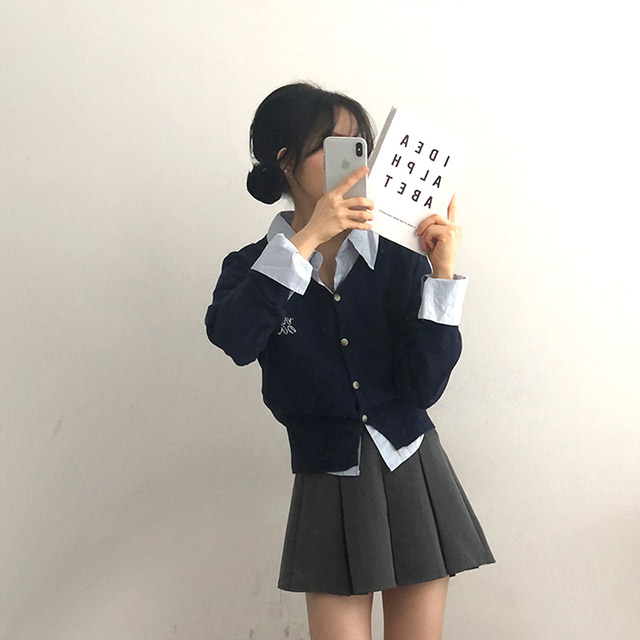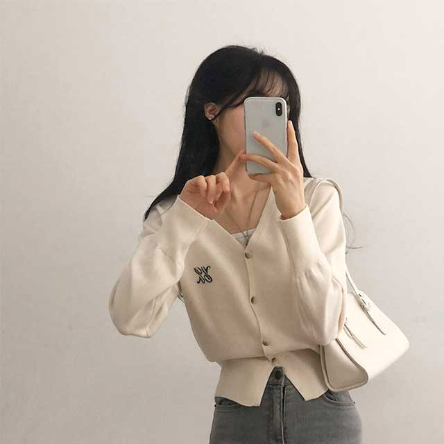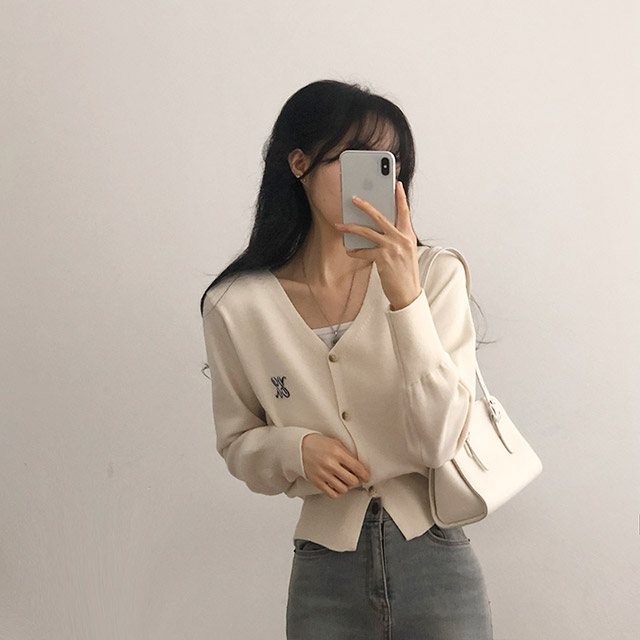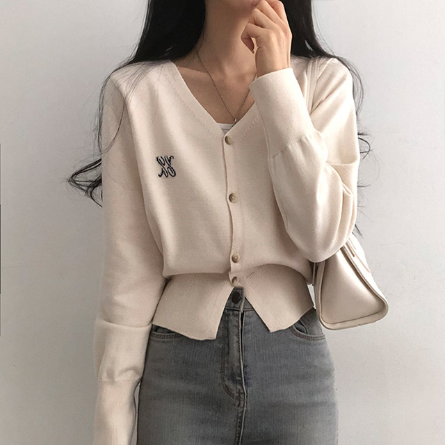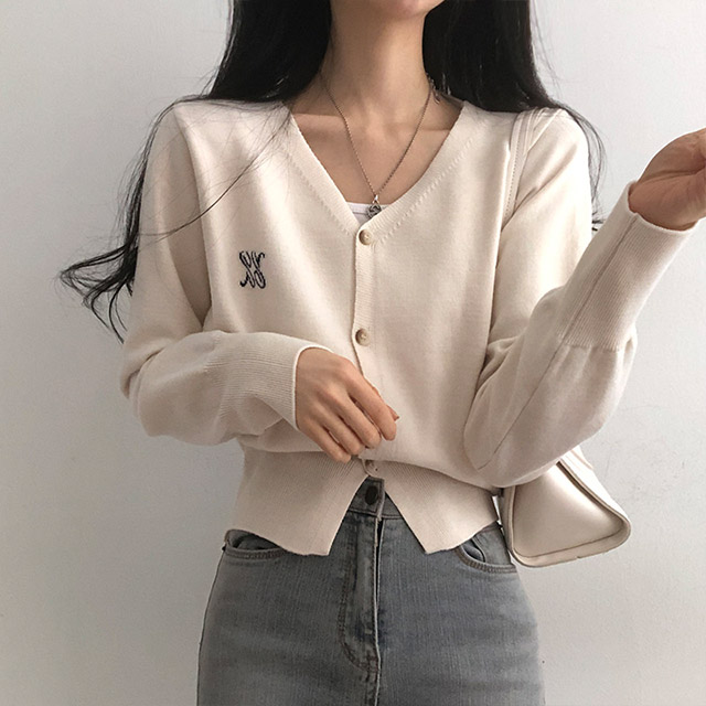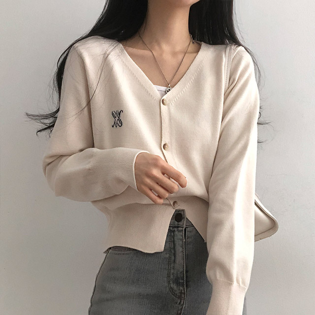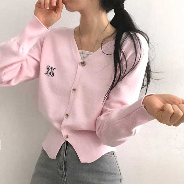 [6color]ステッチVネックカーディガン