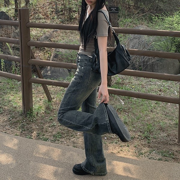 [original] ディープブルーウォッシングブーツカットデニムパンツ