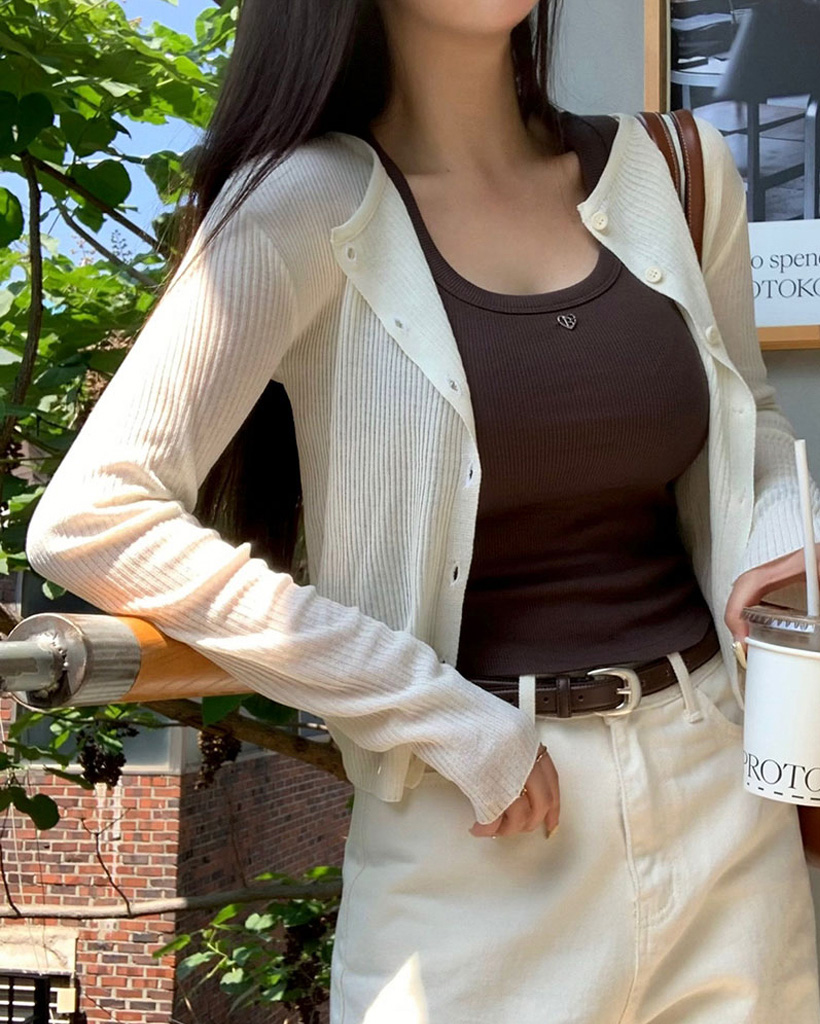 単独でも、キャミソールとレイヤードして着用しても軽くてとても可愛いカーディガンです ><