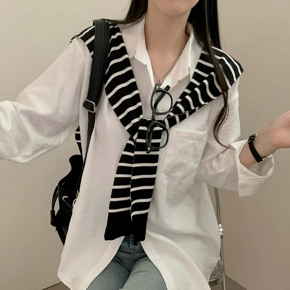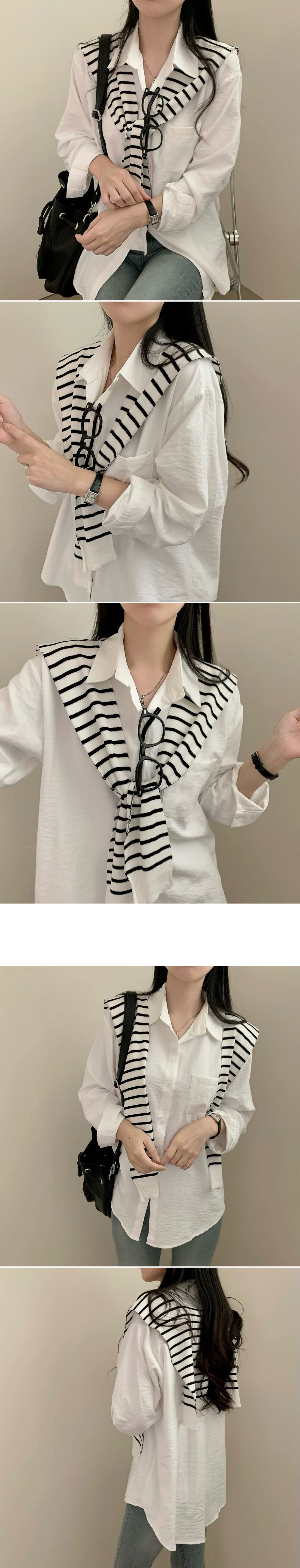 ボーダーストライプレイヤードニットショール