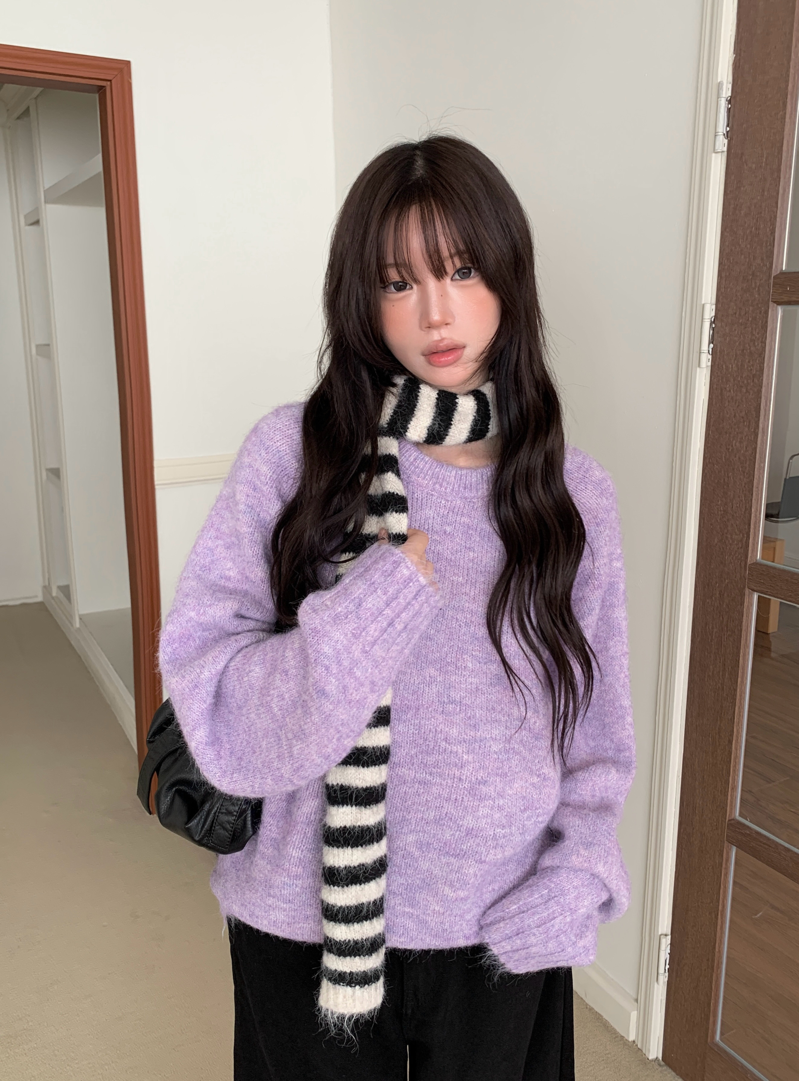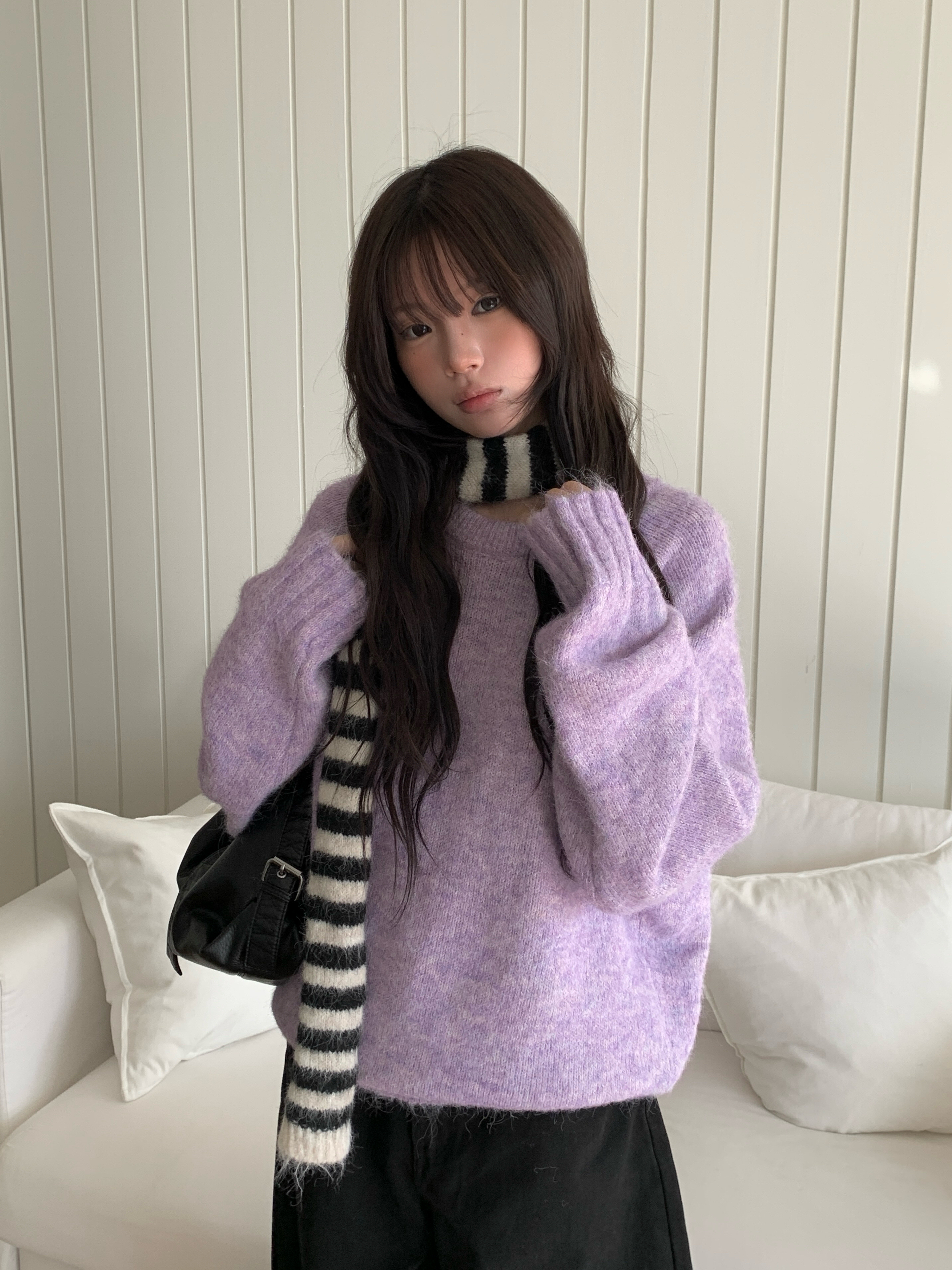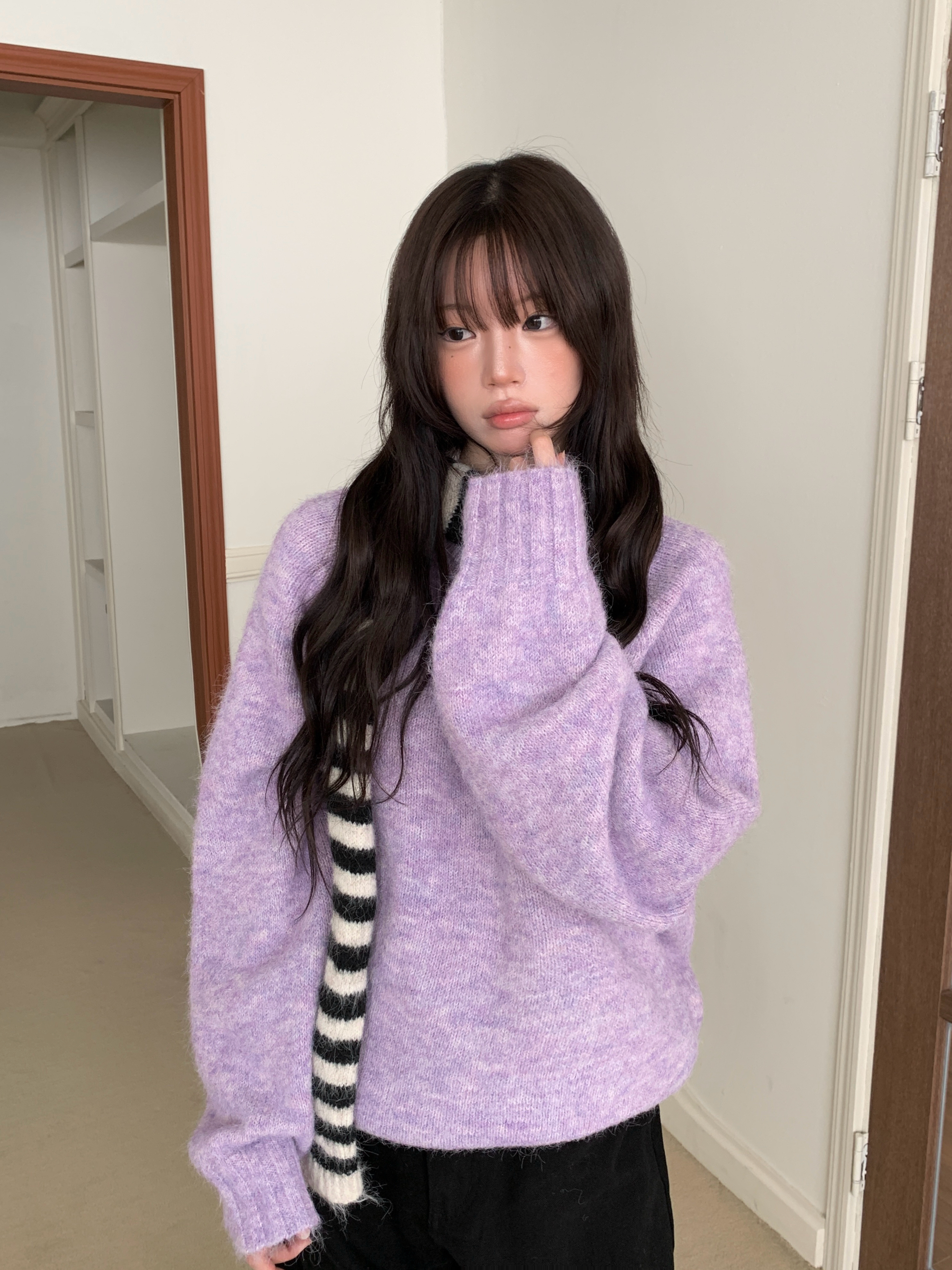 ミックス調ぼかしパステルルーズラウンドネックニット