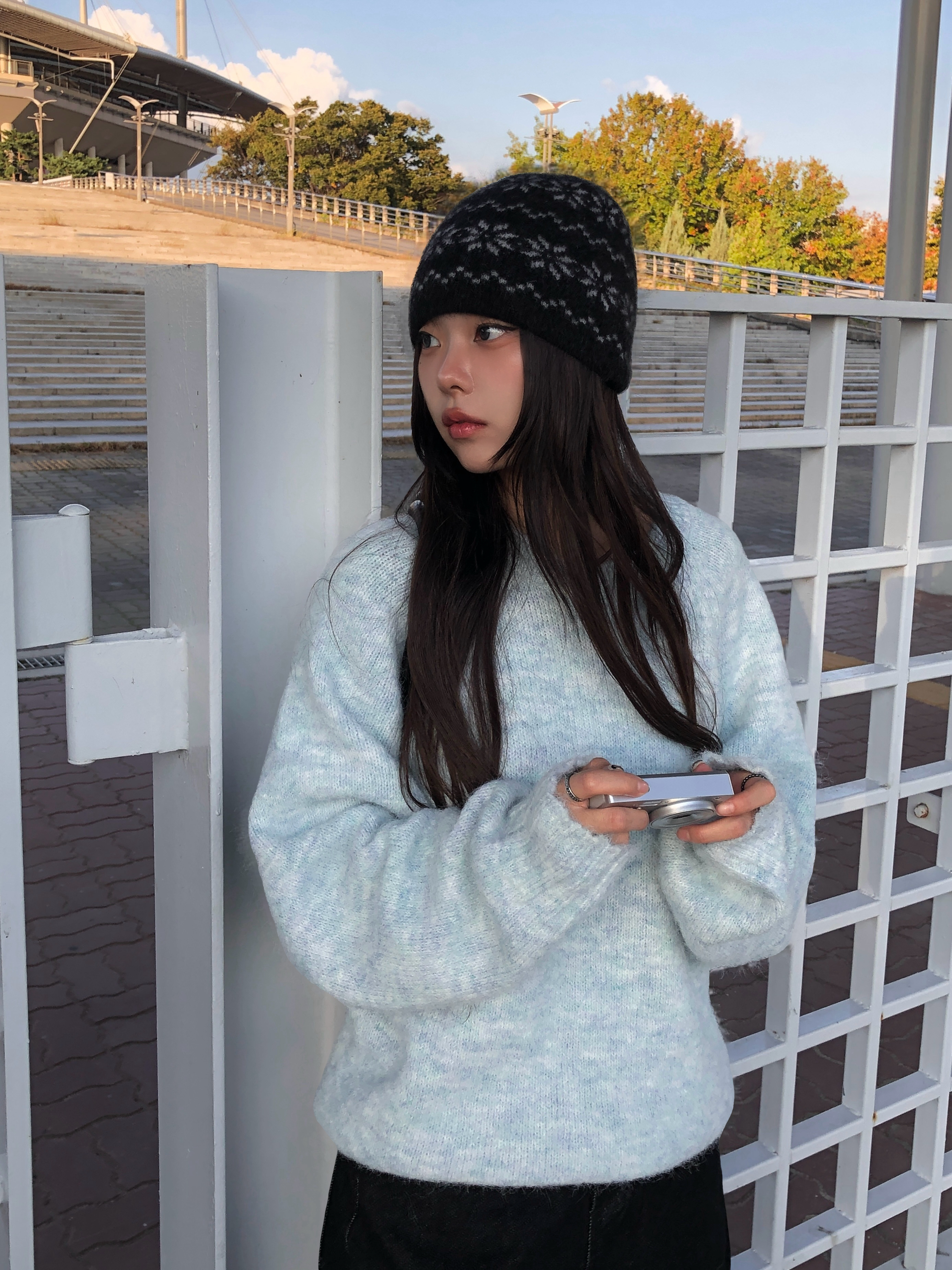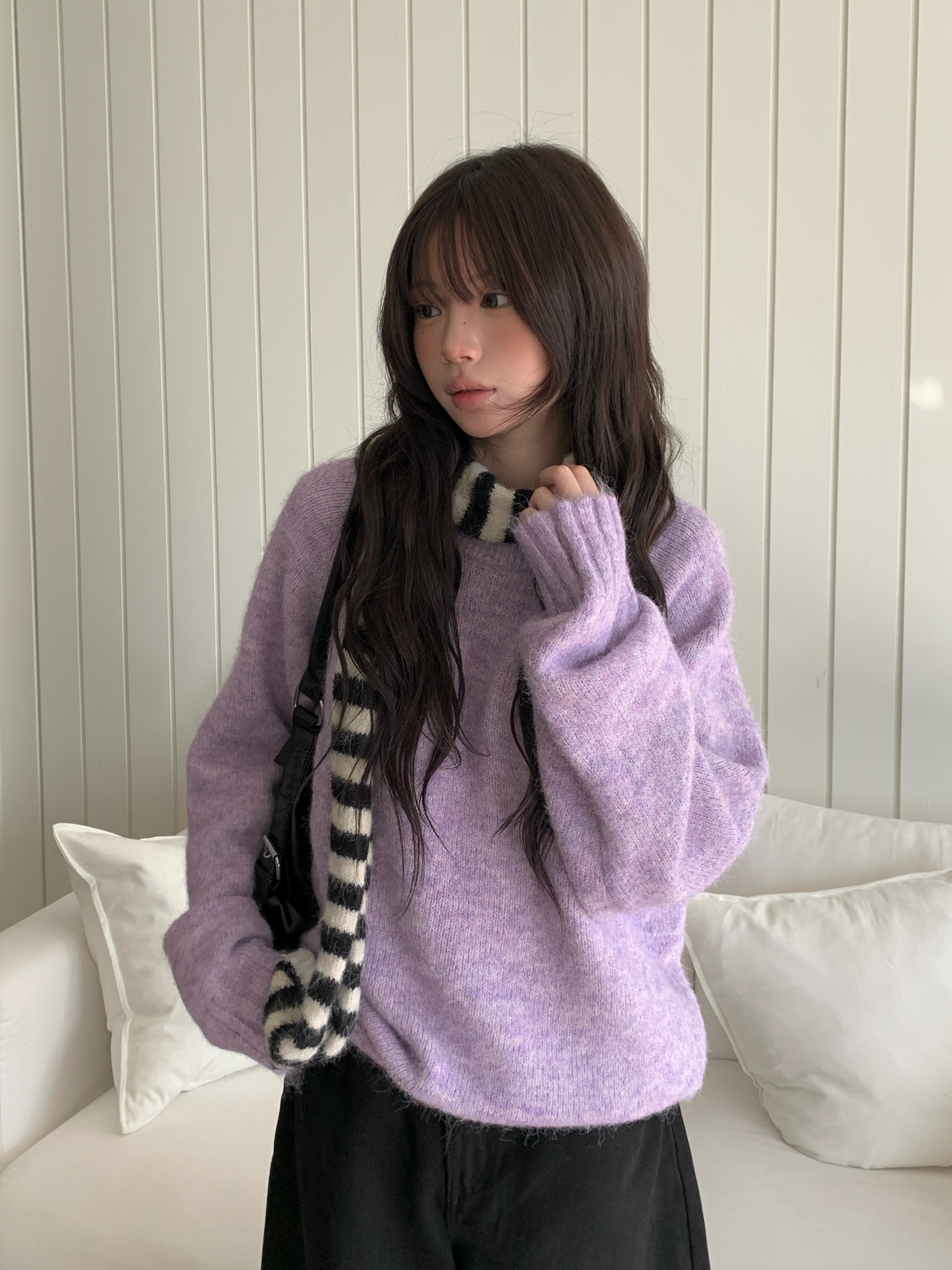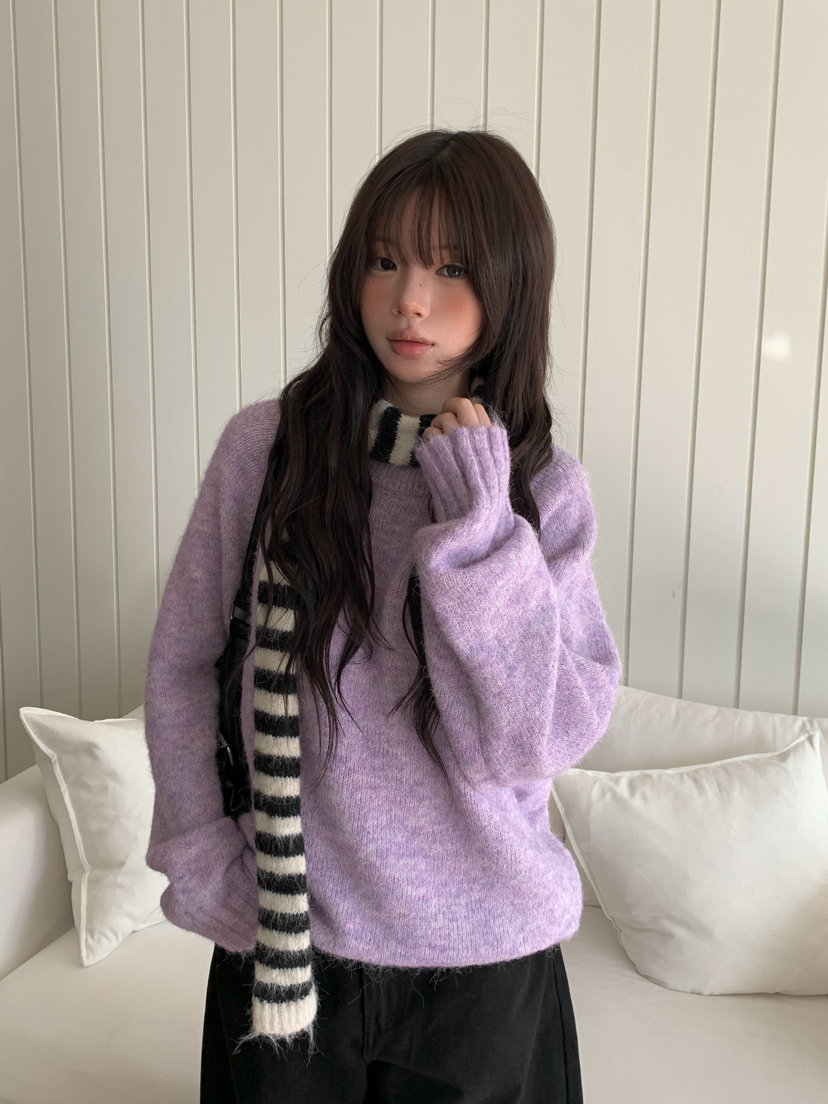 ミックス調ぼかしパステルルーズラウンドネックニット