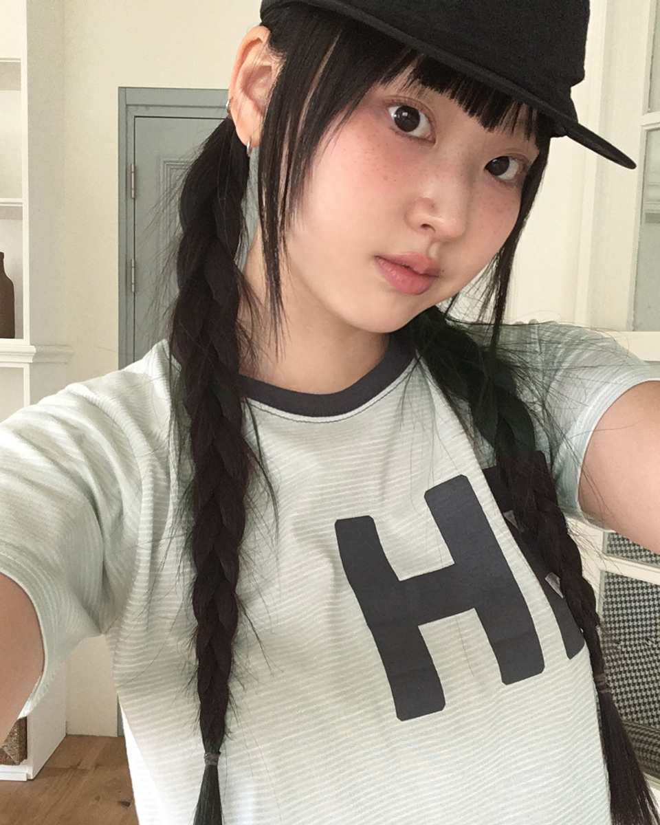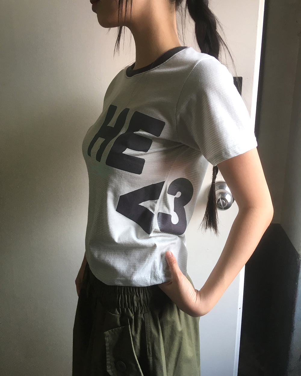 ヴィンテージストライプ ボーダーレタリングプリント半袖Tシャツ
