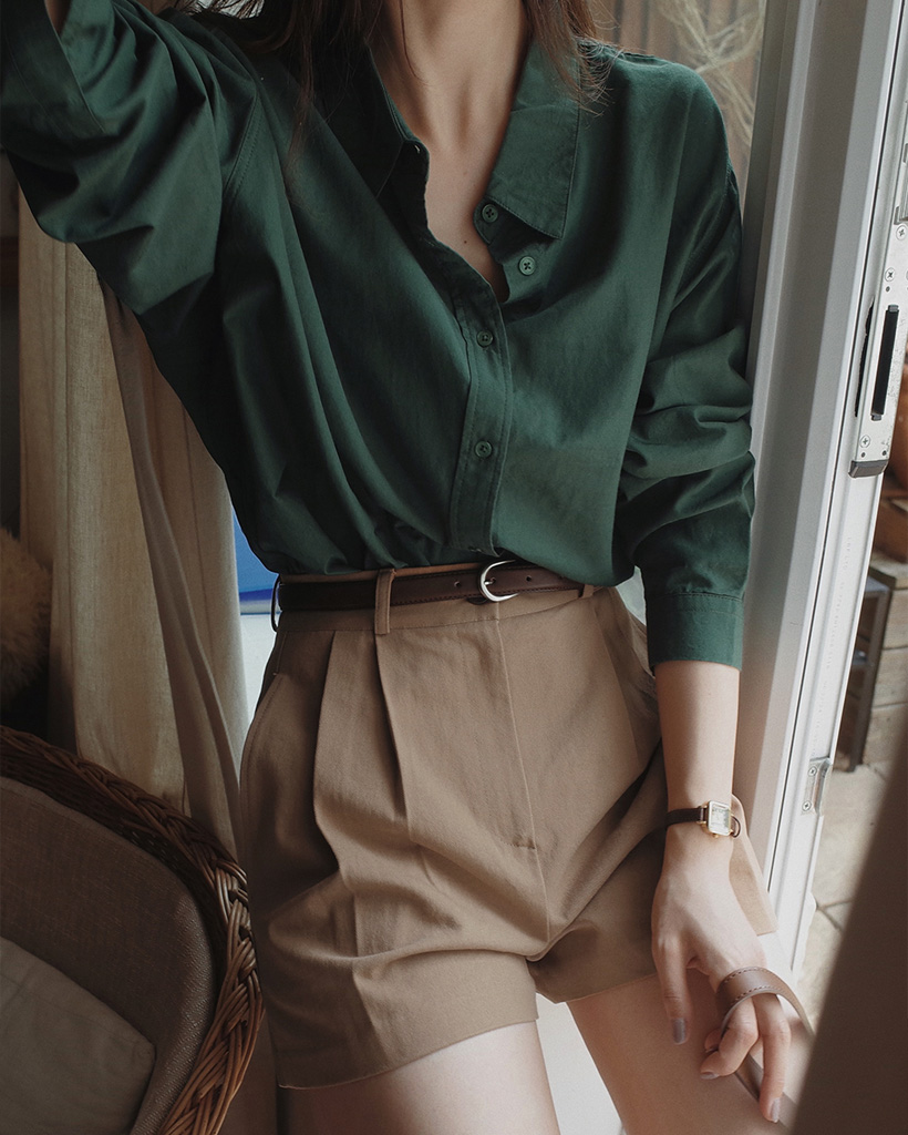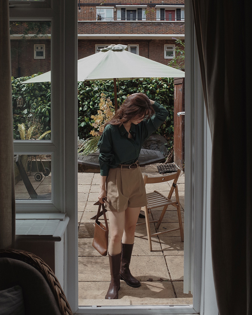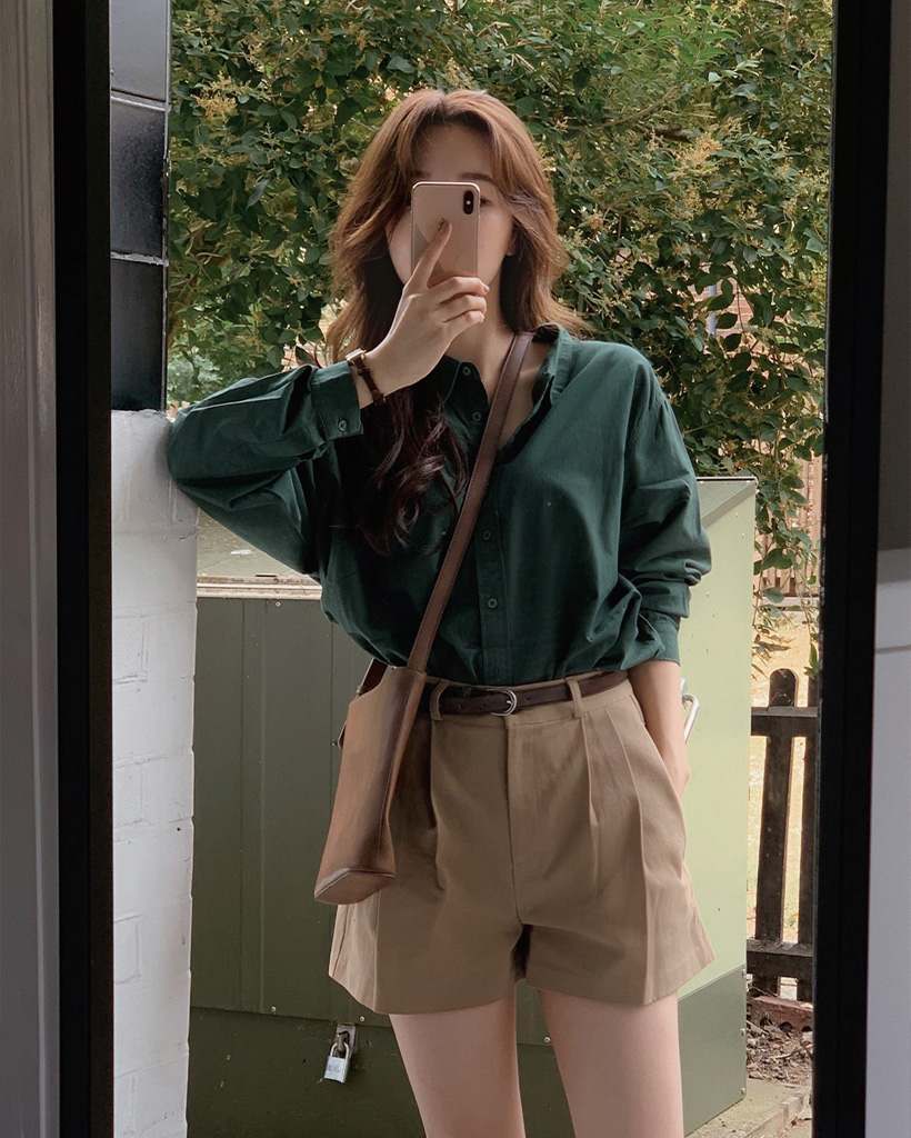 -파이 탄탄핏 핀턱코튼쇼츠 /S,베이지