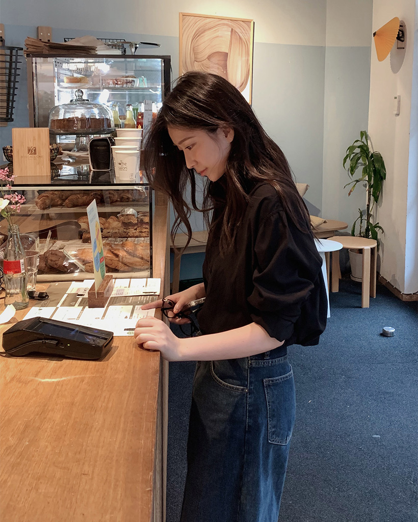 *model : yu with item-빈티지카키 와이드 다잉데님팬츠 /롱S