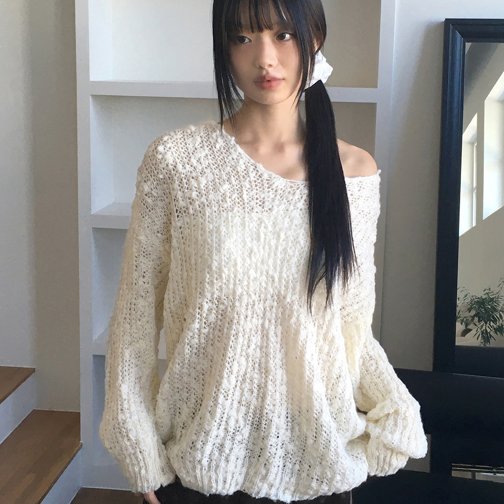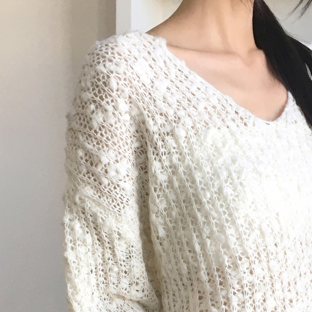 ウールルーズフィットボートネック雪花ブークレニット