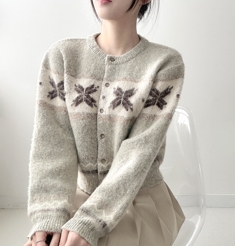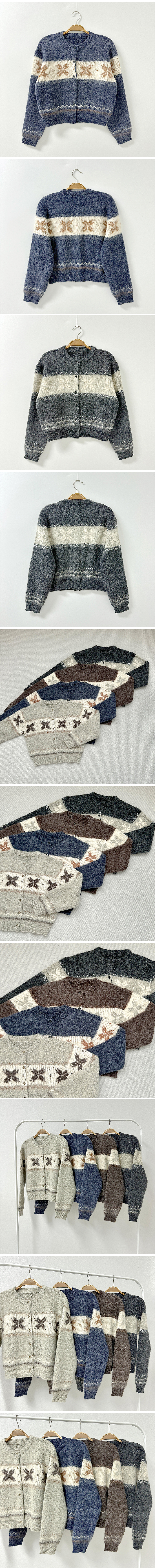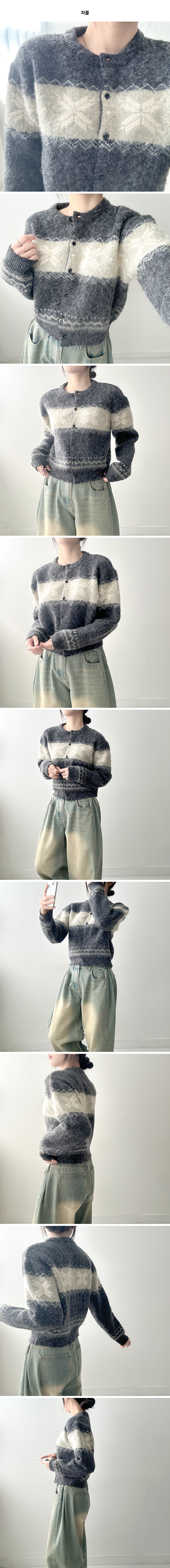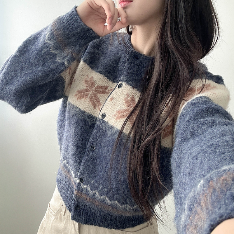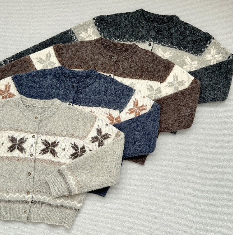 ボーダー雪柄ニットカーディガン