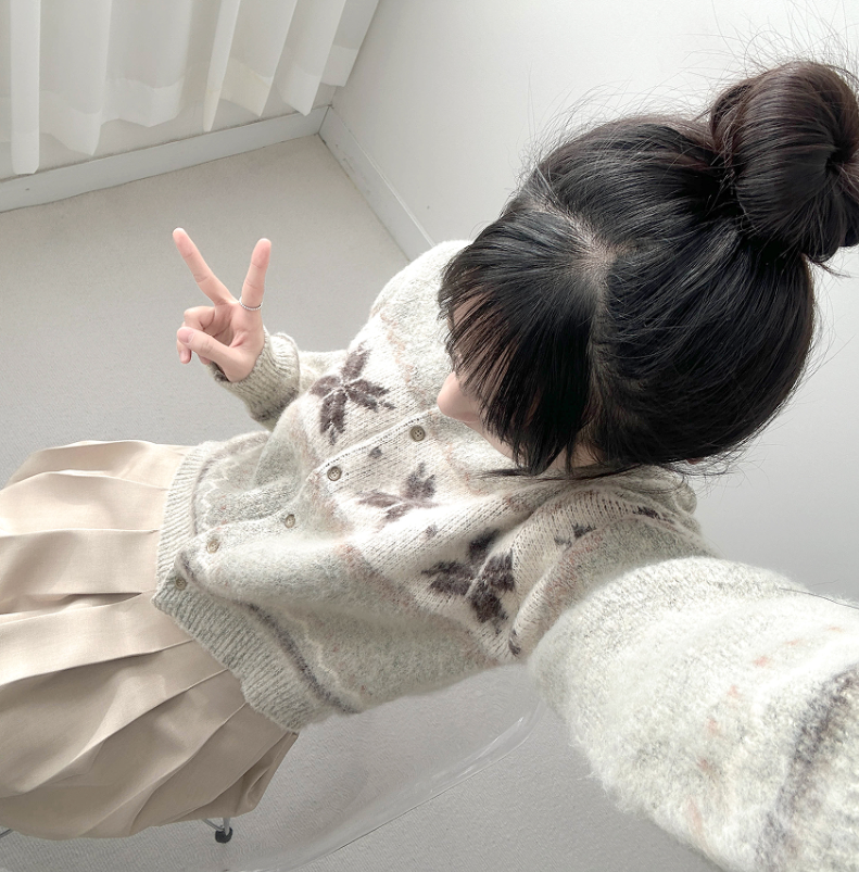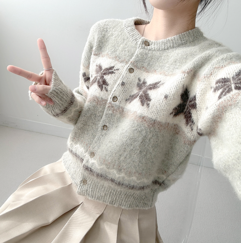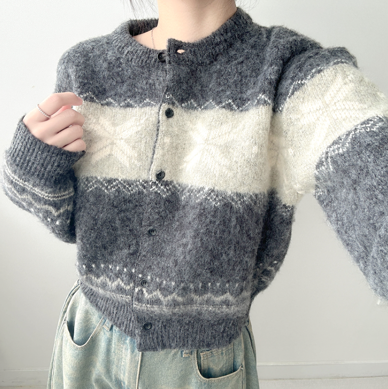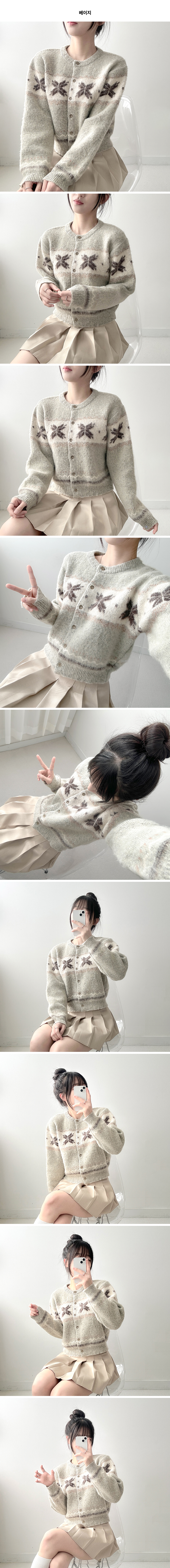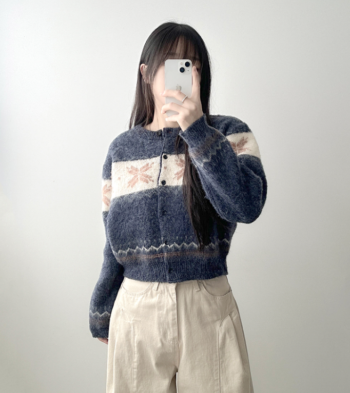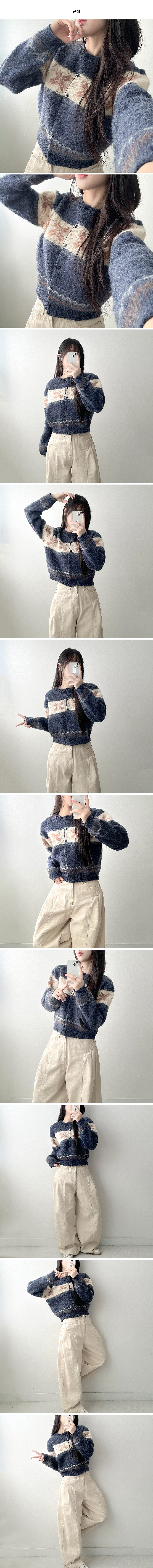 ボーダー雪柄ニットカーディガン