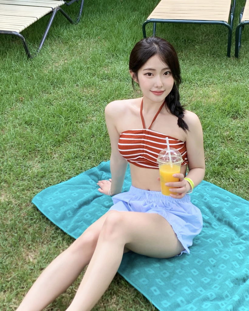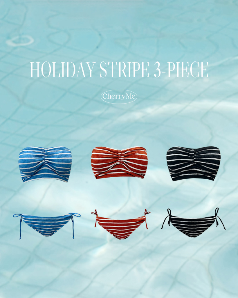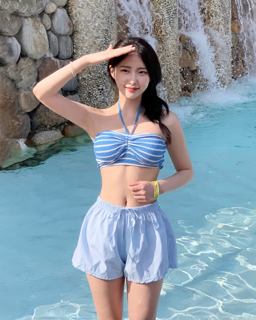 [SET]ストライプホルターネックシャーリングビキニ+ショートパンツセット