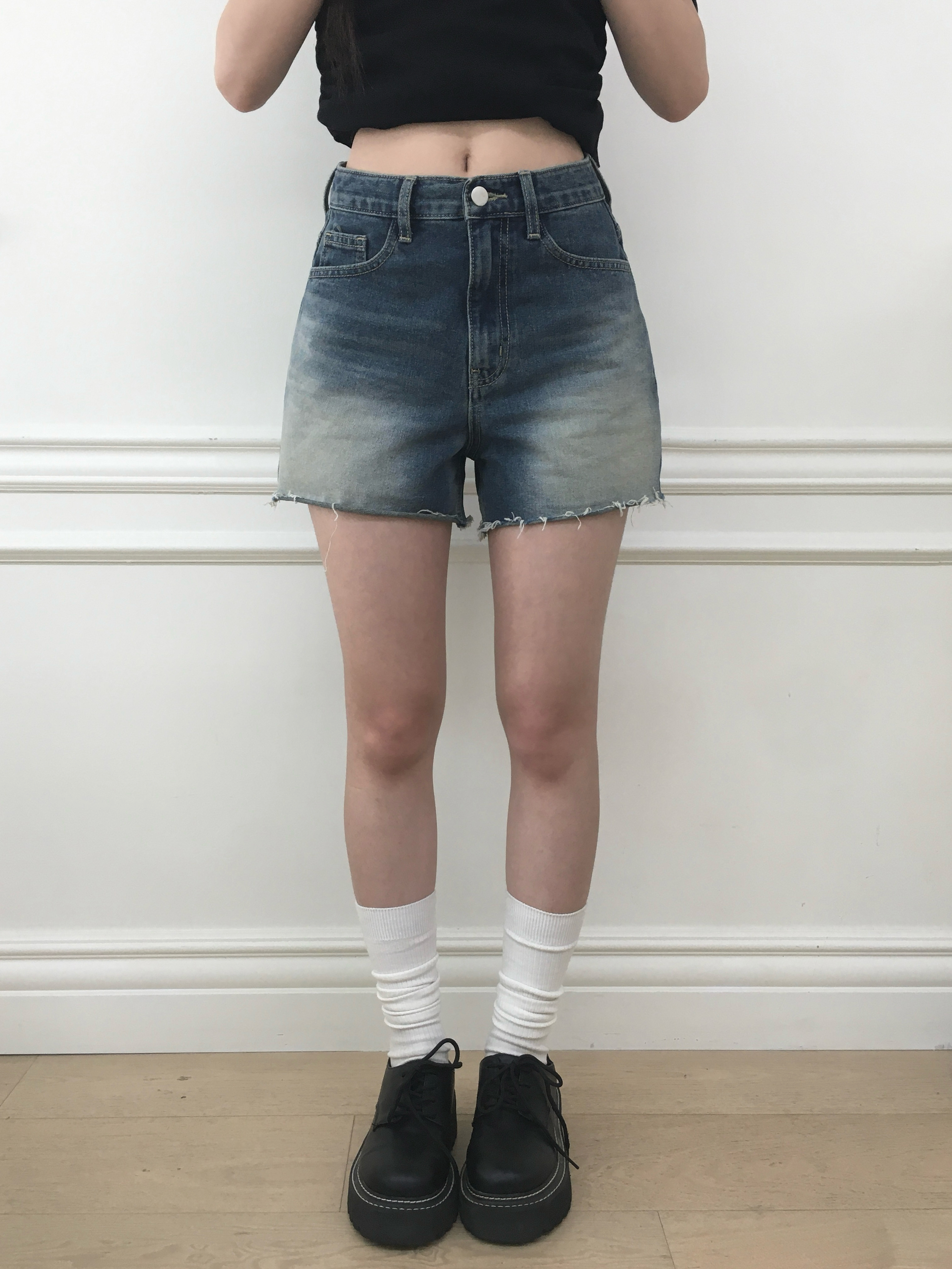 ビンテージ裾ダメージサマーショートデニムパンツ