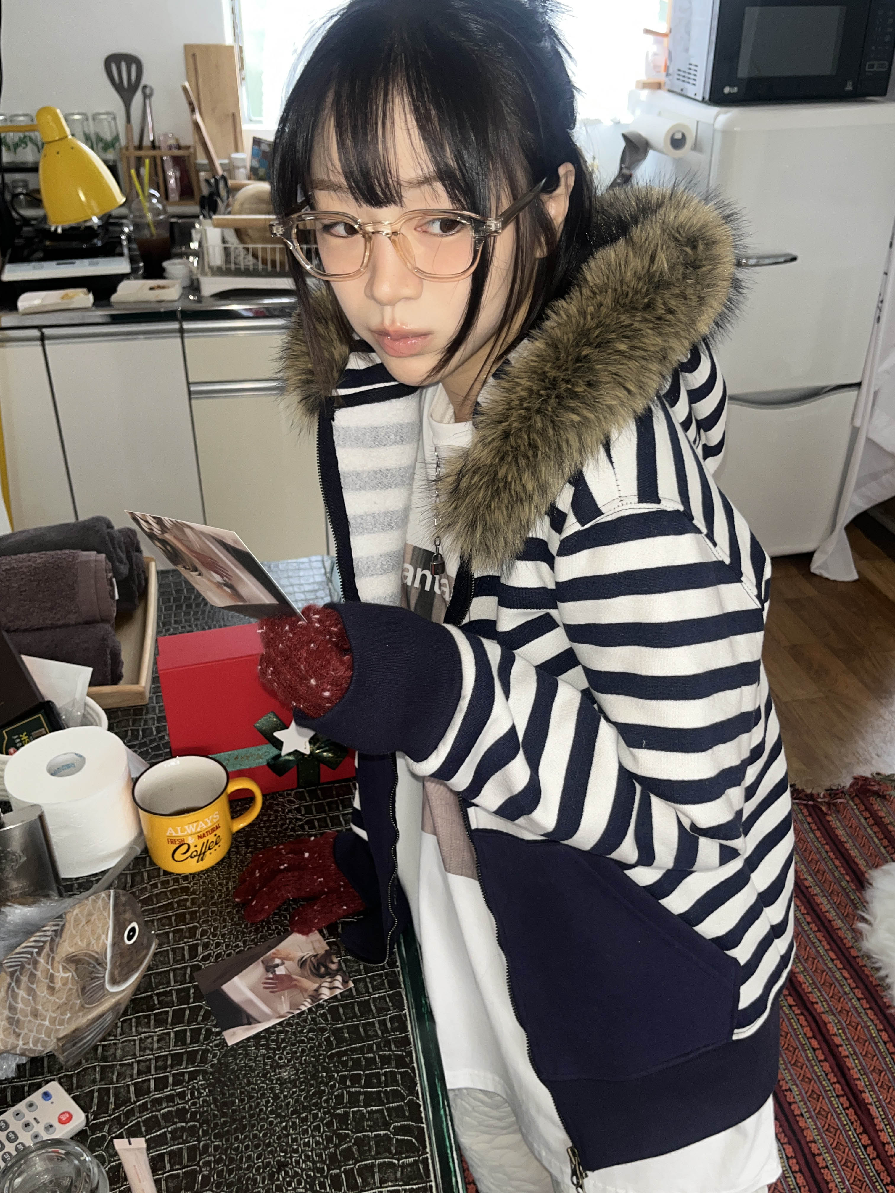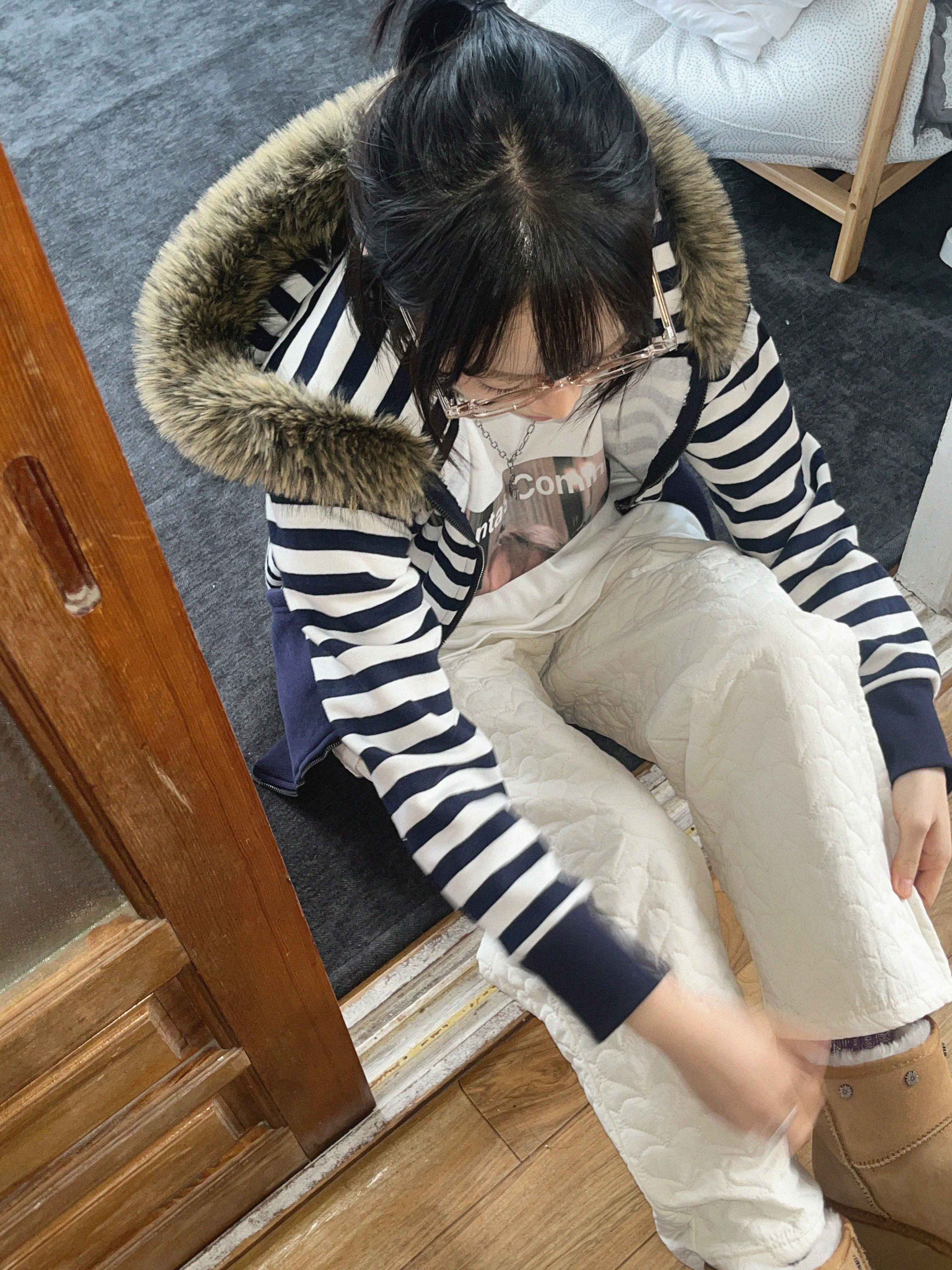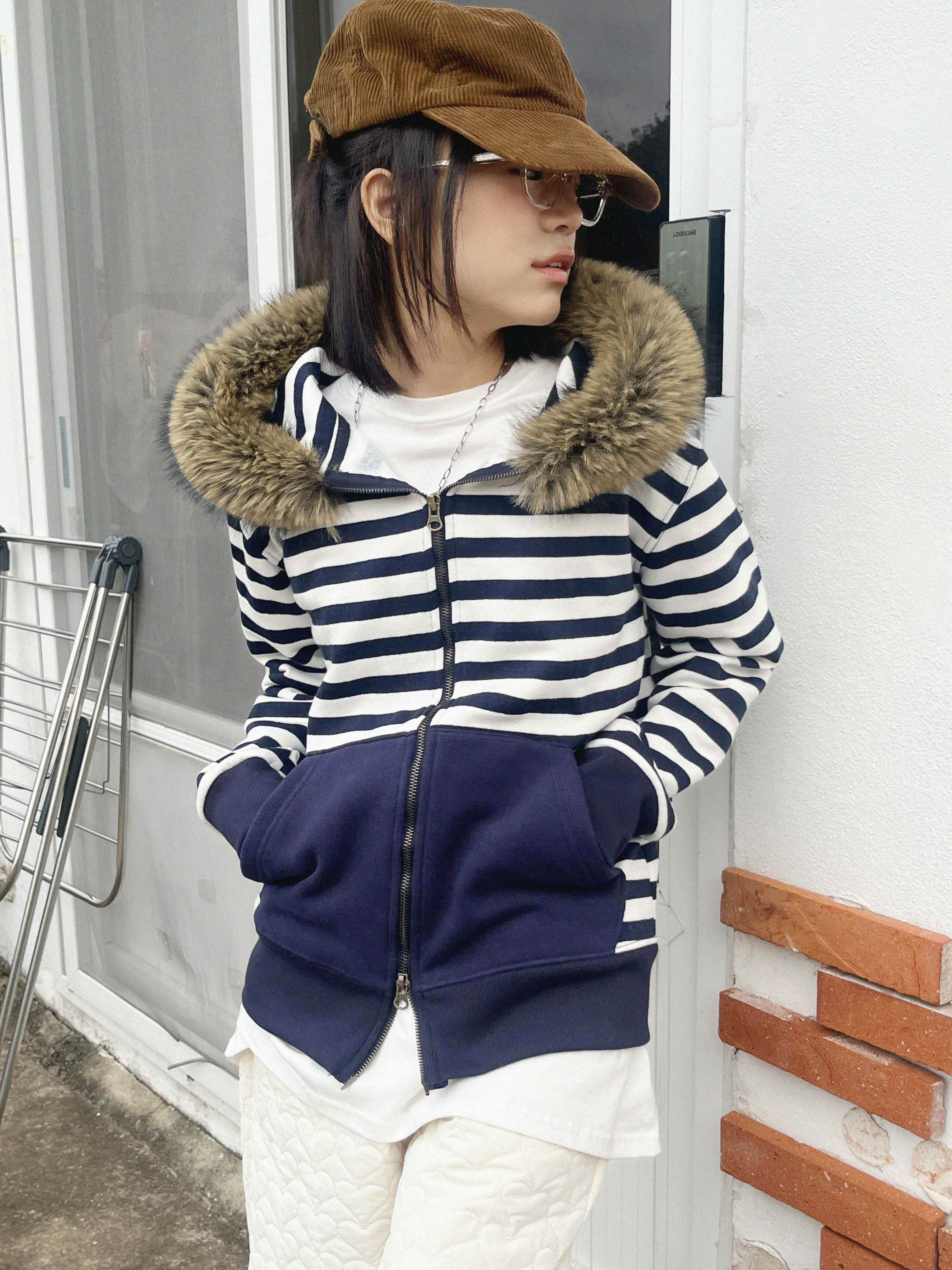 [9.hope] ファー付きボーダーパーカー