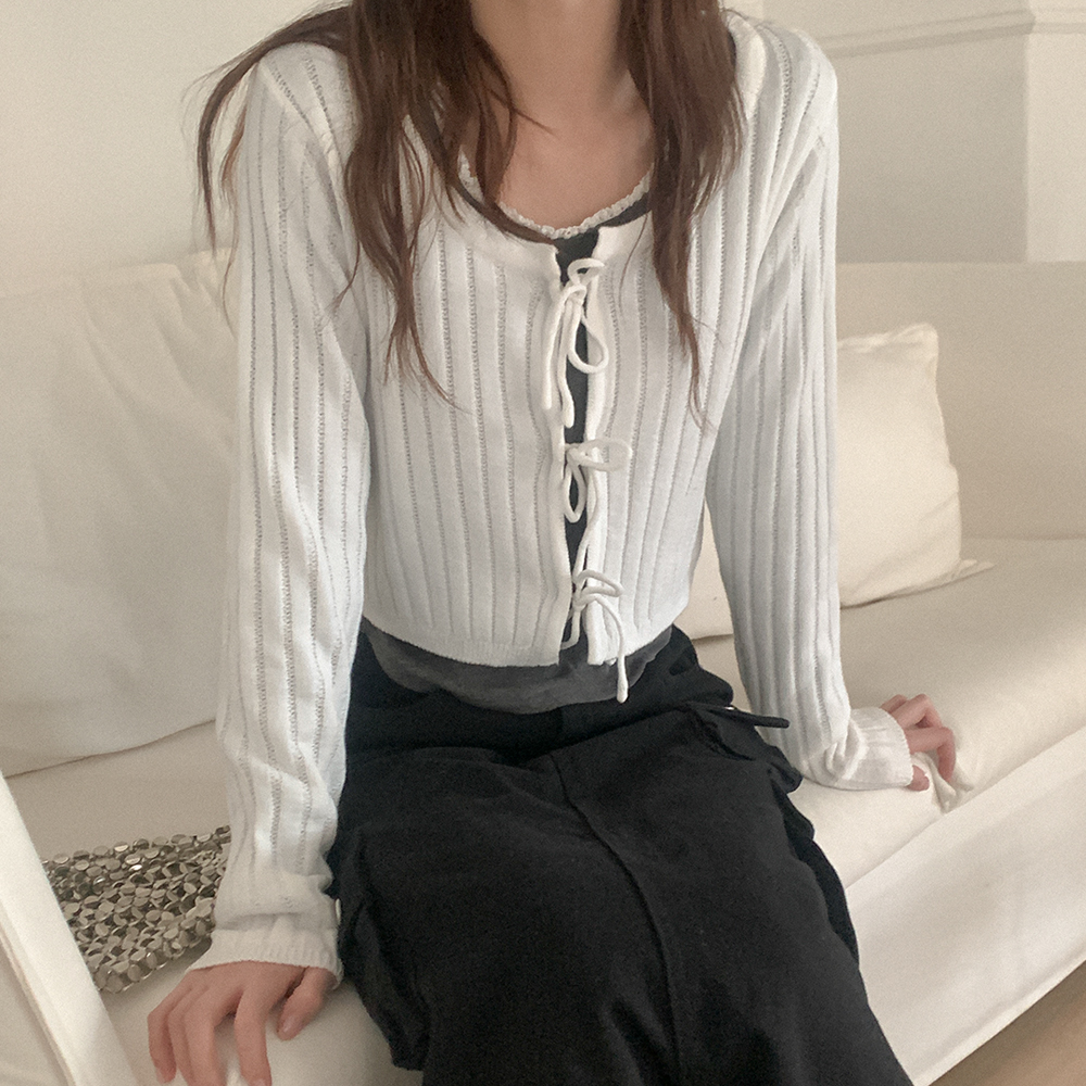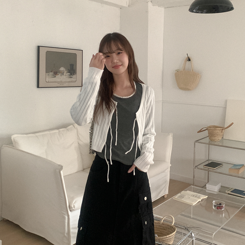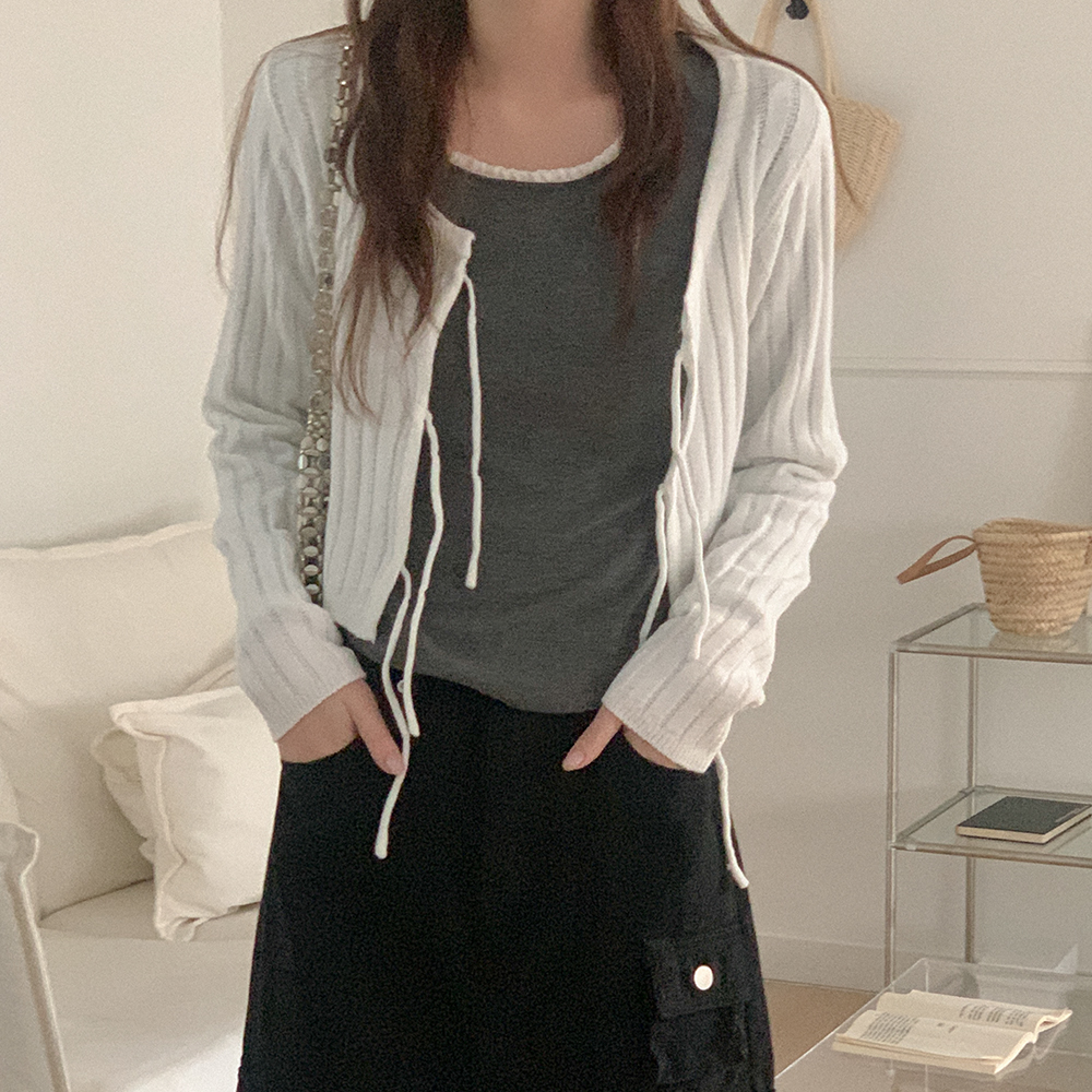 リブリボンニットカーディガン