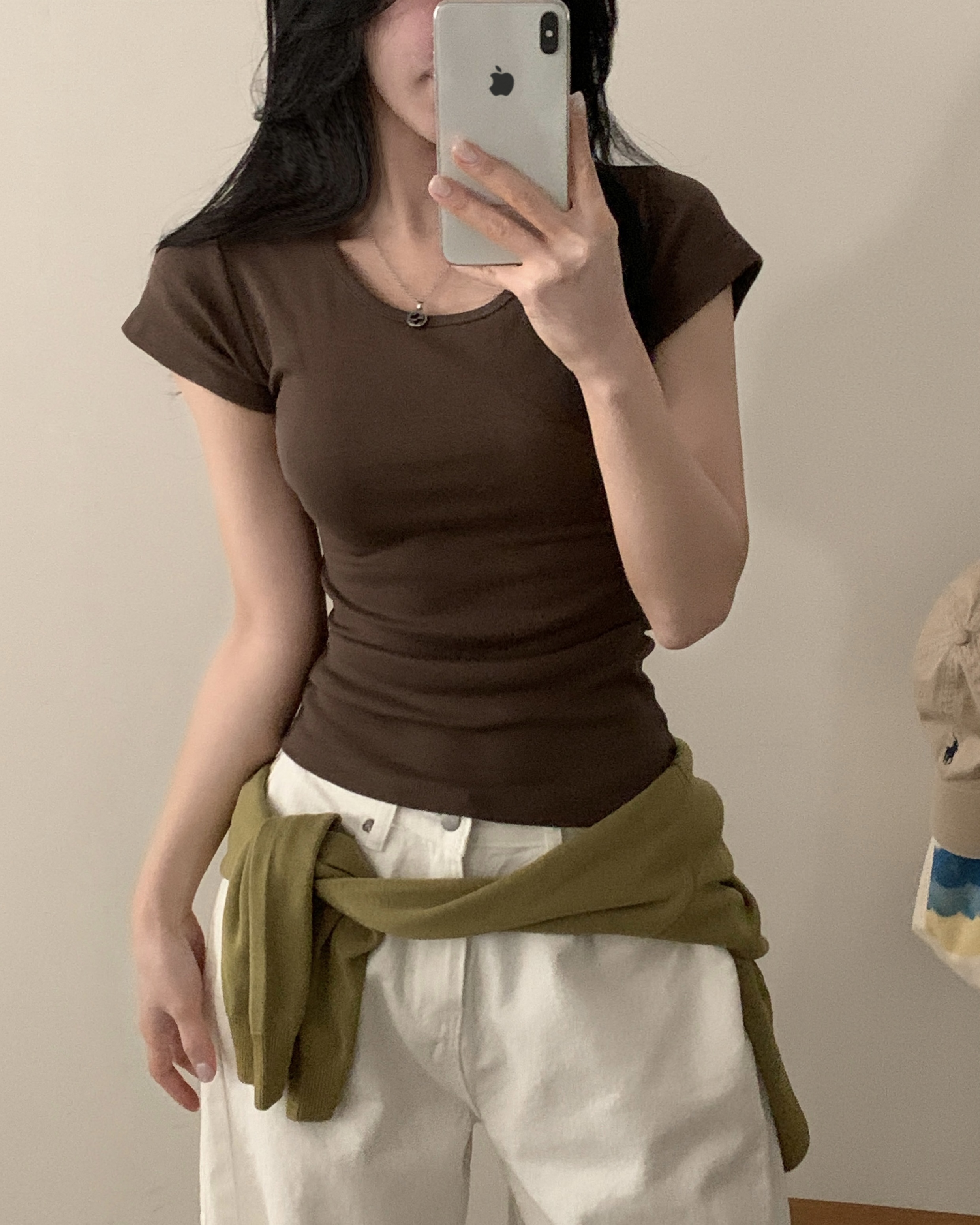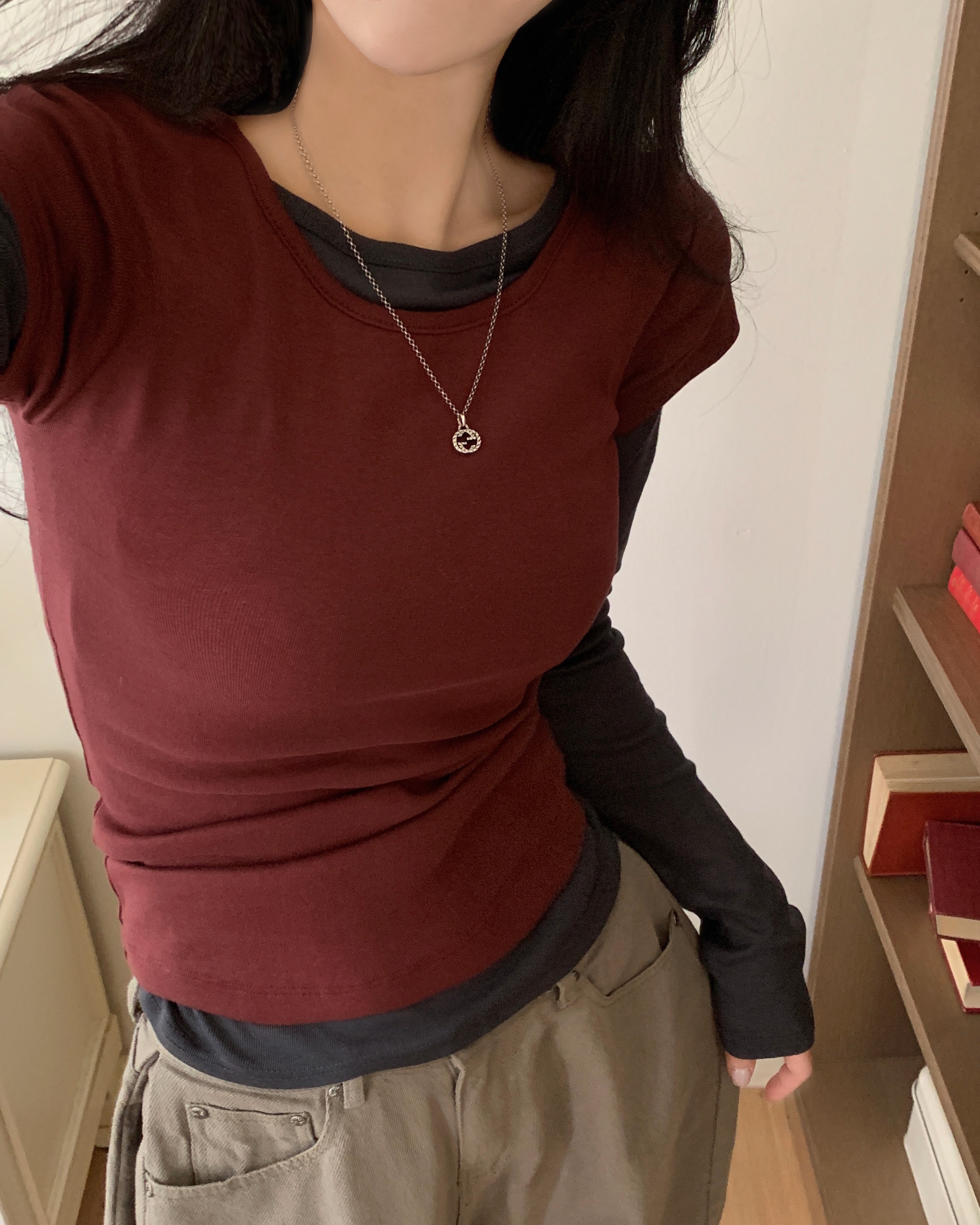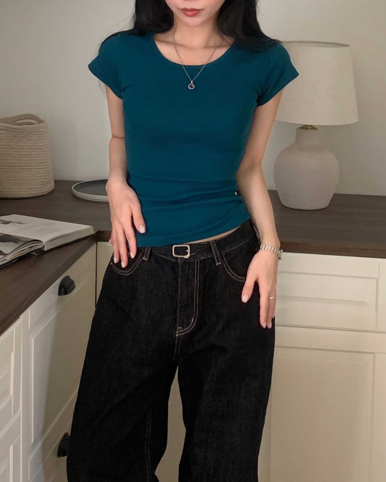 (9color) 2TYPE ベーシックUネック半袖Tシャツ