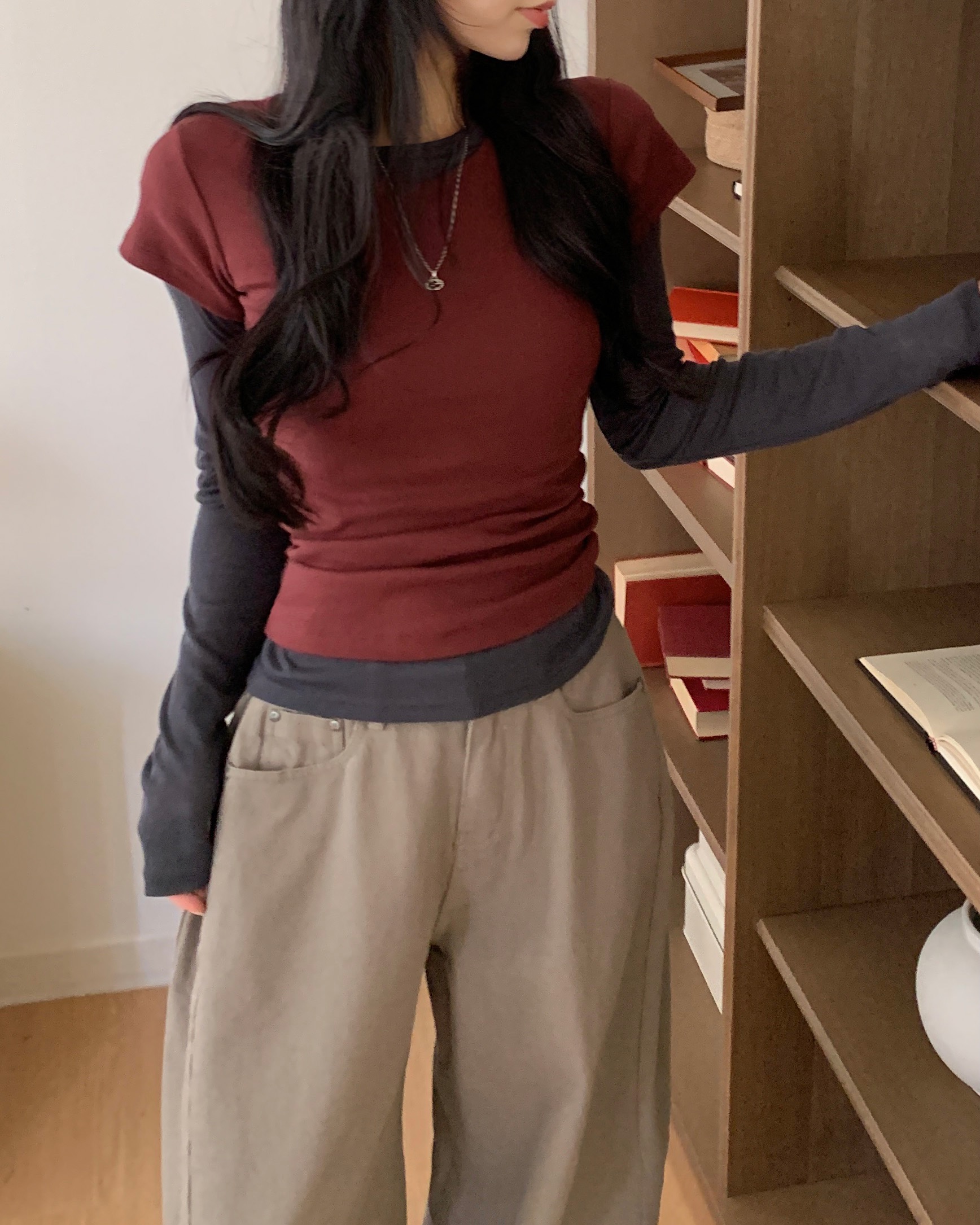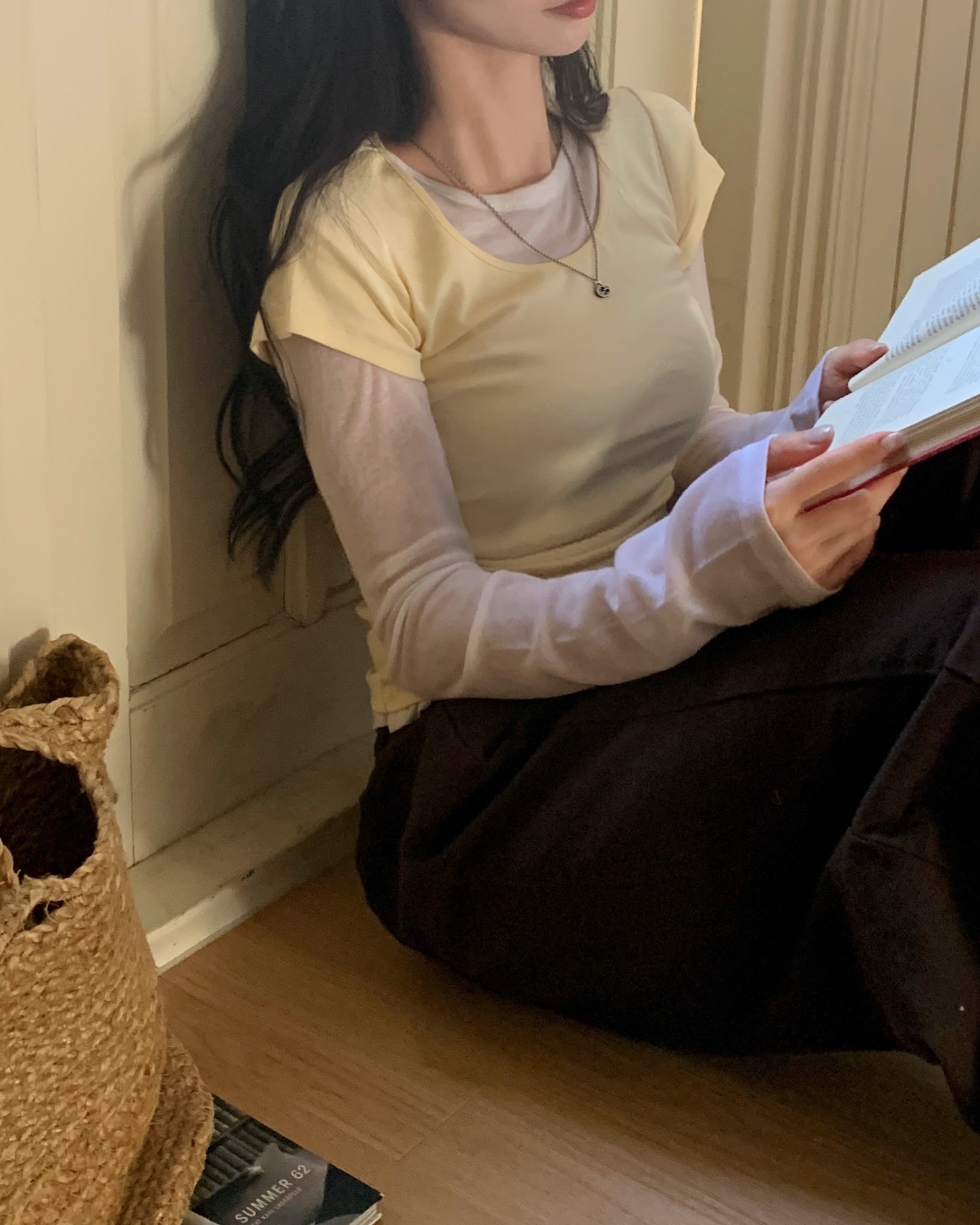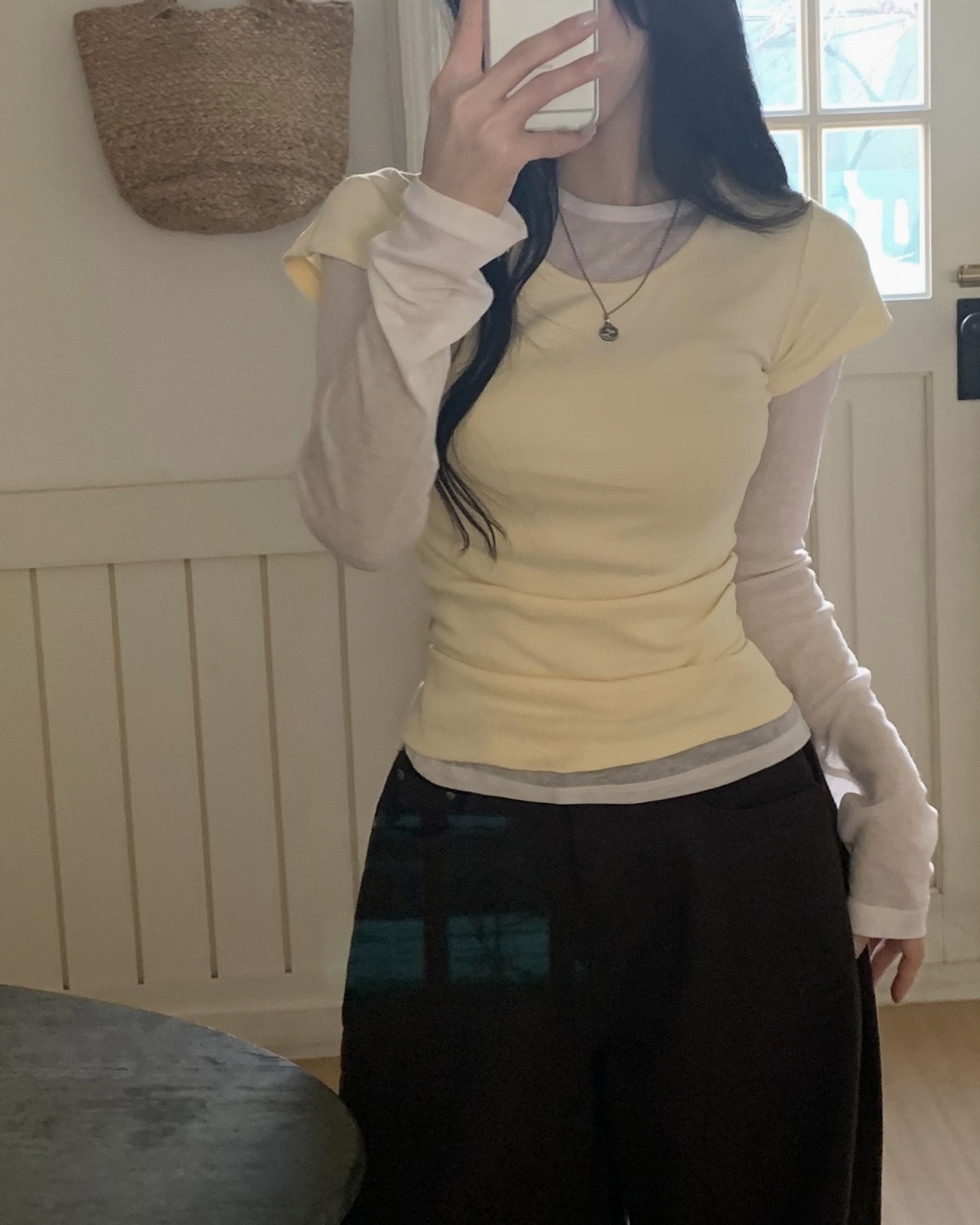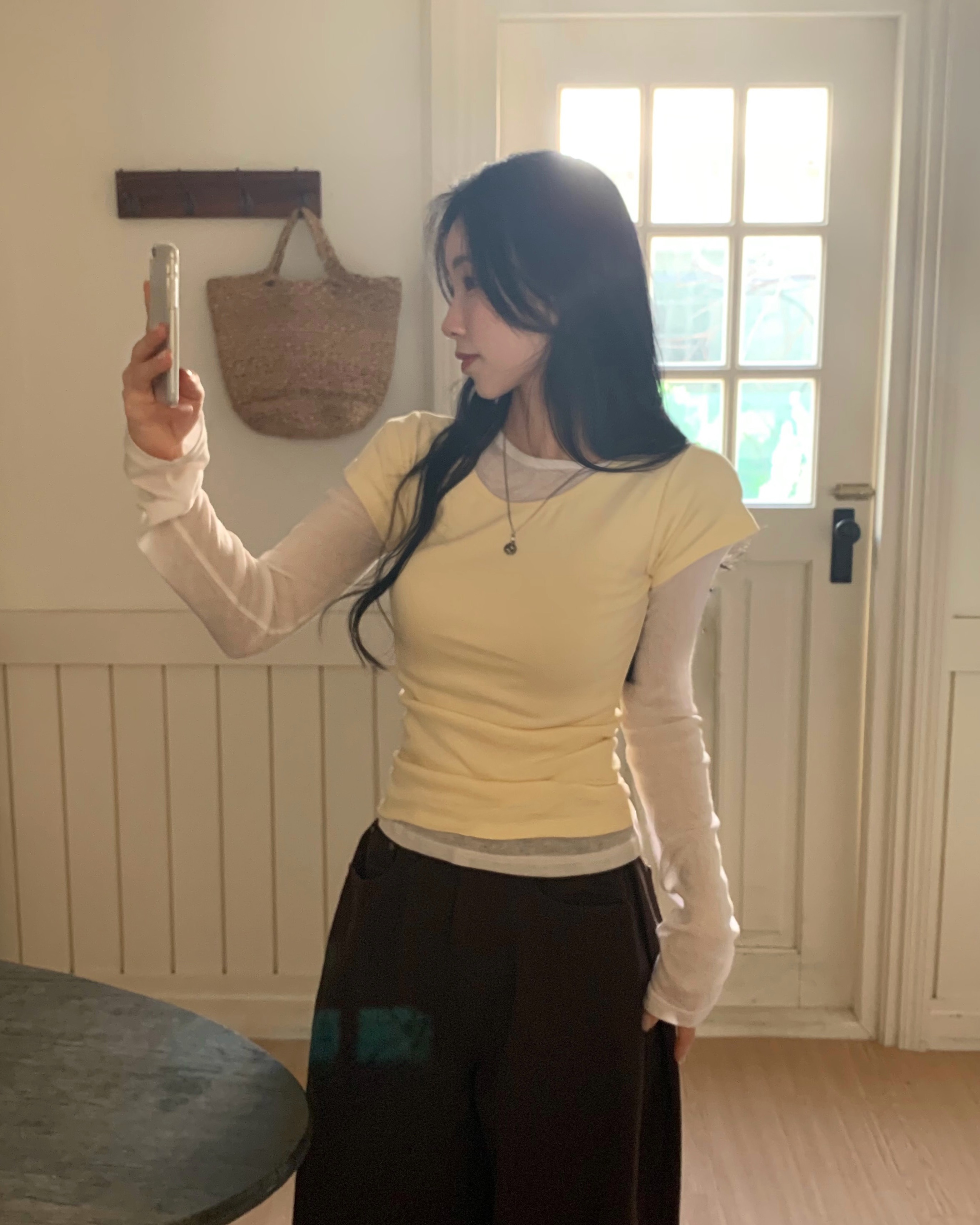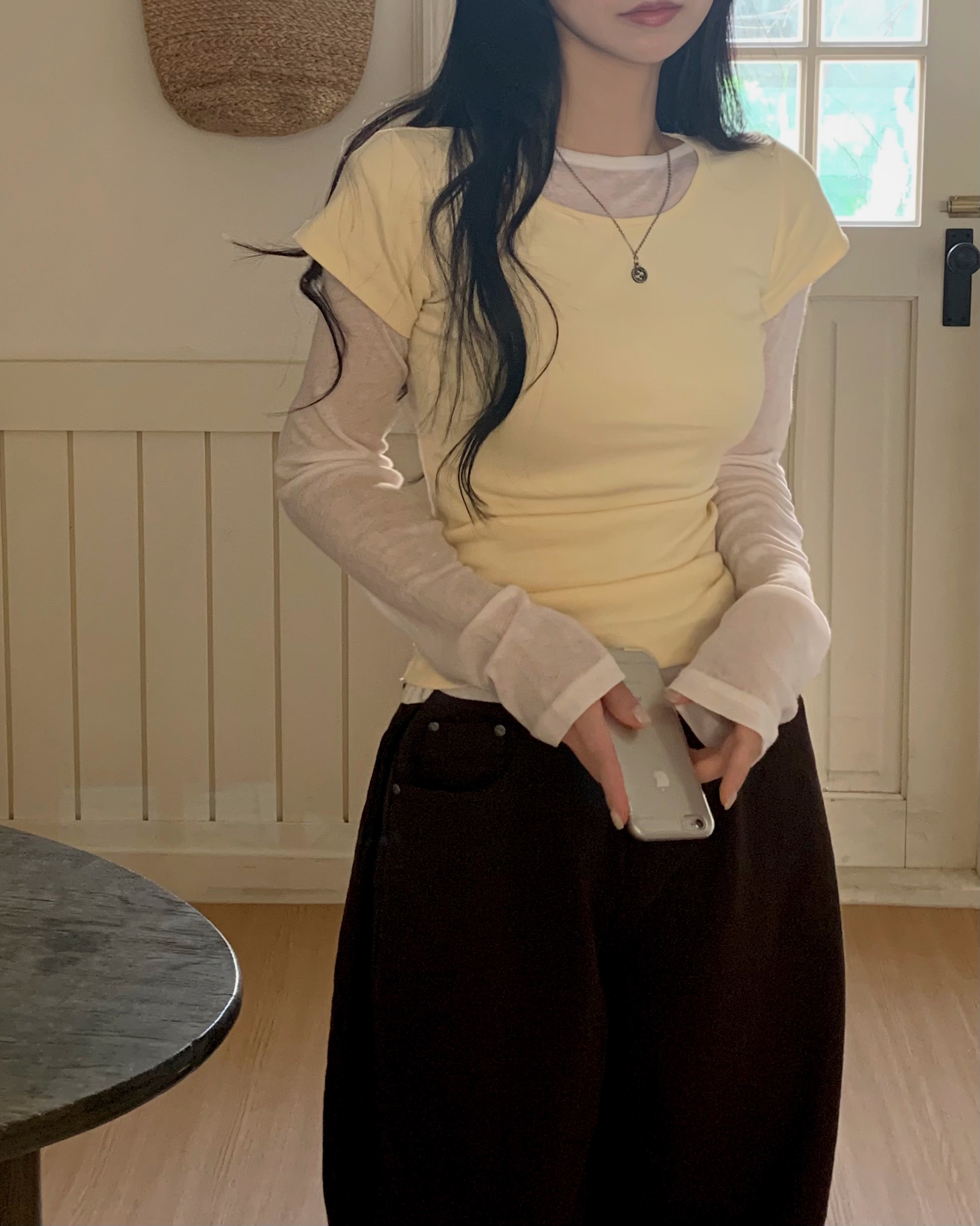 팔뚝을 부담 없이 커버해주는 소매 기장감과