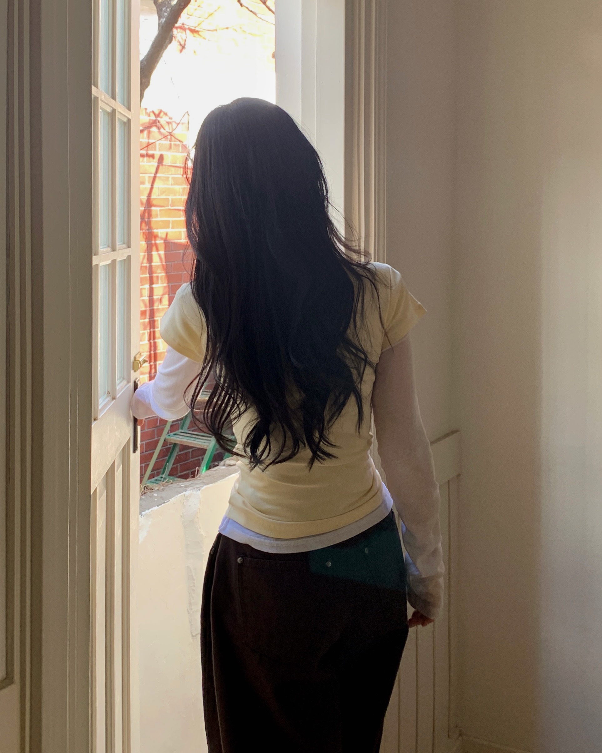 별도의 셔링 디테일 없이 깔끔하게 완성해