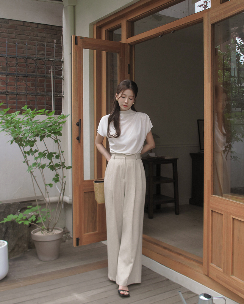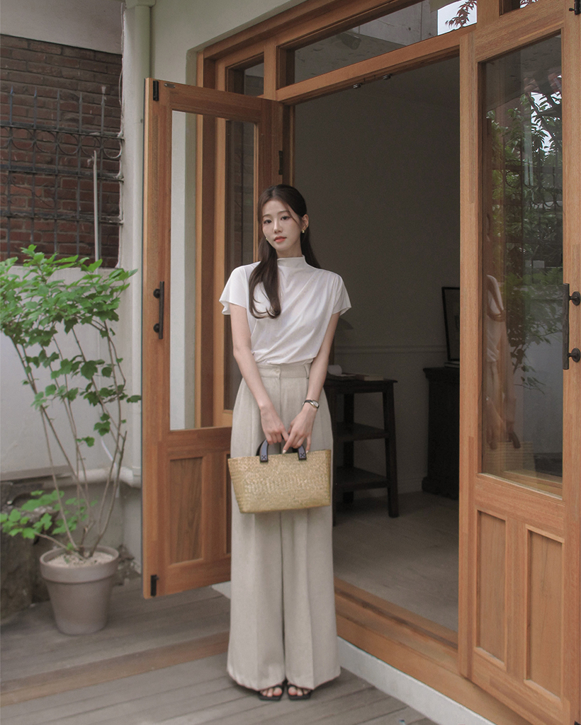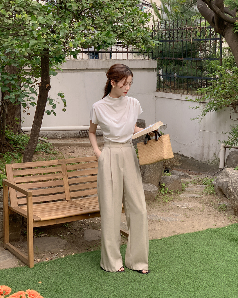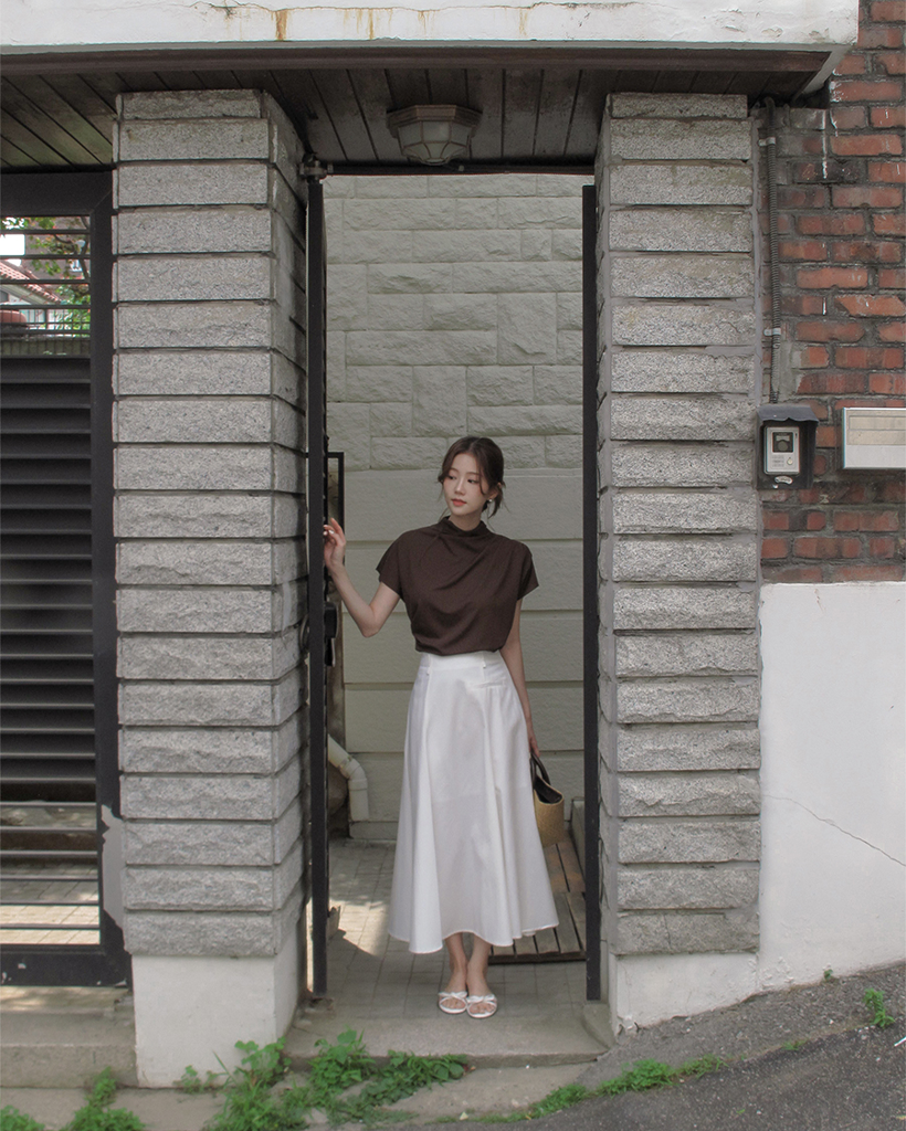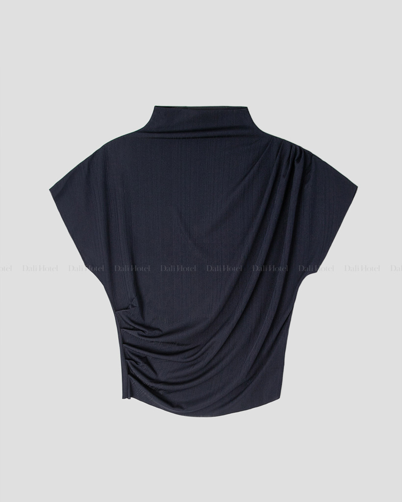 (6color) ハイネック ドレープ シャーリング ブラウス トップス