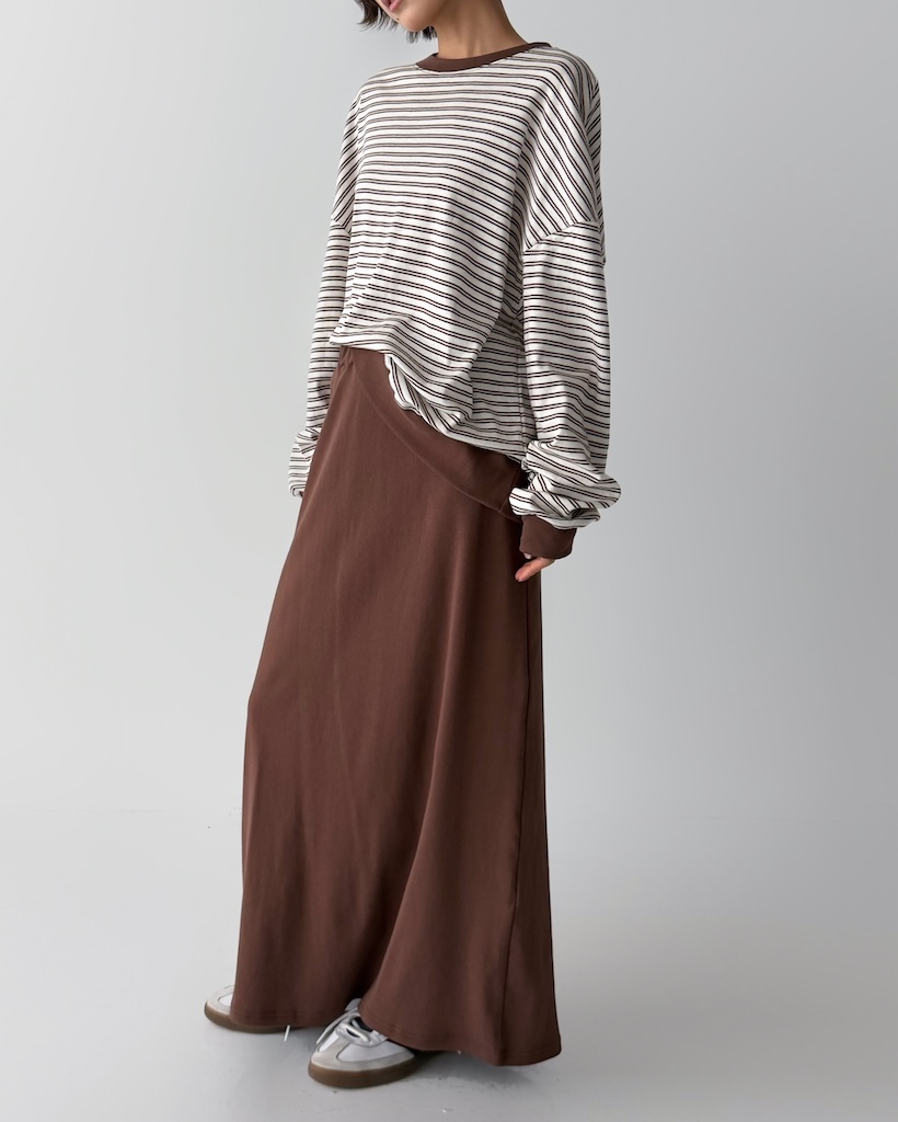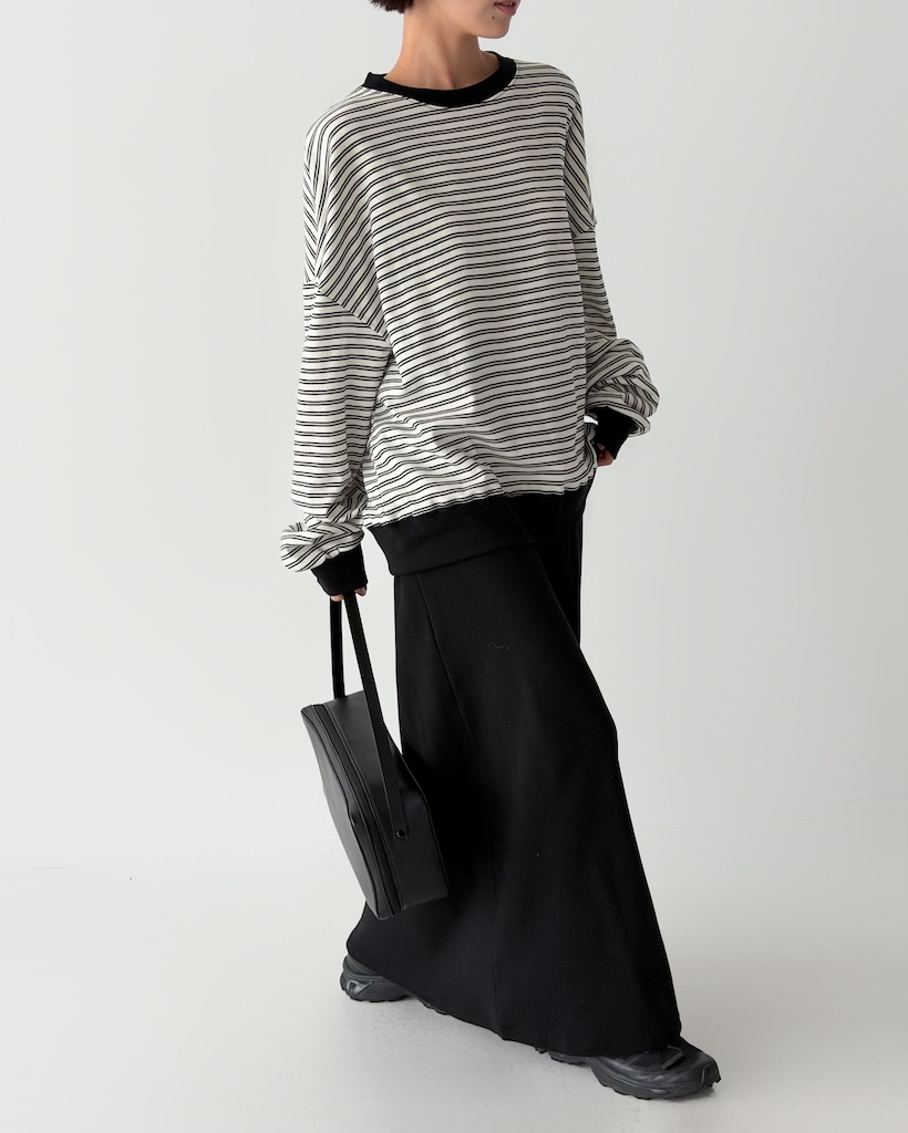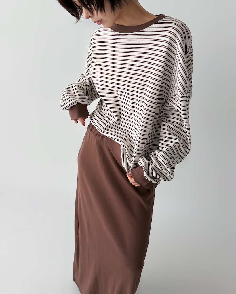 ボーダーオーバーサイズクルーネックTシャツ
