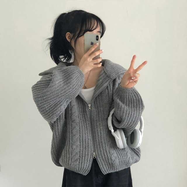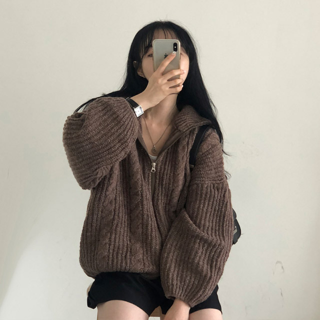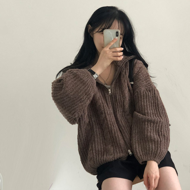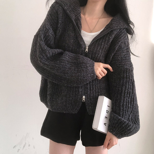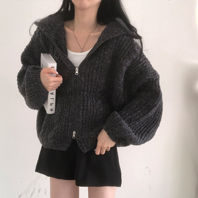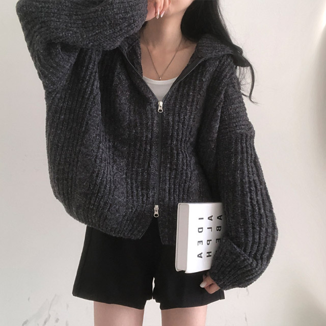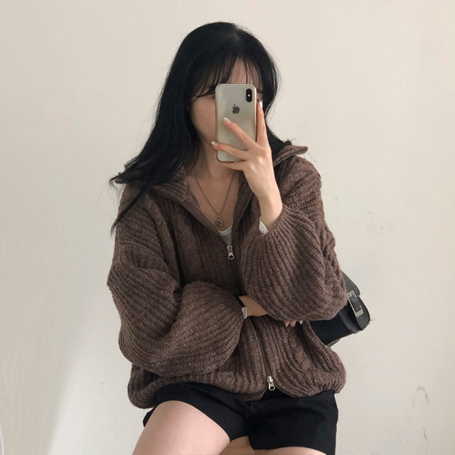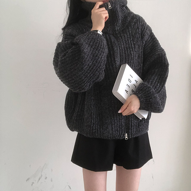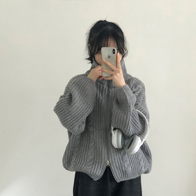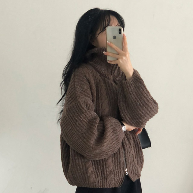 [5color]スリムハイネックツイスト2WAYニットパーカー