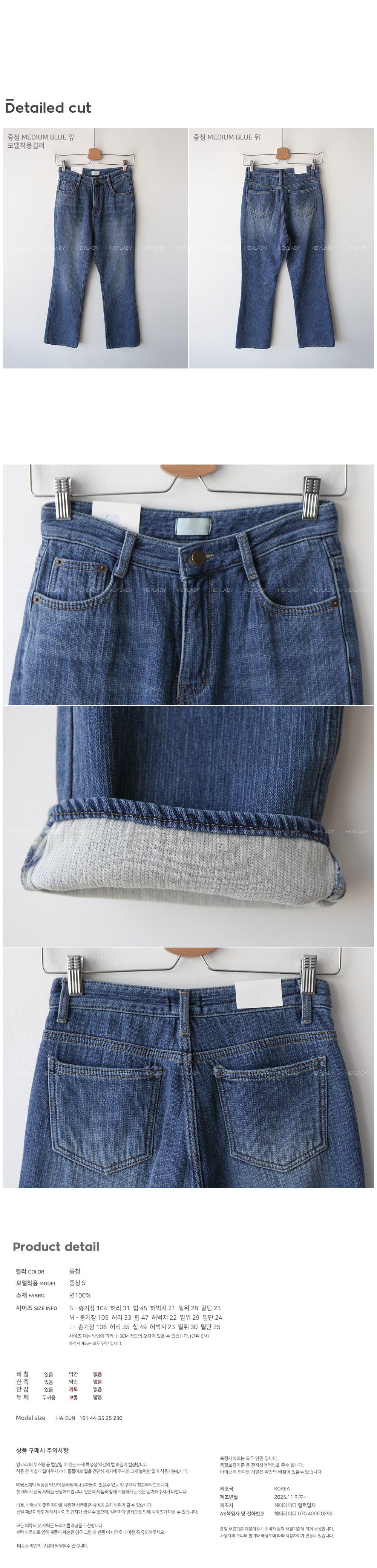 L - 総丈 106 ウエスト 35 ヒップ 49 わたり 23 股上 30 裾幅 25