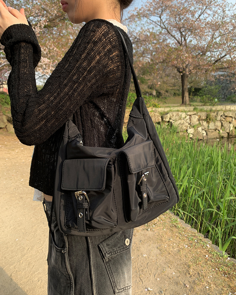 ダブルポケットショルダーバッグを