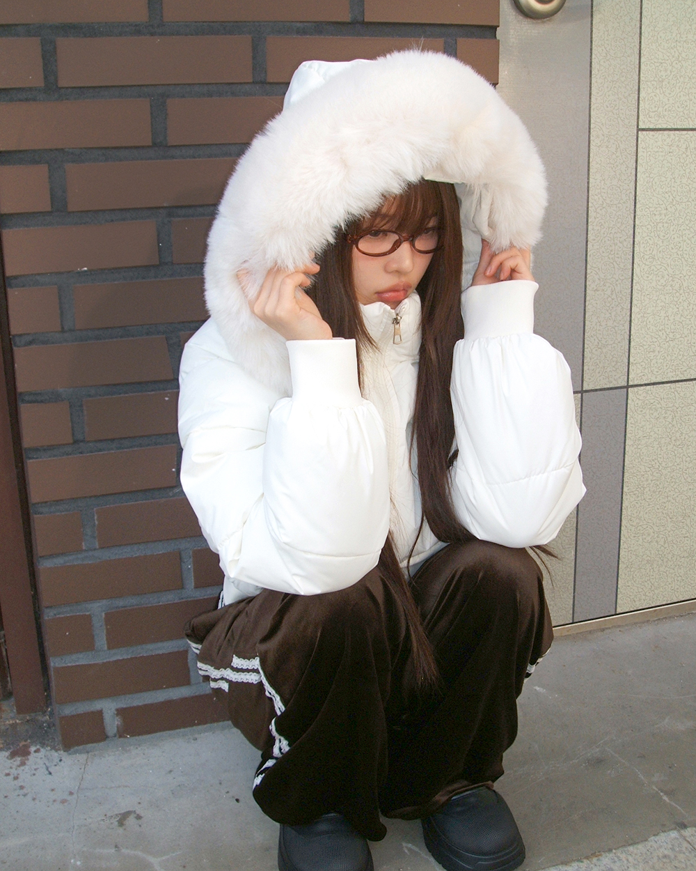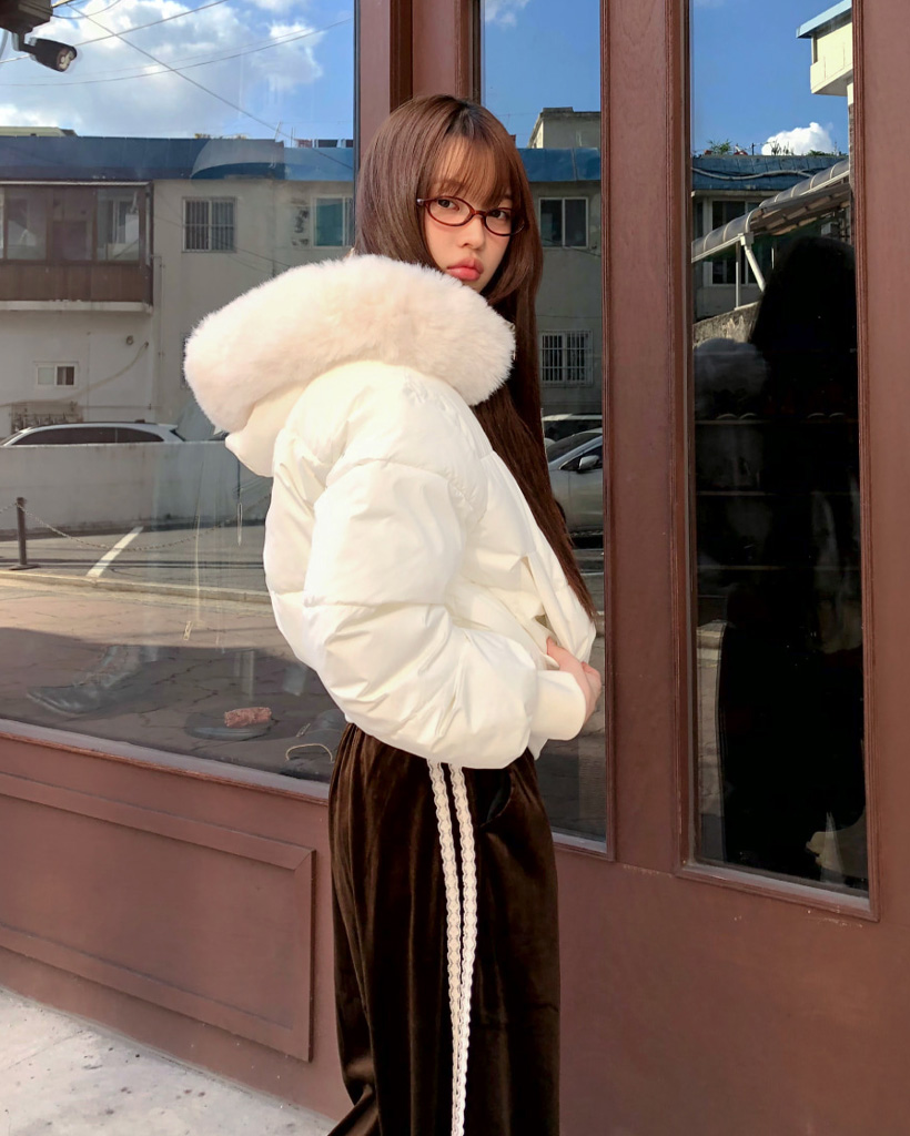 ファーフード付きショート ダウンジャケット