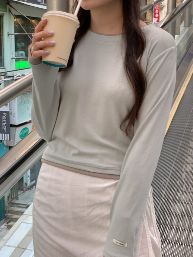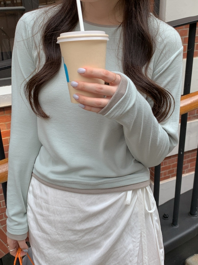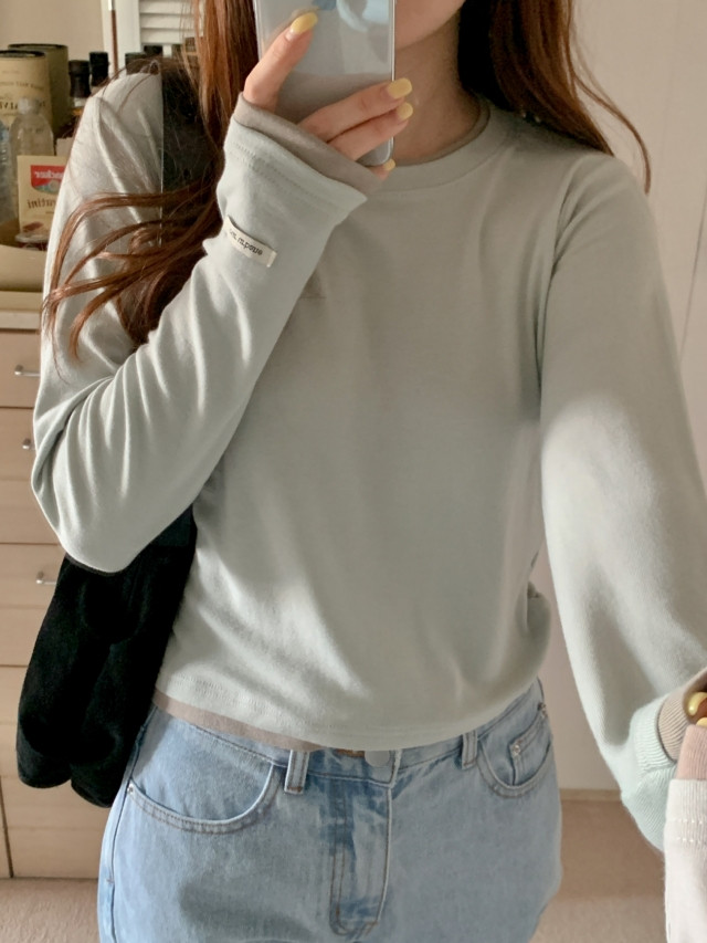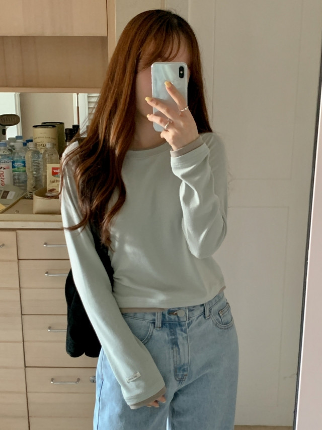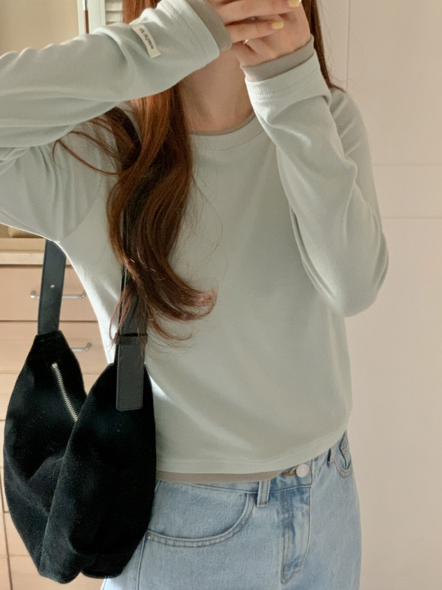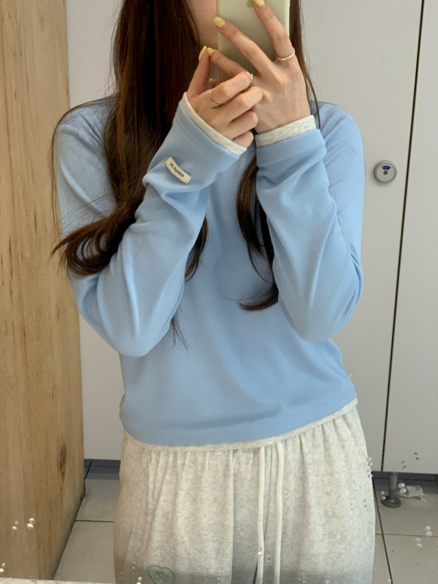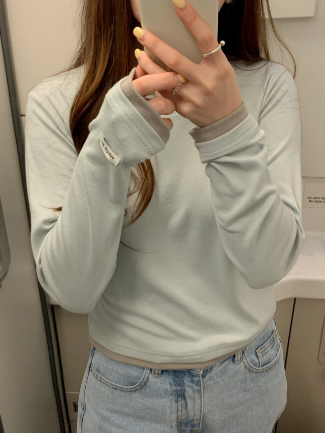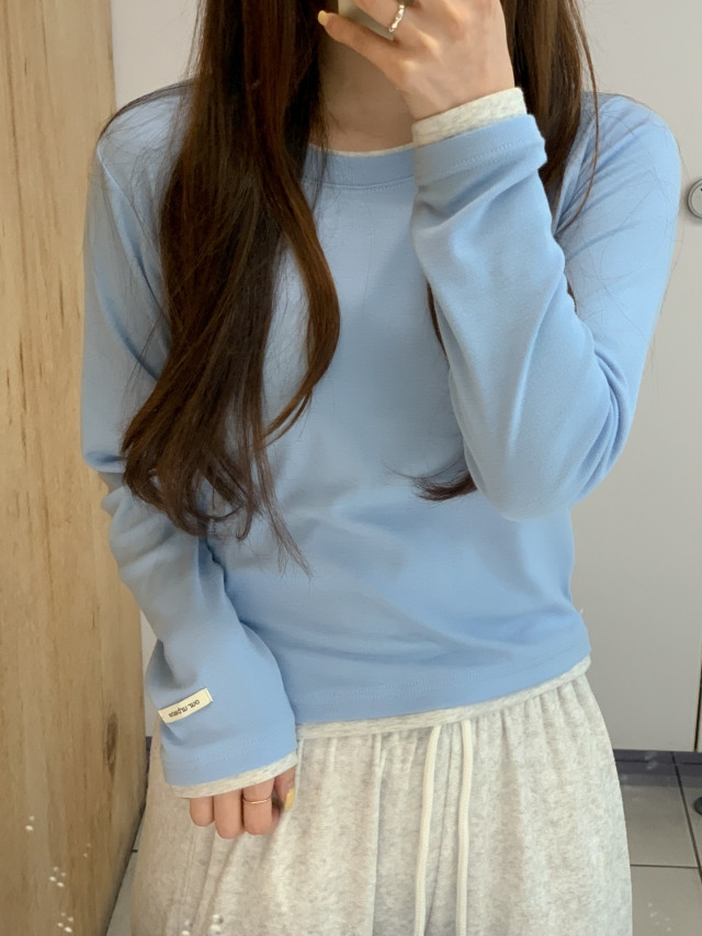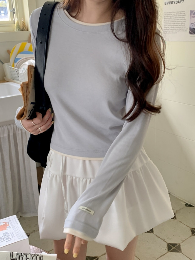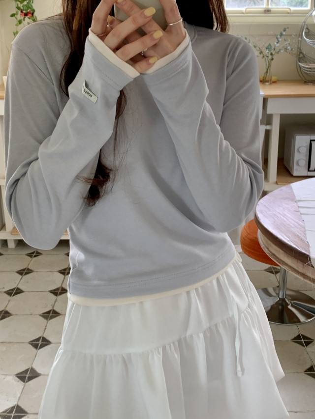 [original]バイカラーラウンドレイヤード長袖Tシャツ