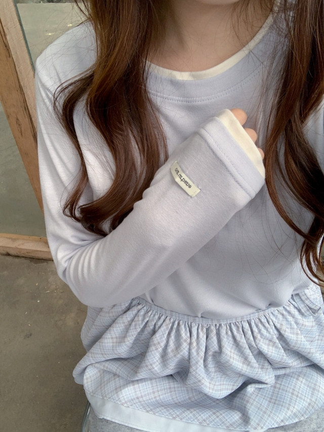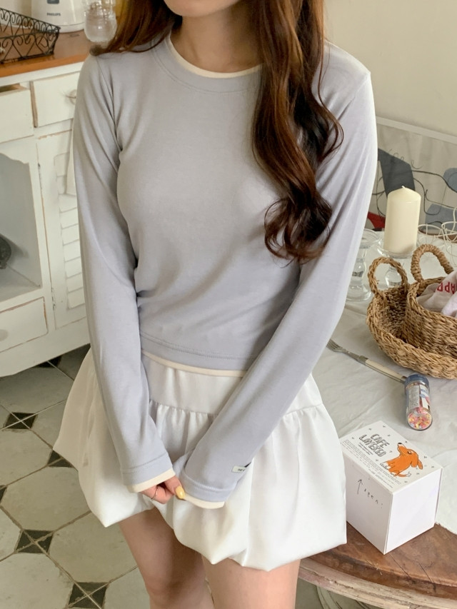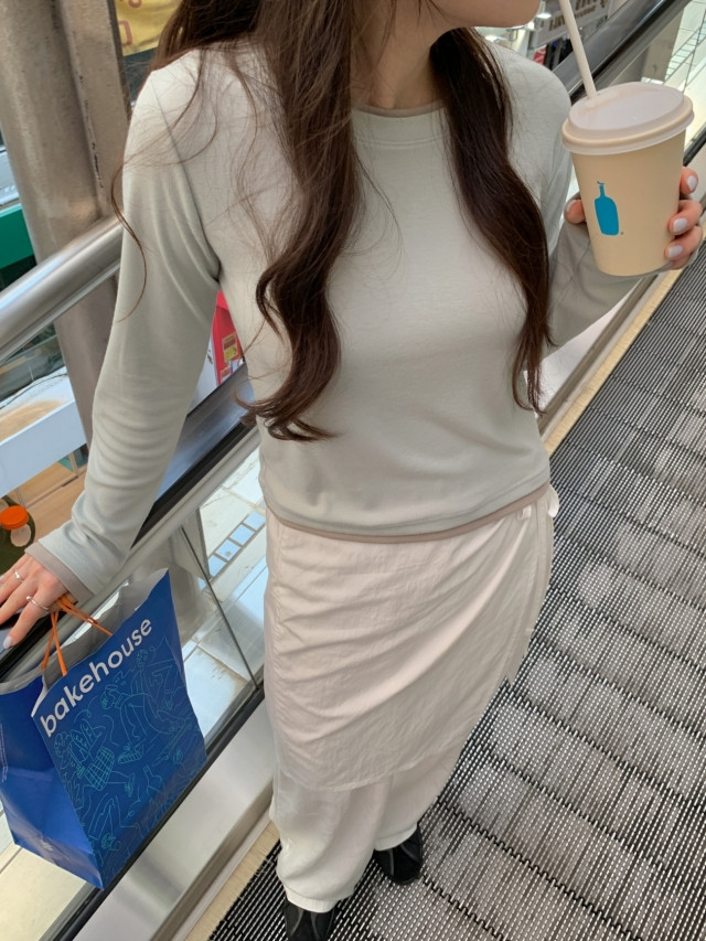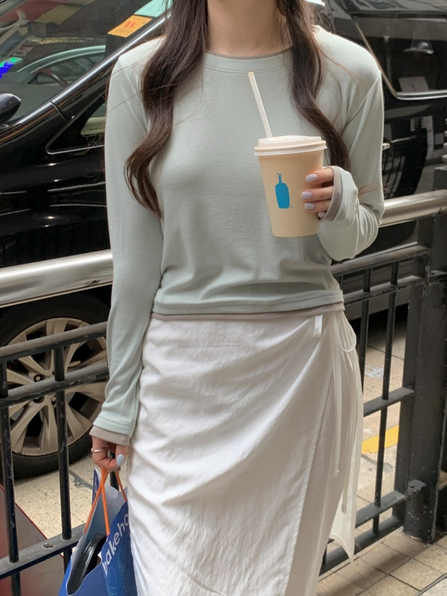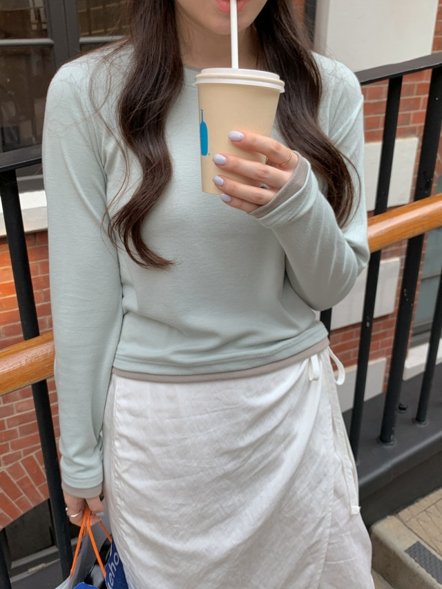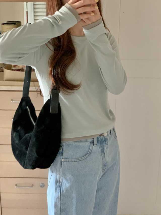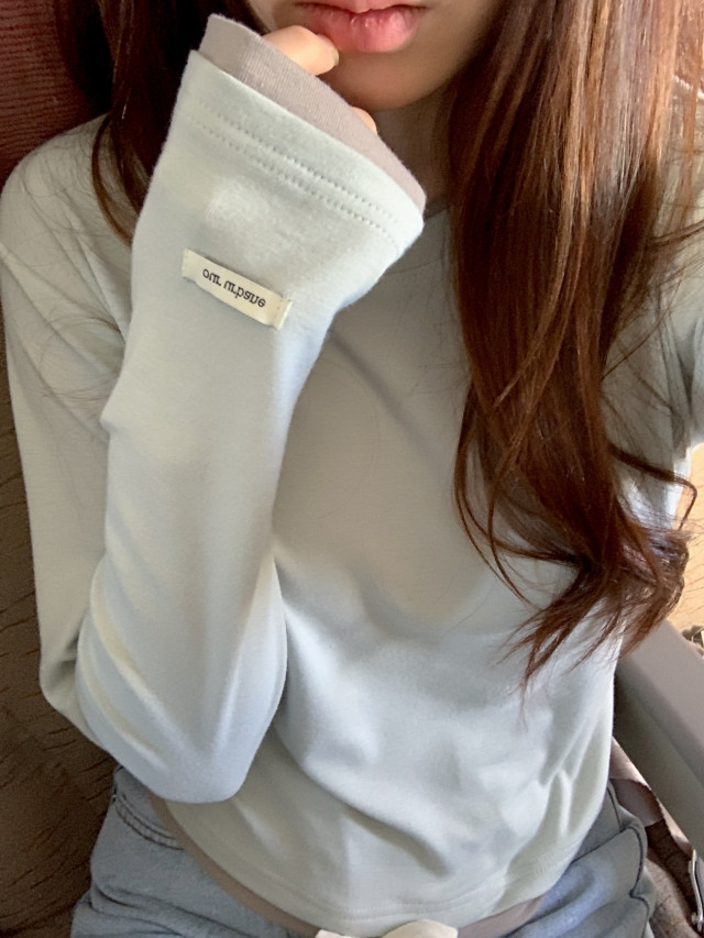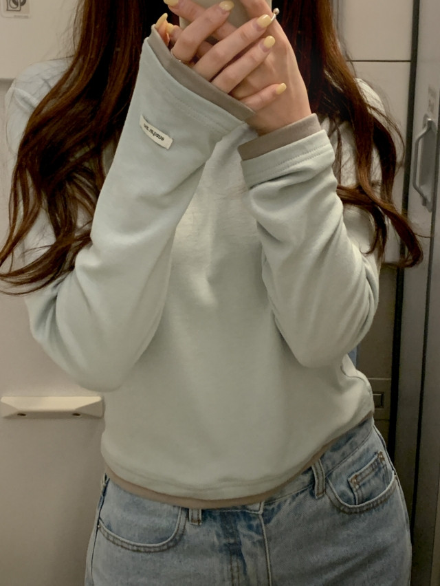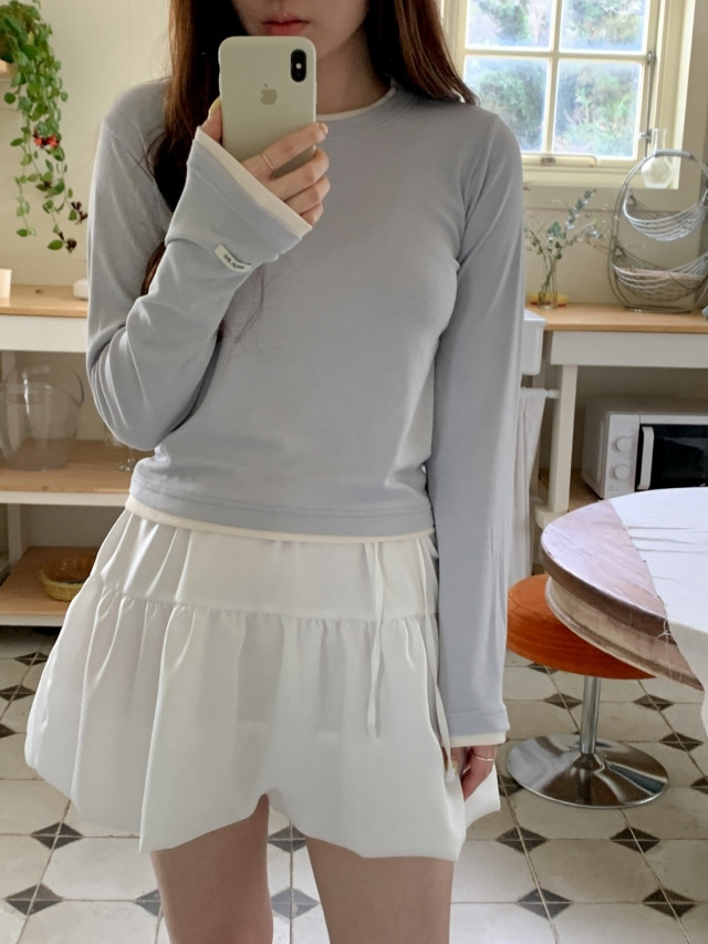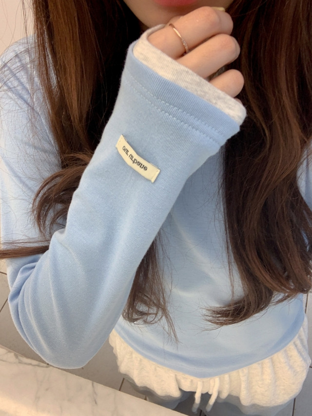 [original]バイカラーラウンドレイヤード長袖Tシャツ