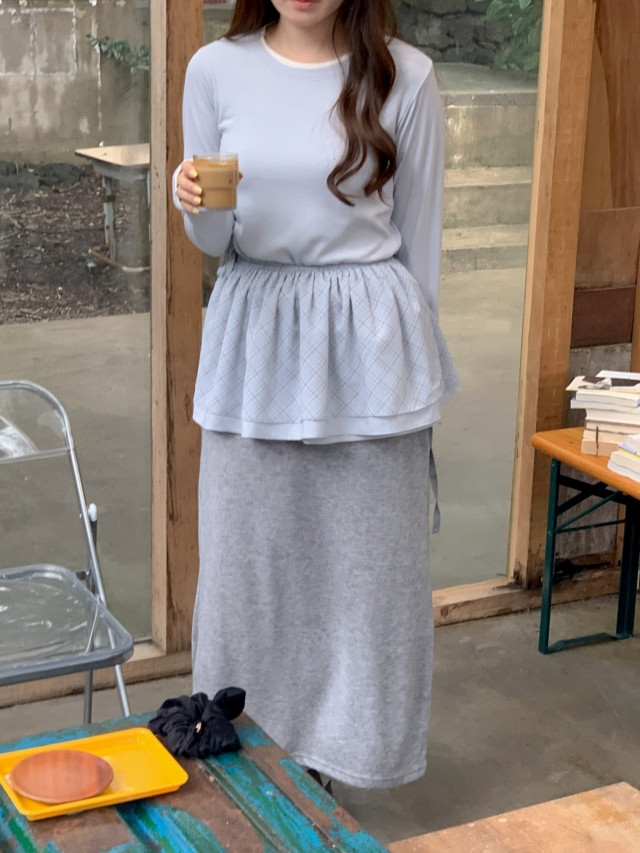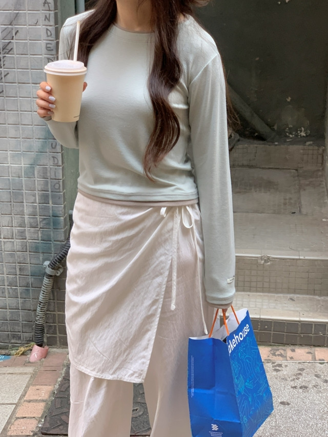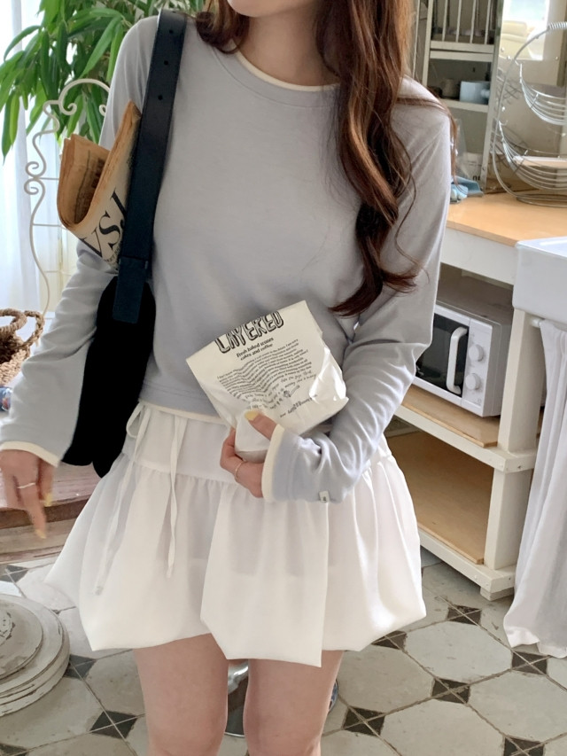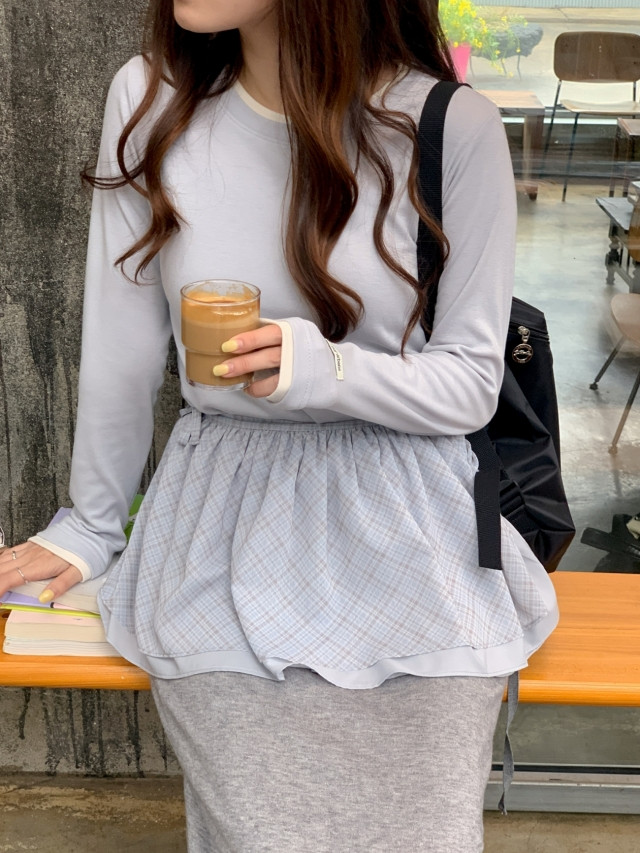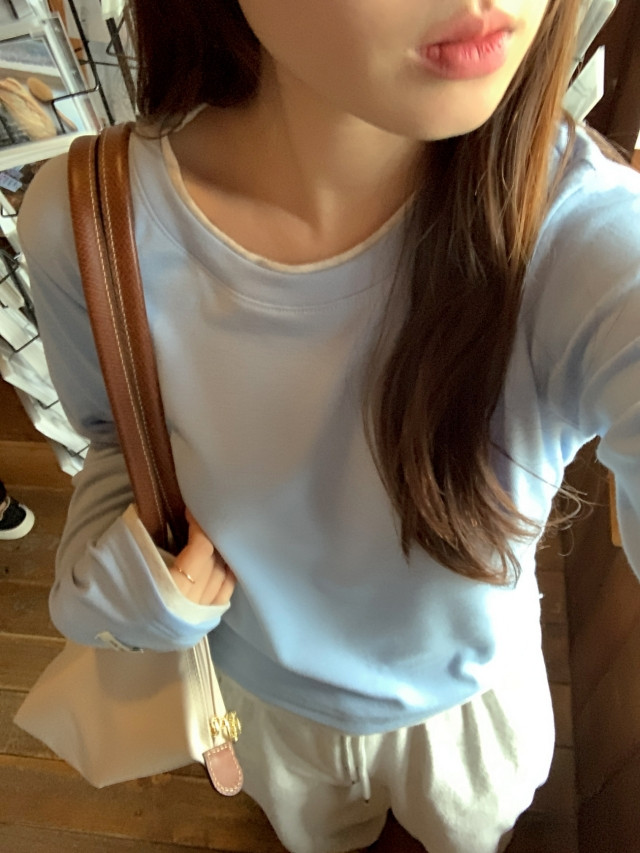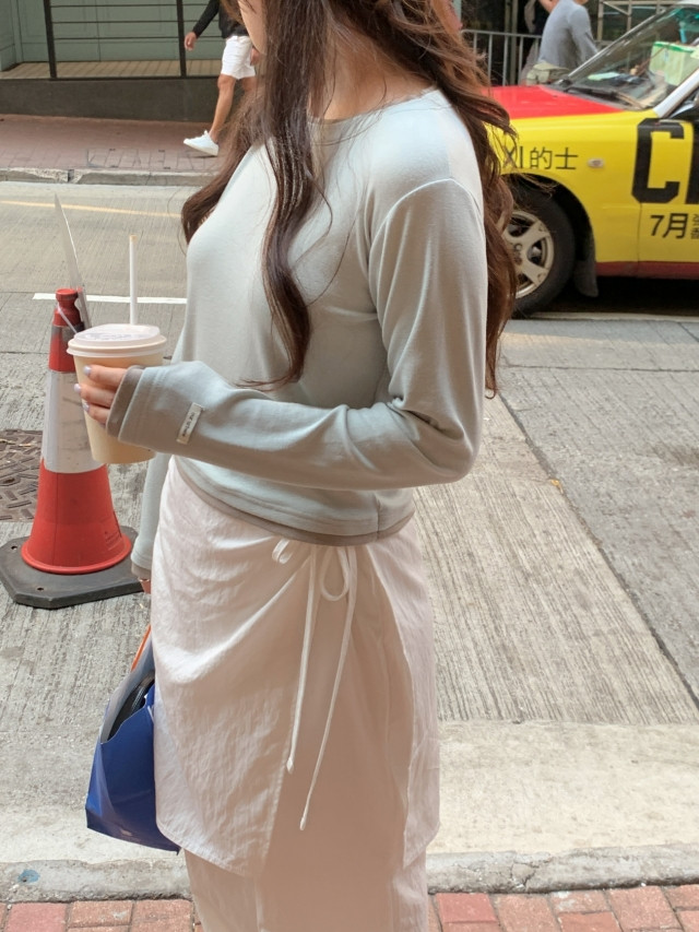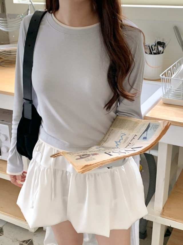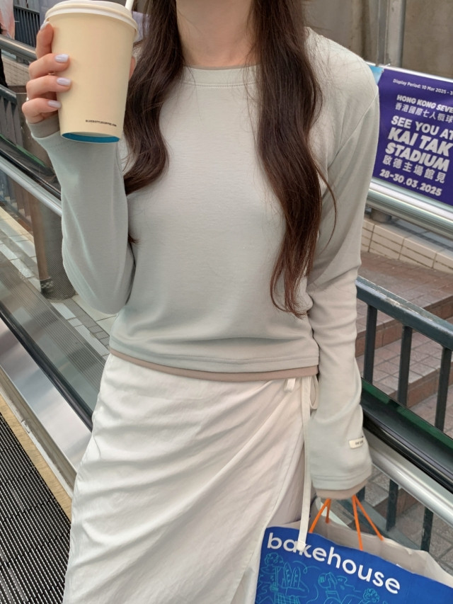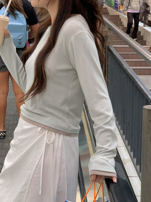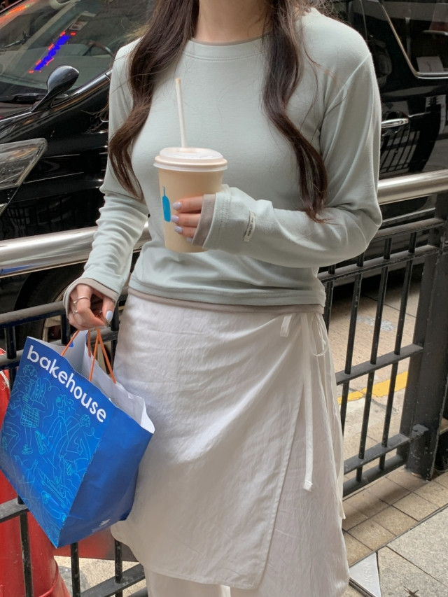 [original]バイカラーラウンドレイヤード長袖Tシャツ