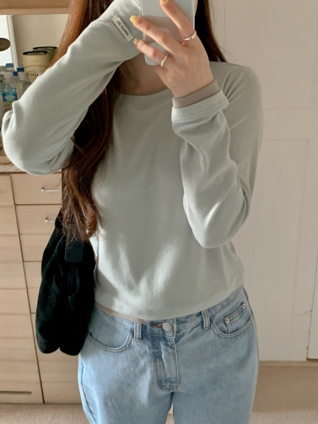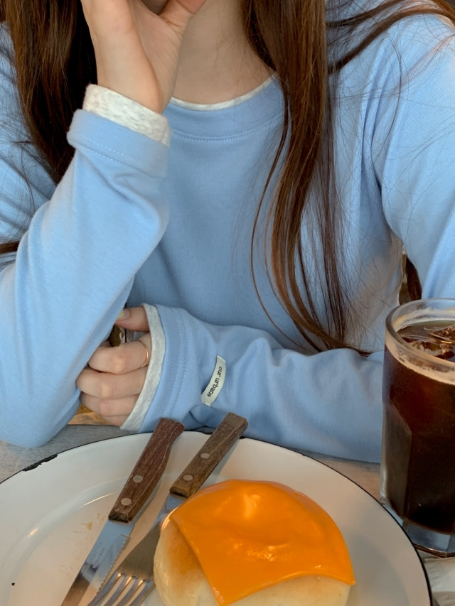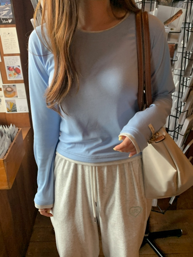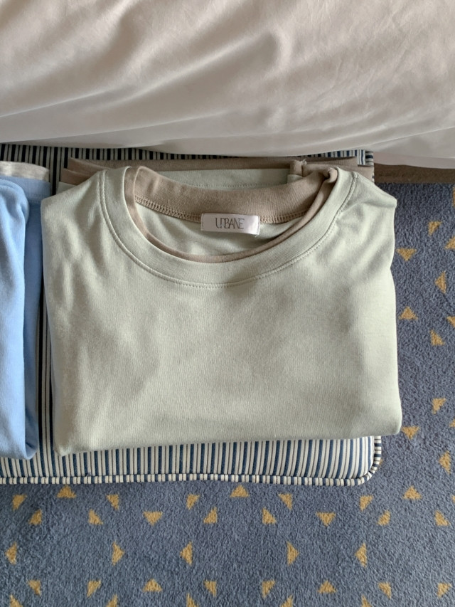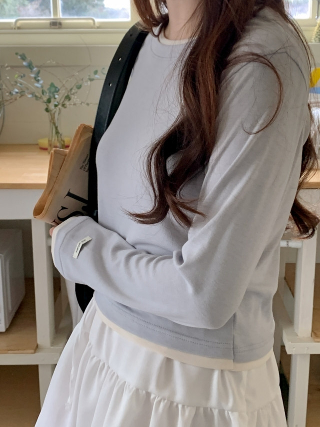 "[MADE] 모엔 배색 라운드 레이어드 긴팔 티셔츠"가,