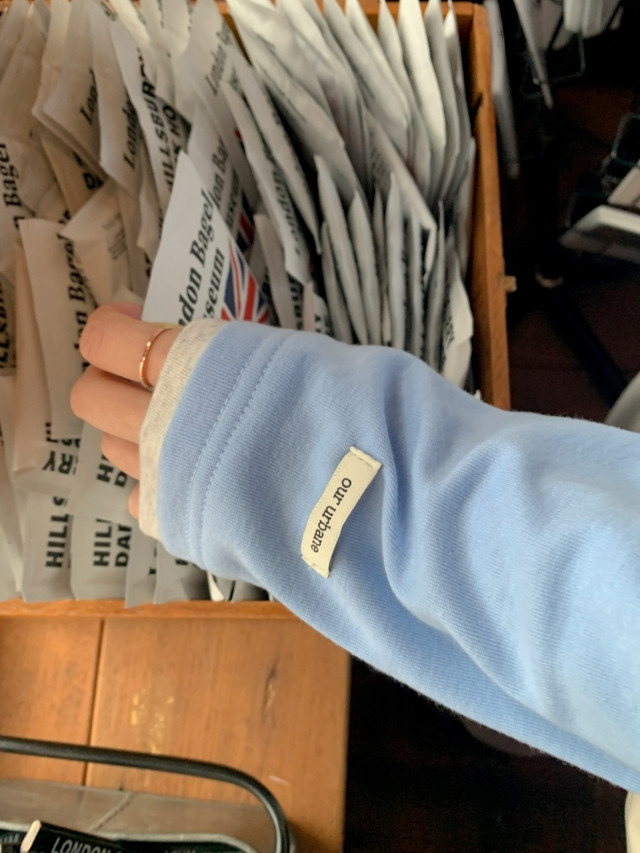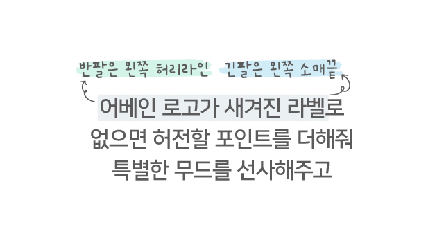 포인트였던 소매 라벨은 옷 앞면 왼쪽 아래로