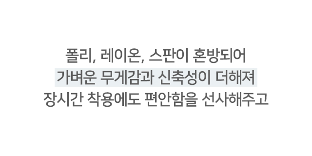 가벼운 무게감과 신축성이 더해져