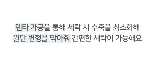 덴타가공을 통해 세탁 시 원단 변형을 막아주는 동시에