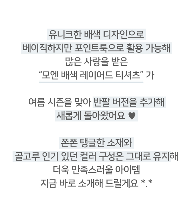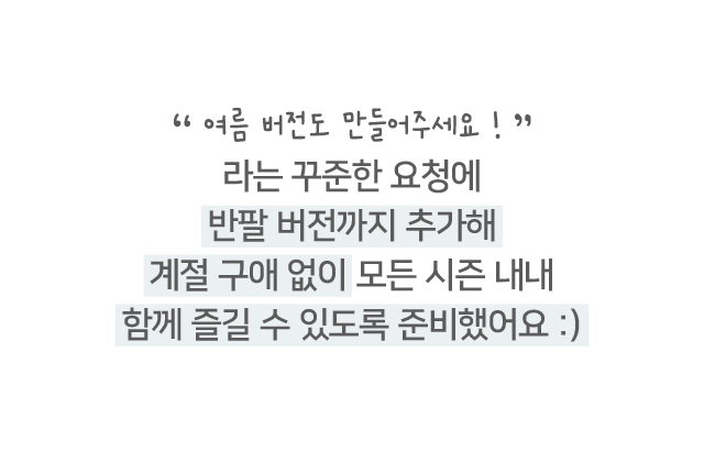 여름 시즌을 맞아 반팔 버전으로 새롭게 돌아왔어요 💙