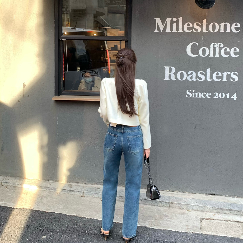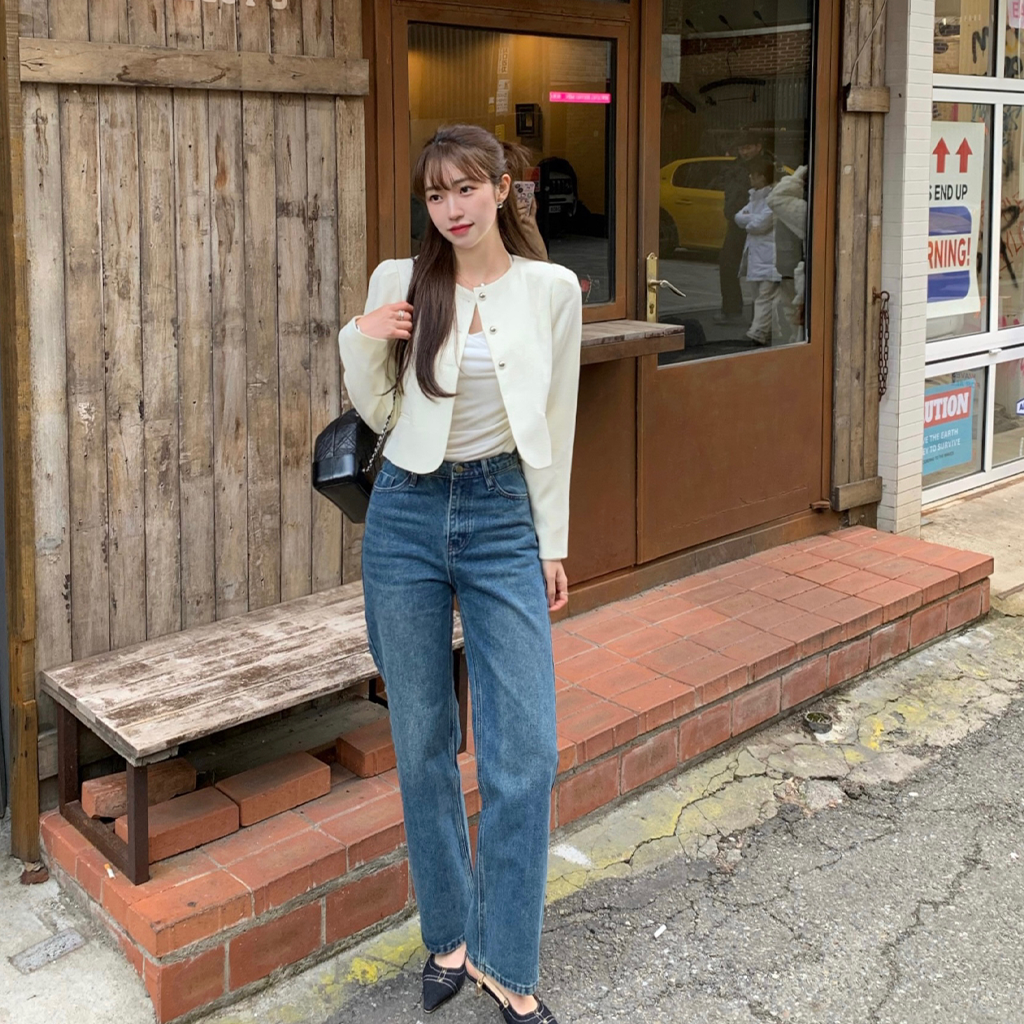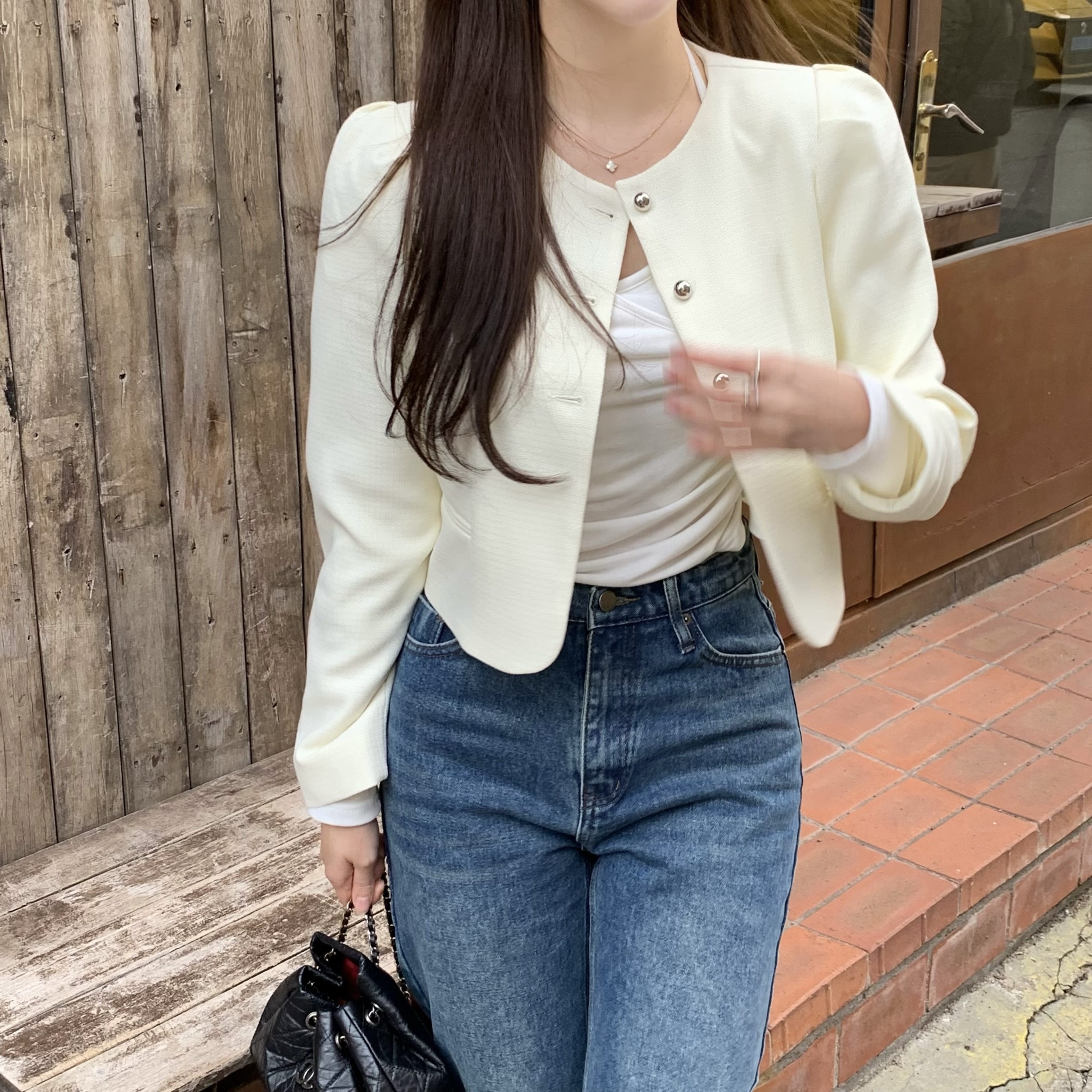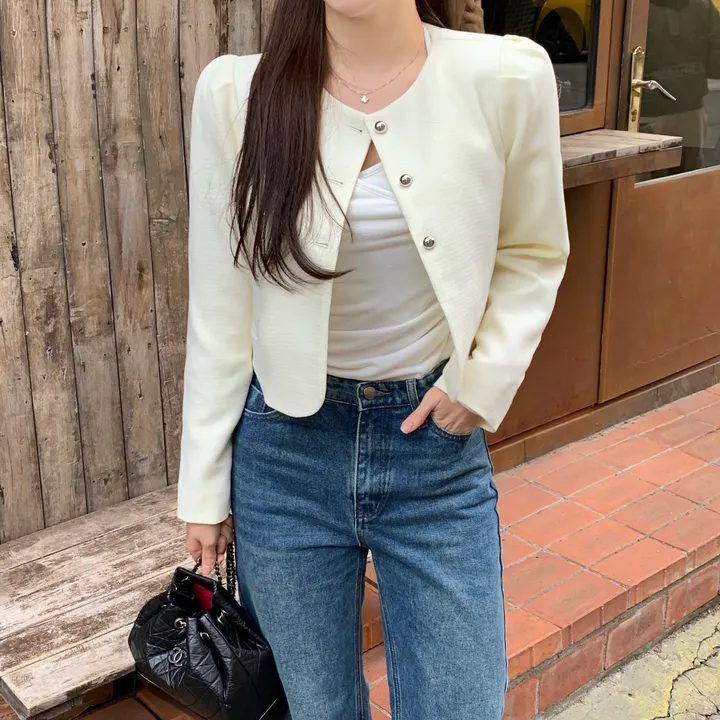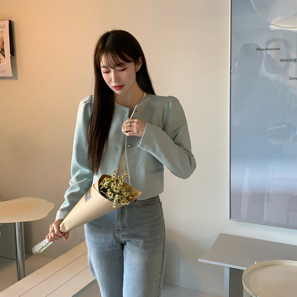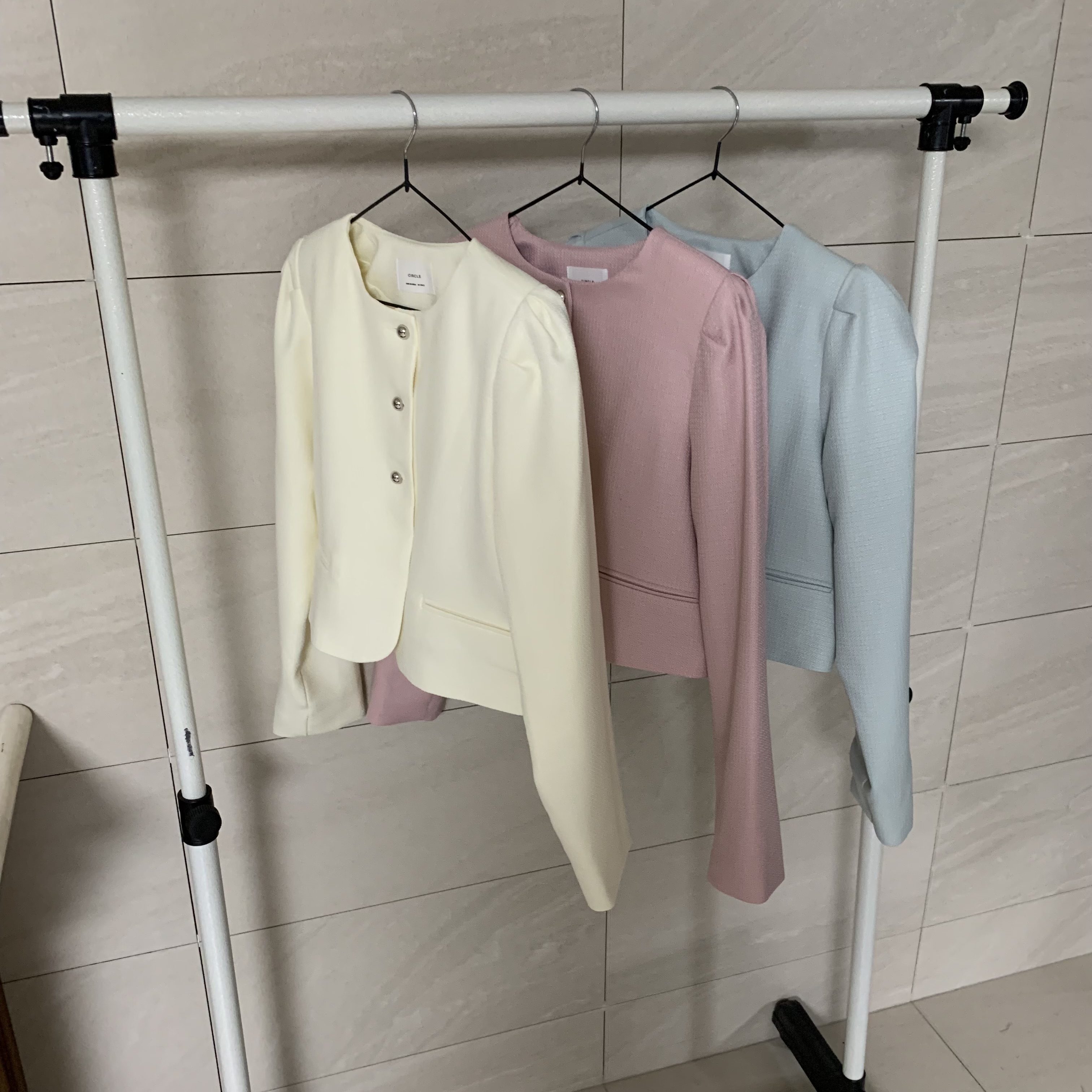 パフツイードノーカラーパステルジャケット