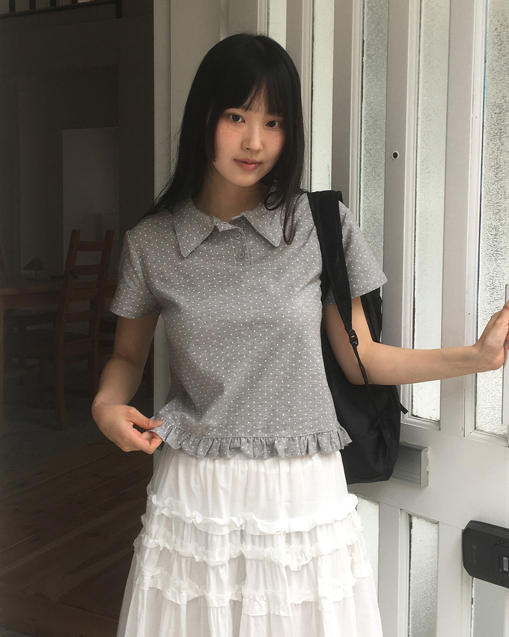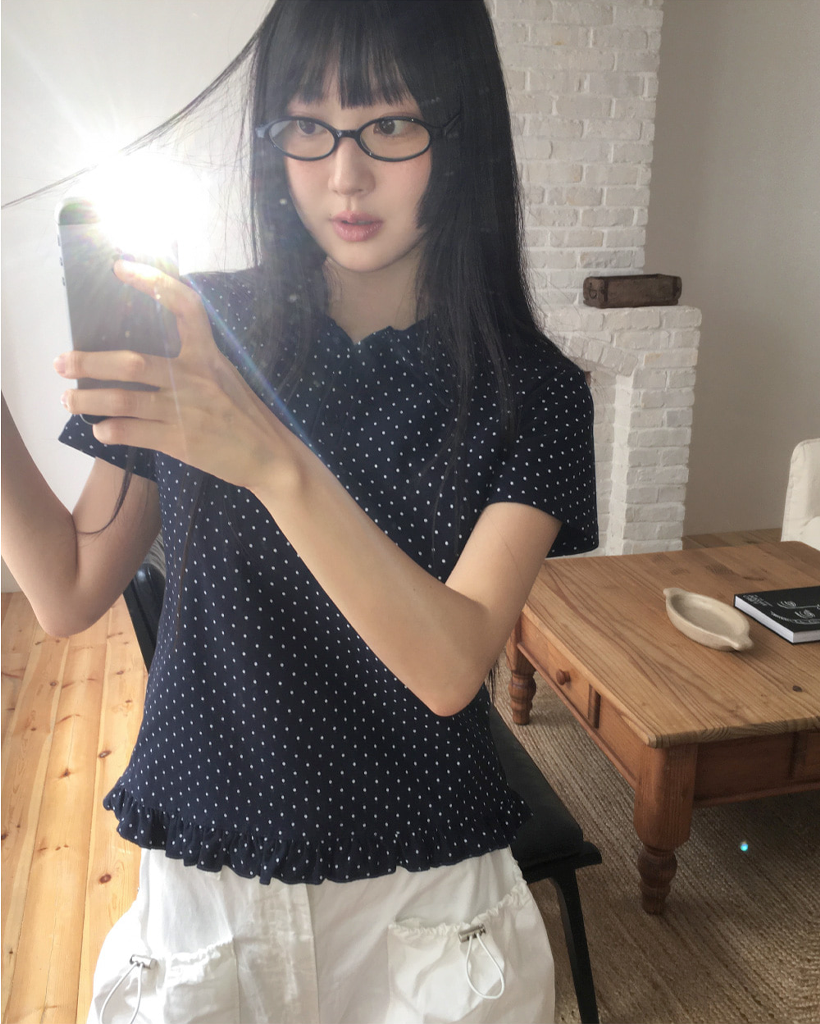 ドット フリル 半袖 Tシャツ