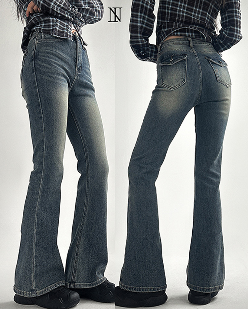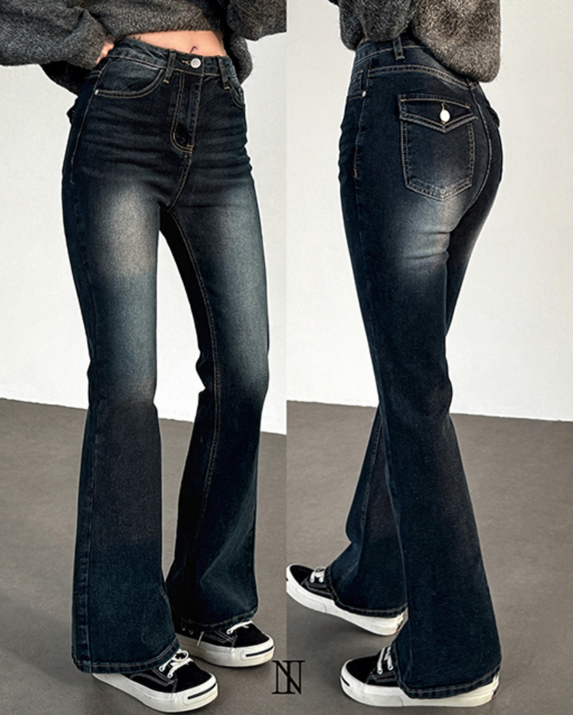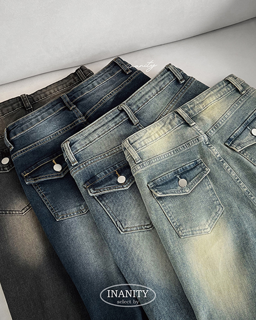 ハイウエストボタン付きブーツカットデニムパンツ