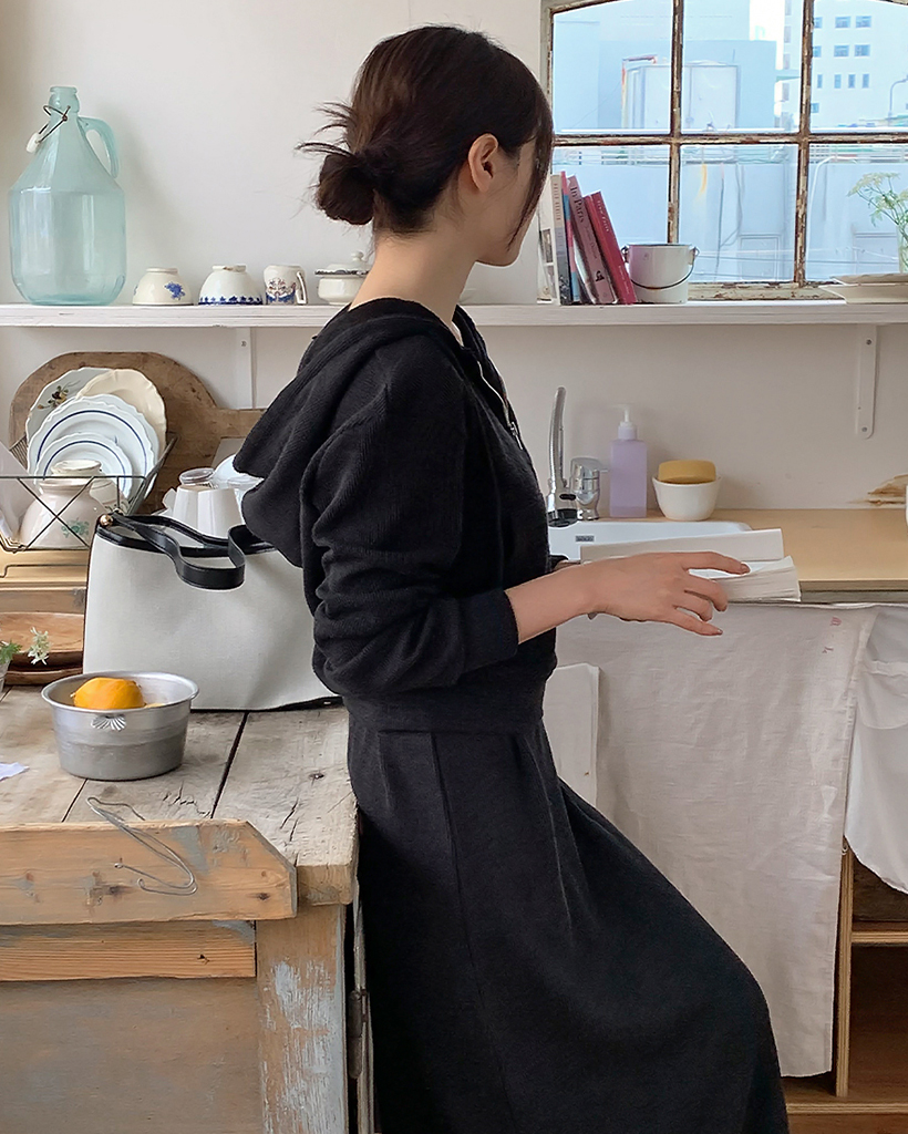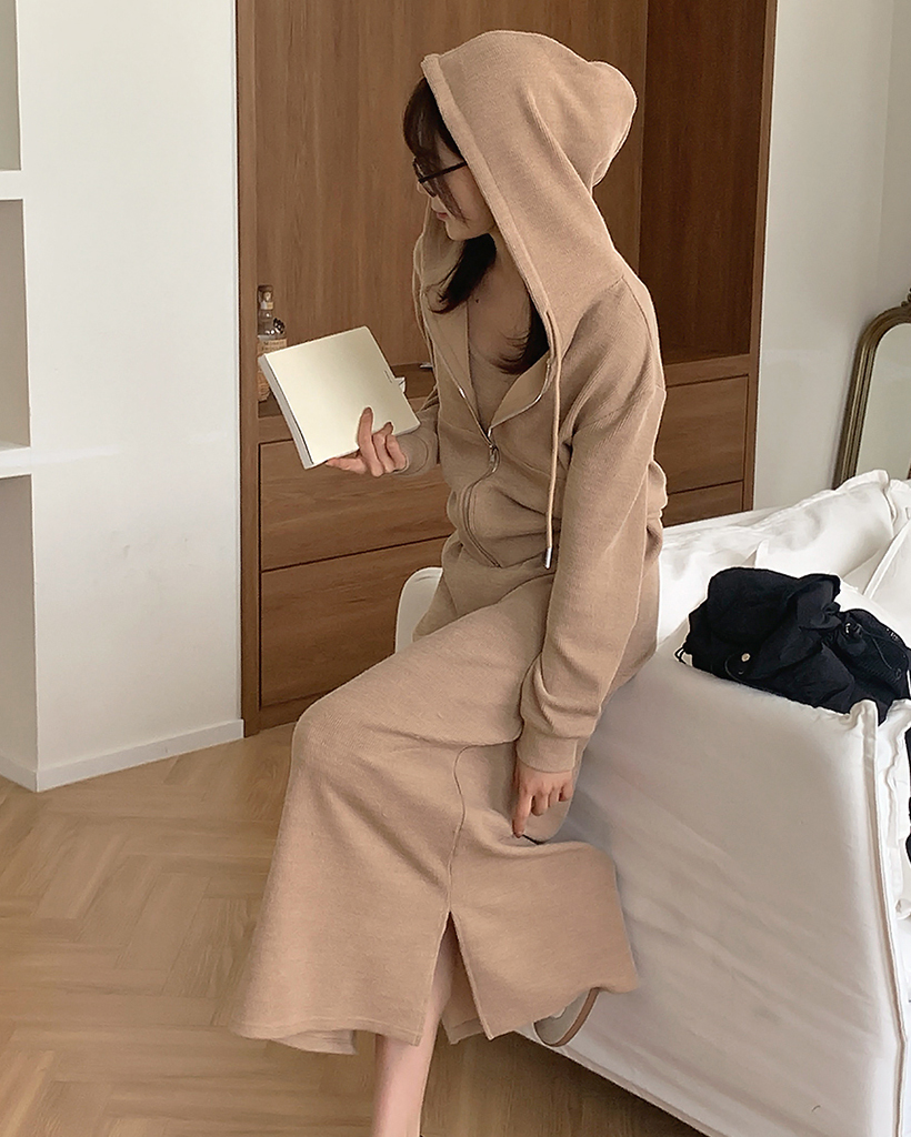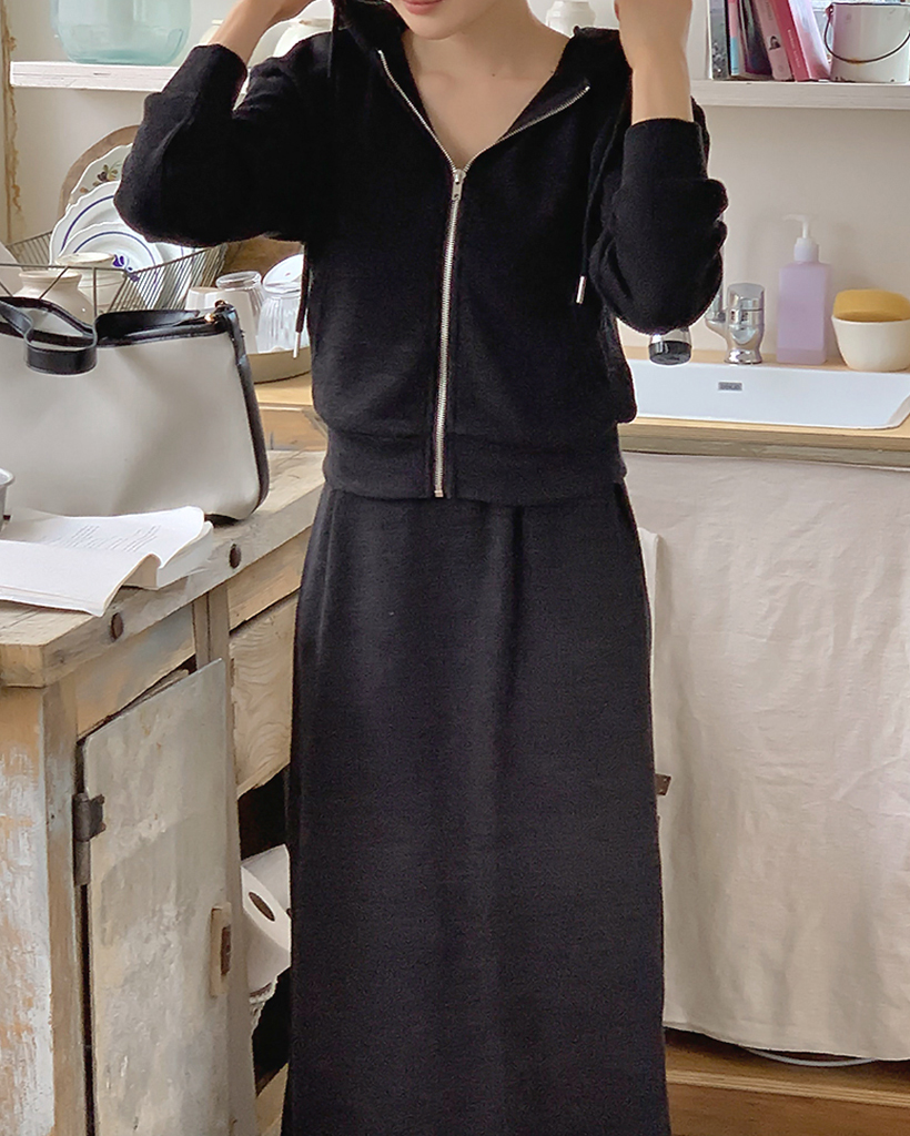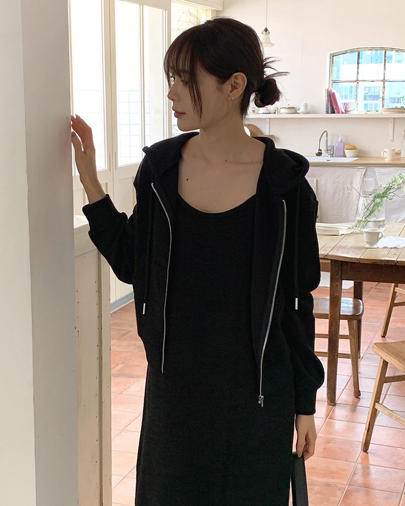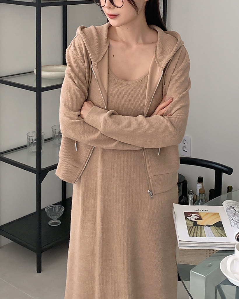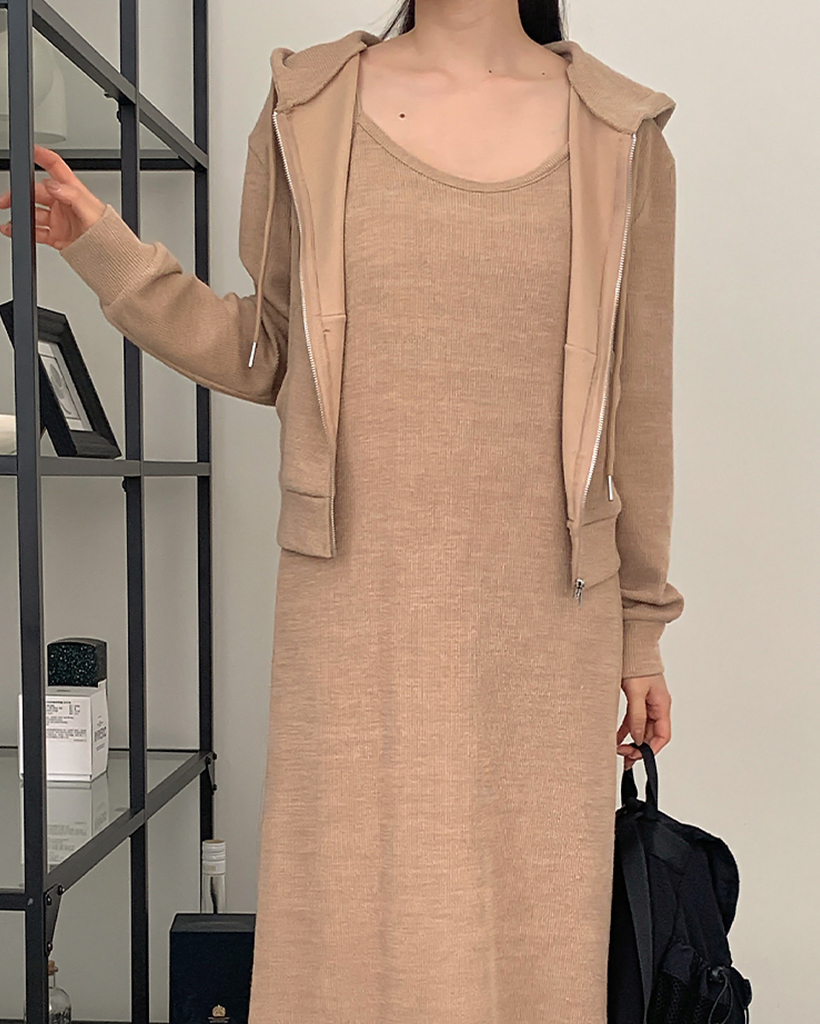 【オケージョン】クロップフードジップアップ&キャミワンピースセット