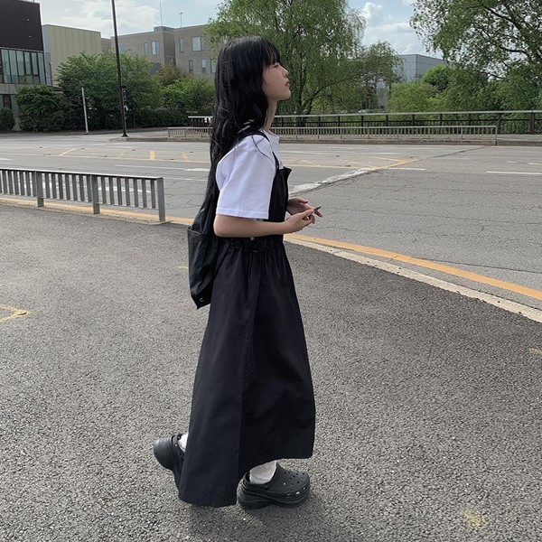 ナイロンウエストドロストマキシサスペンダーワンピース