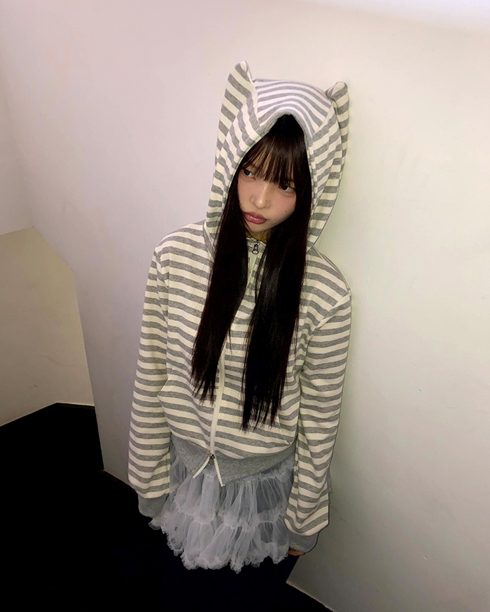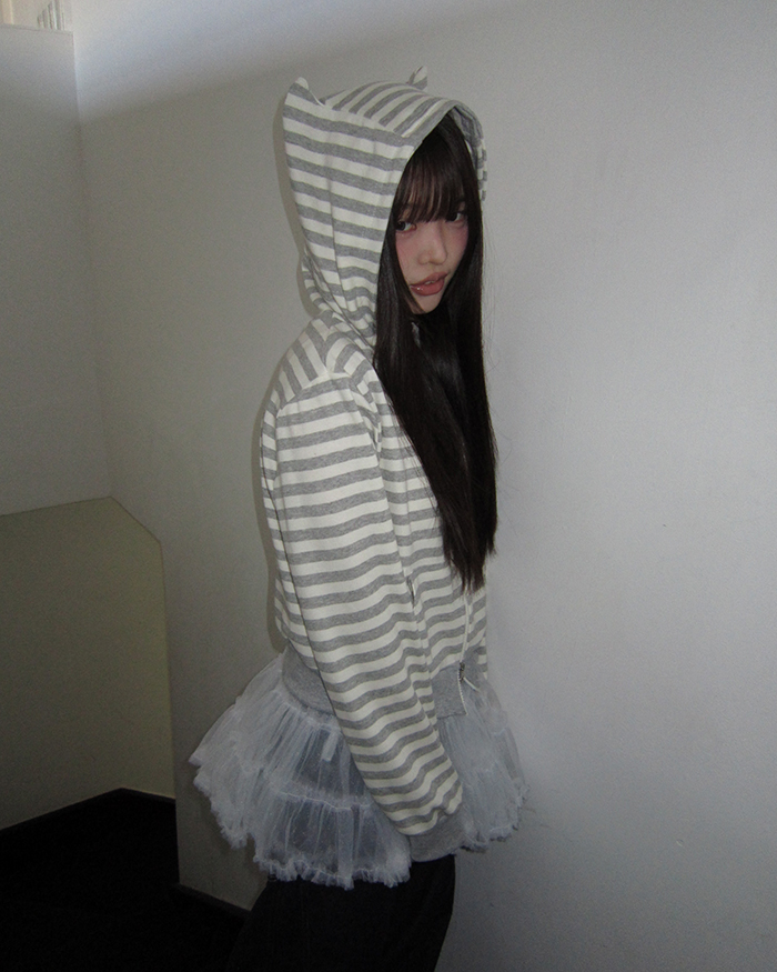 ボーダージップアップパーカー