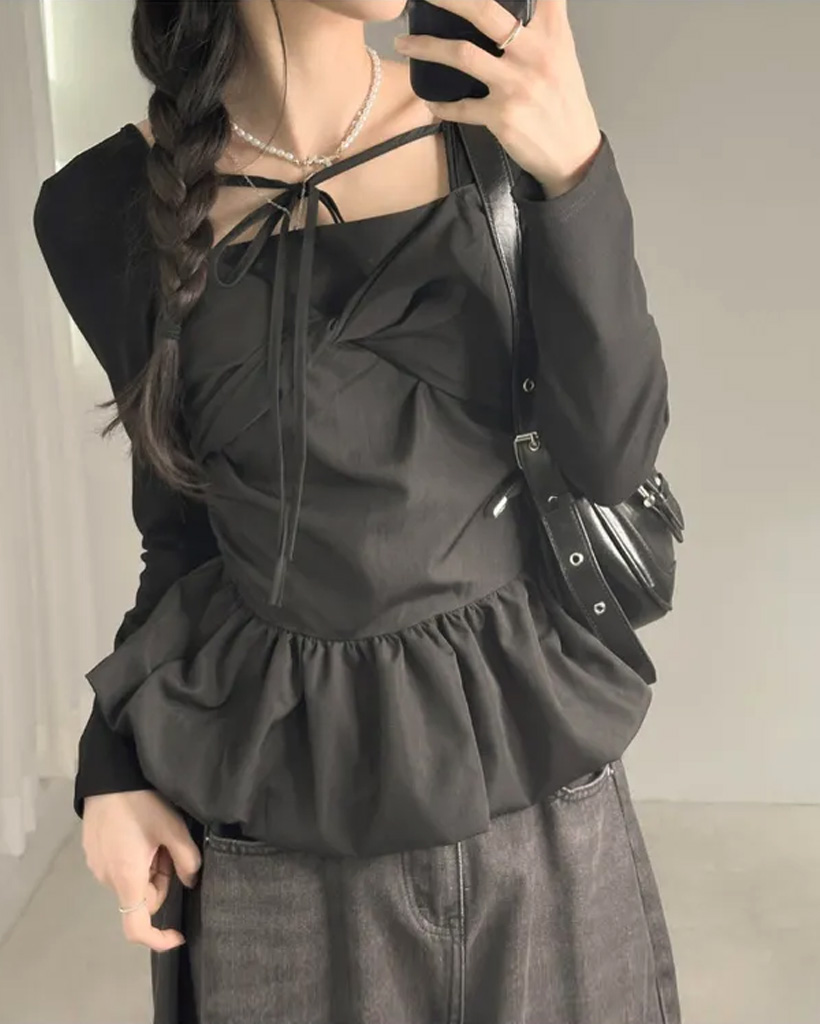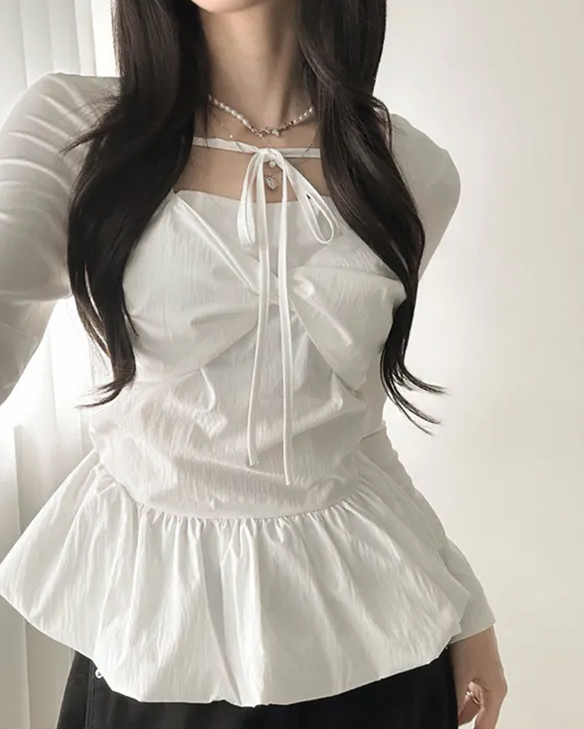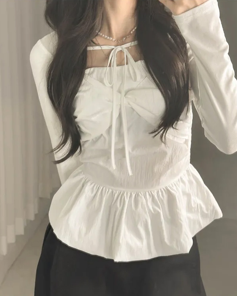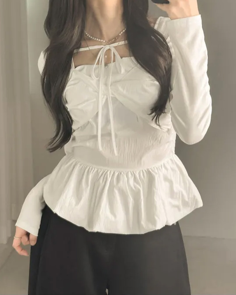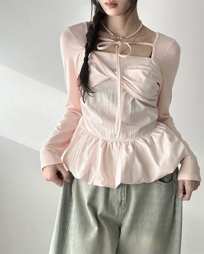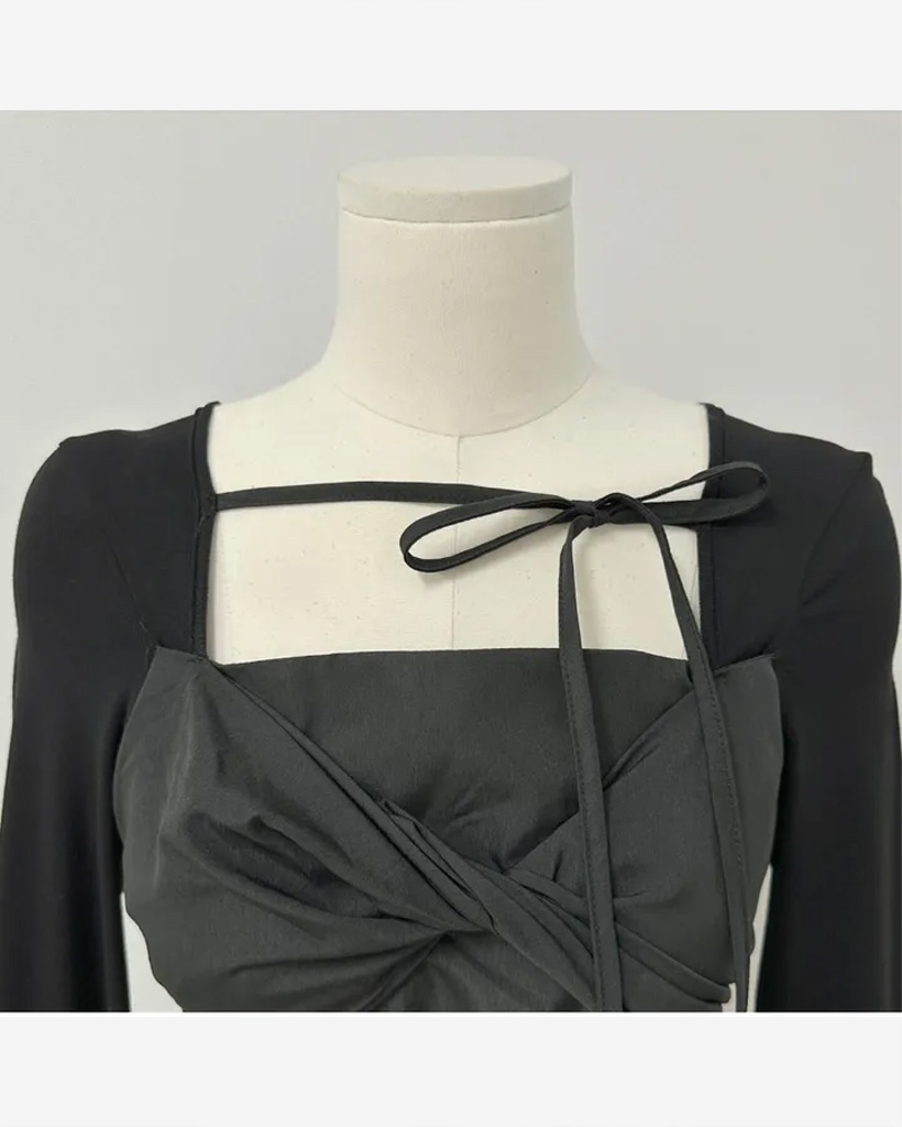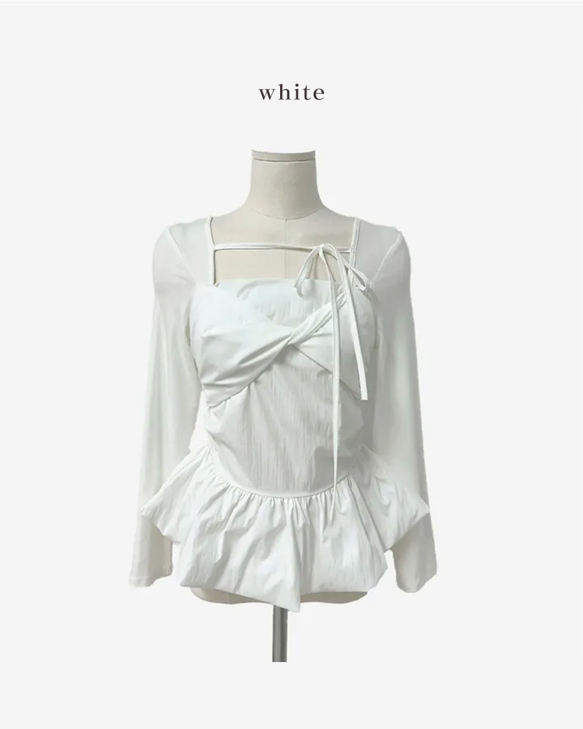 バレエコアリボンレイヤードスクエアネックブラウス