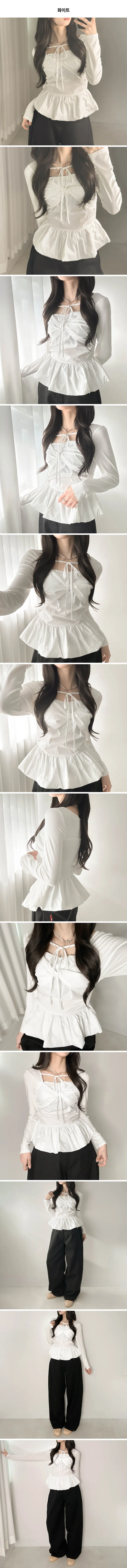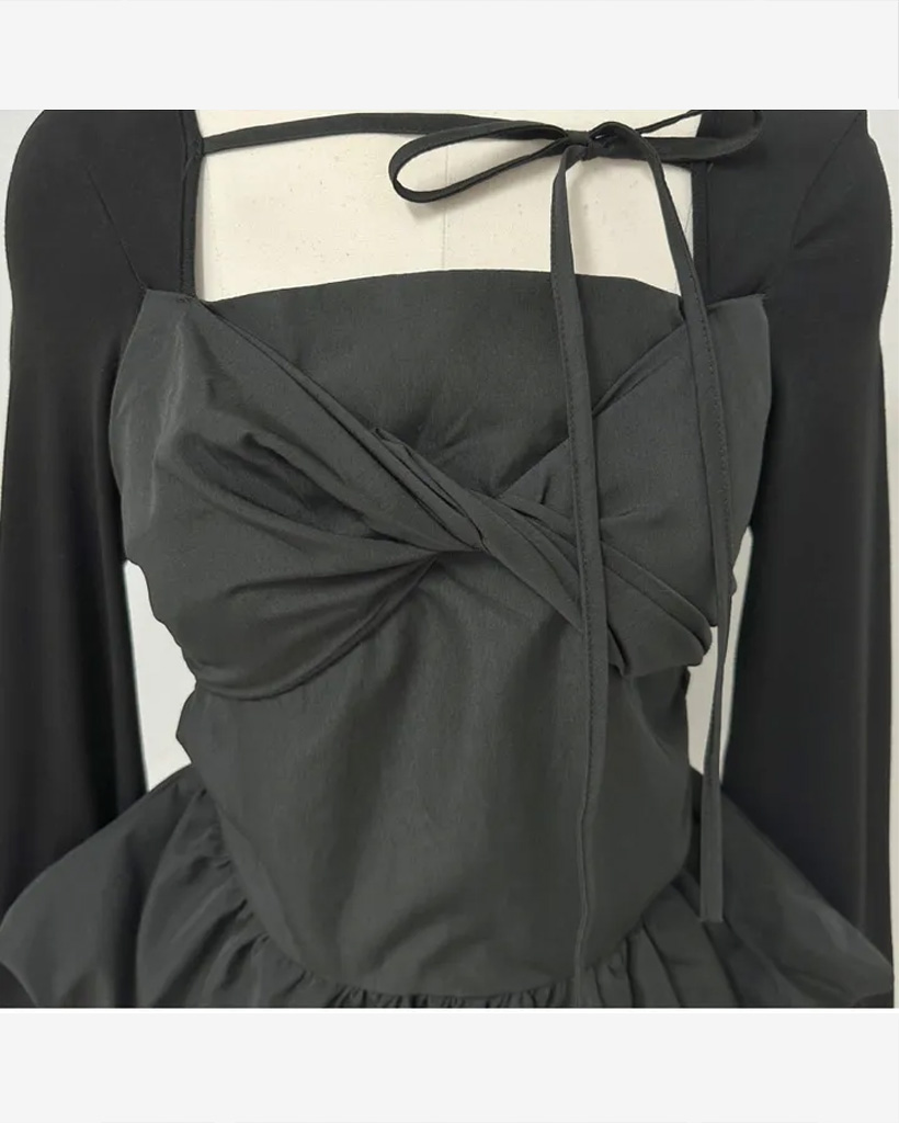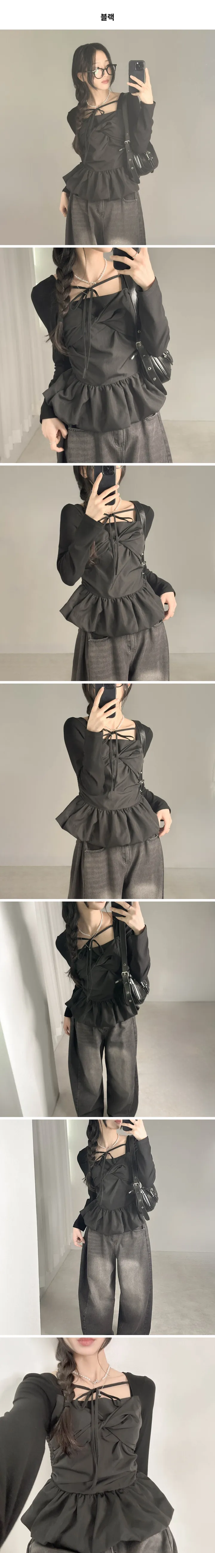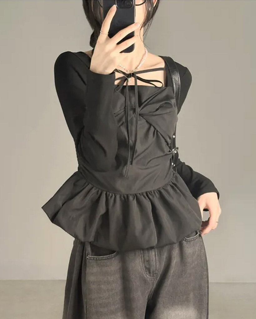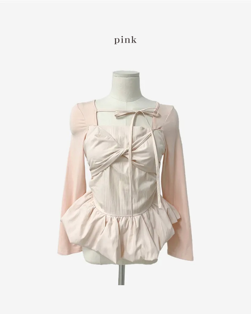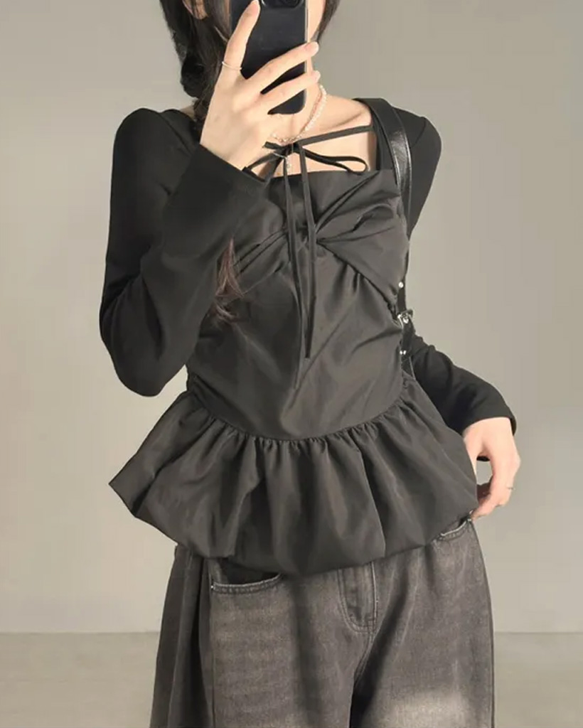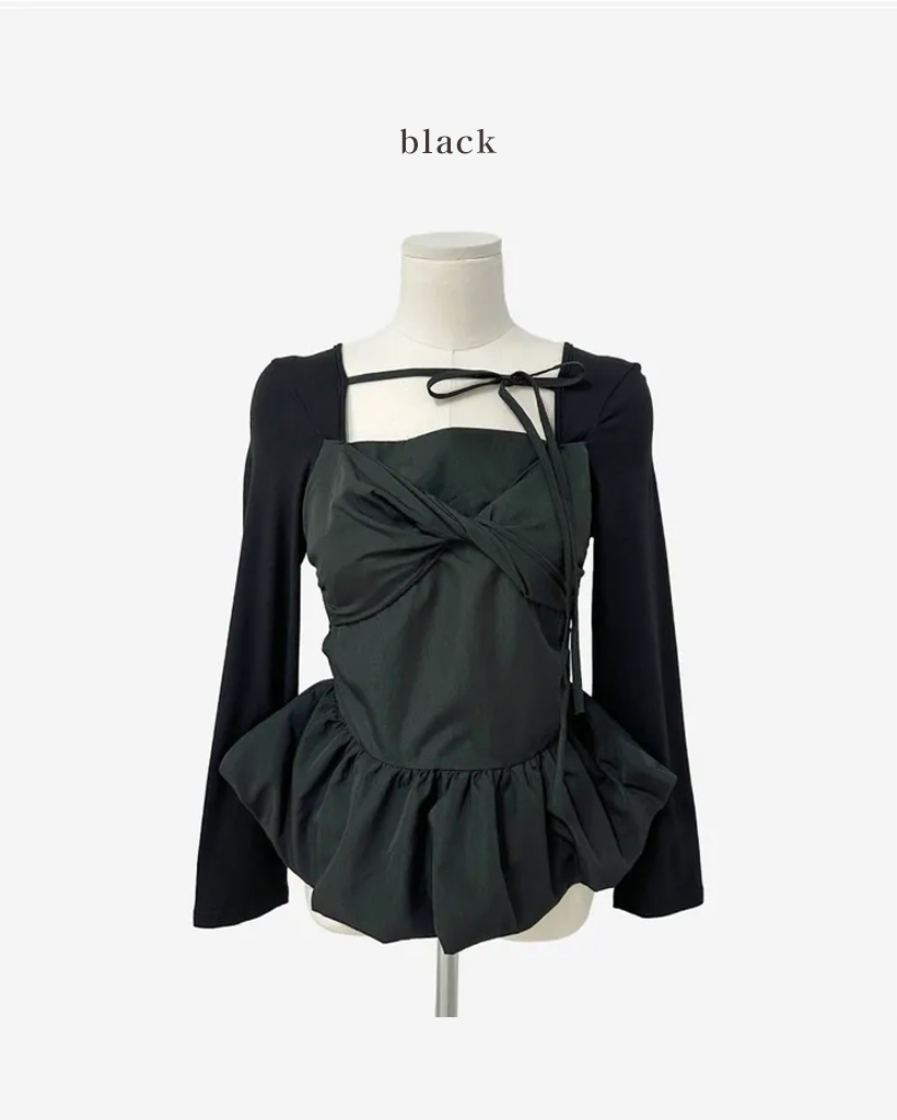 バレエコアリボンレイヤードスクエアネックブラウス