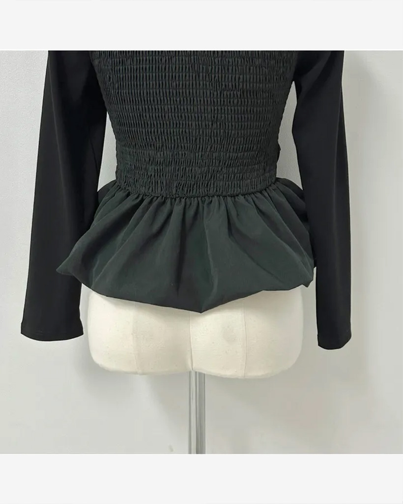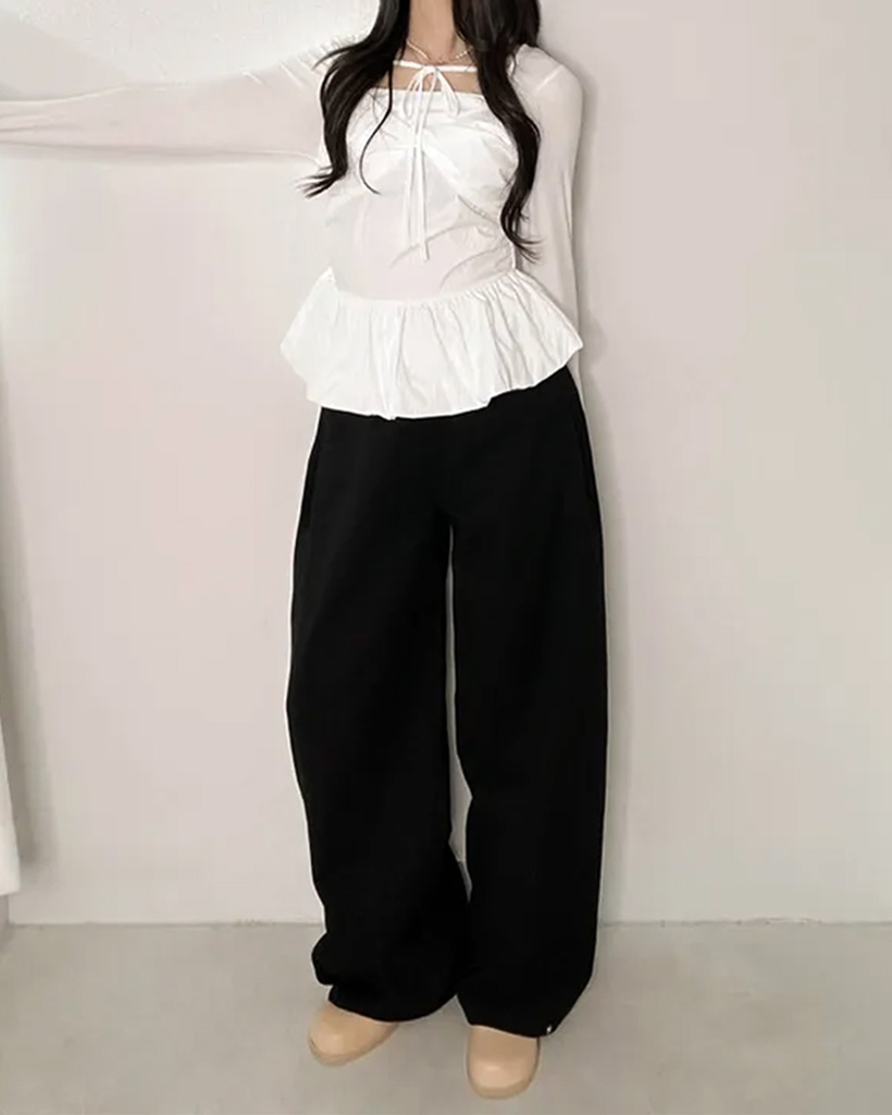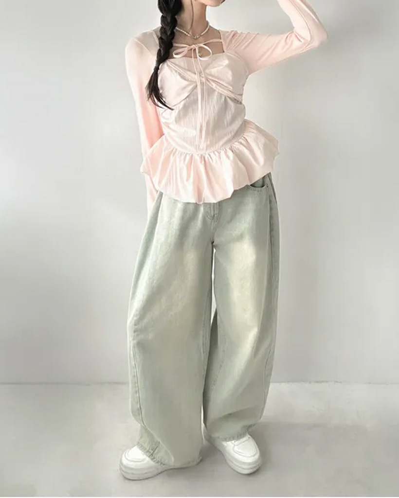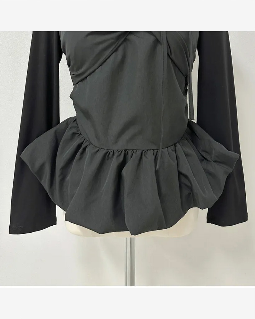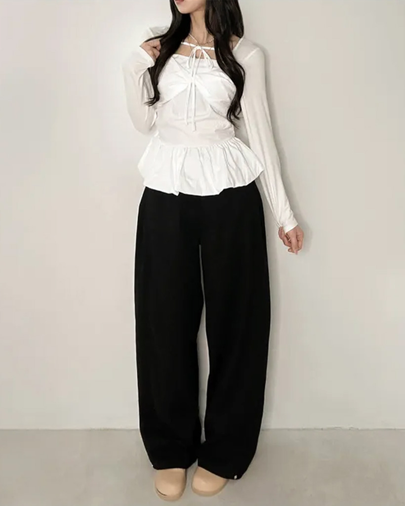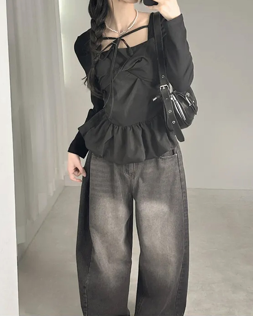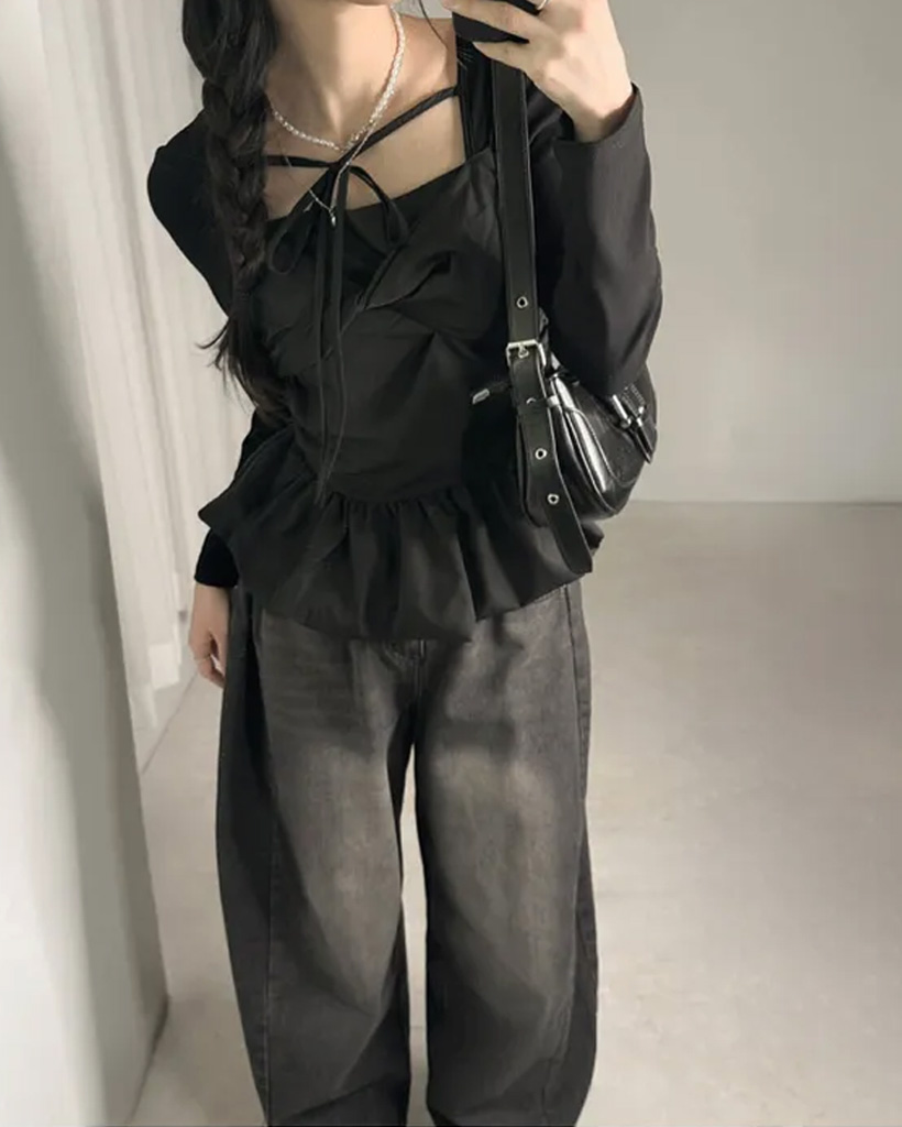 バレエコアリボンレイヤードスクエアネックブラウス